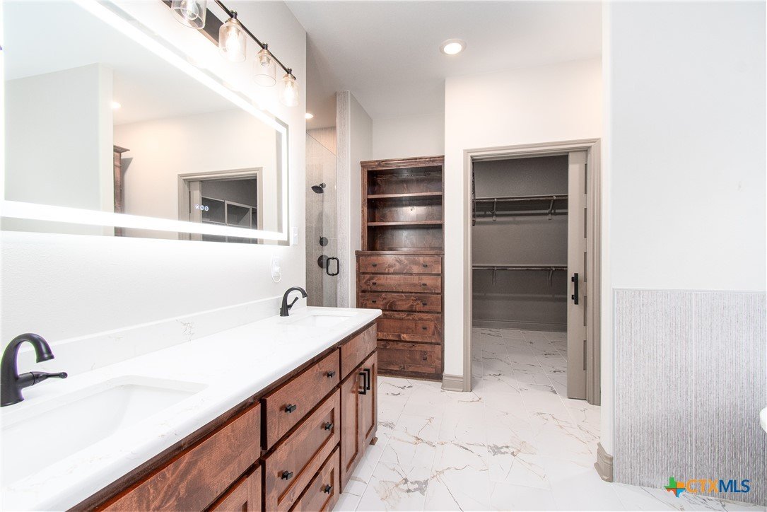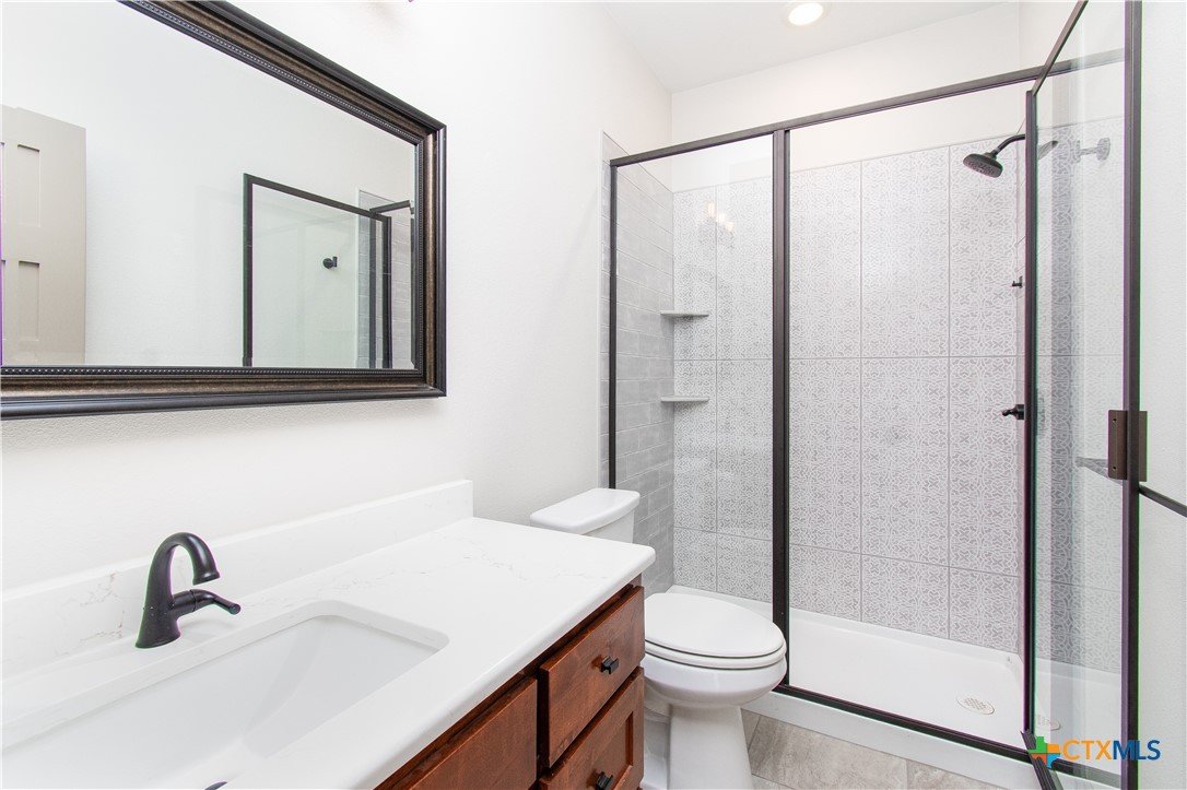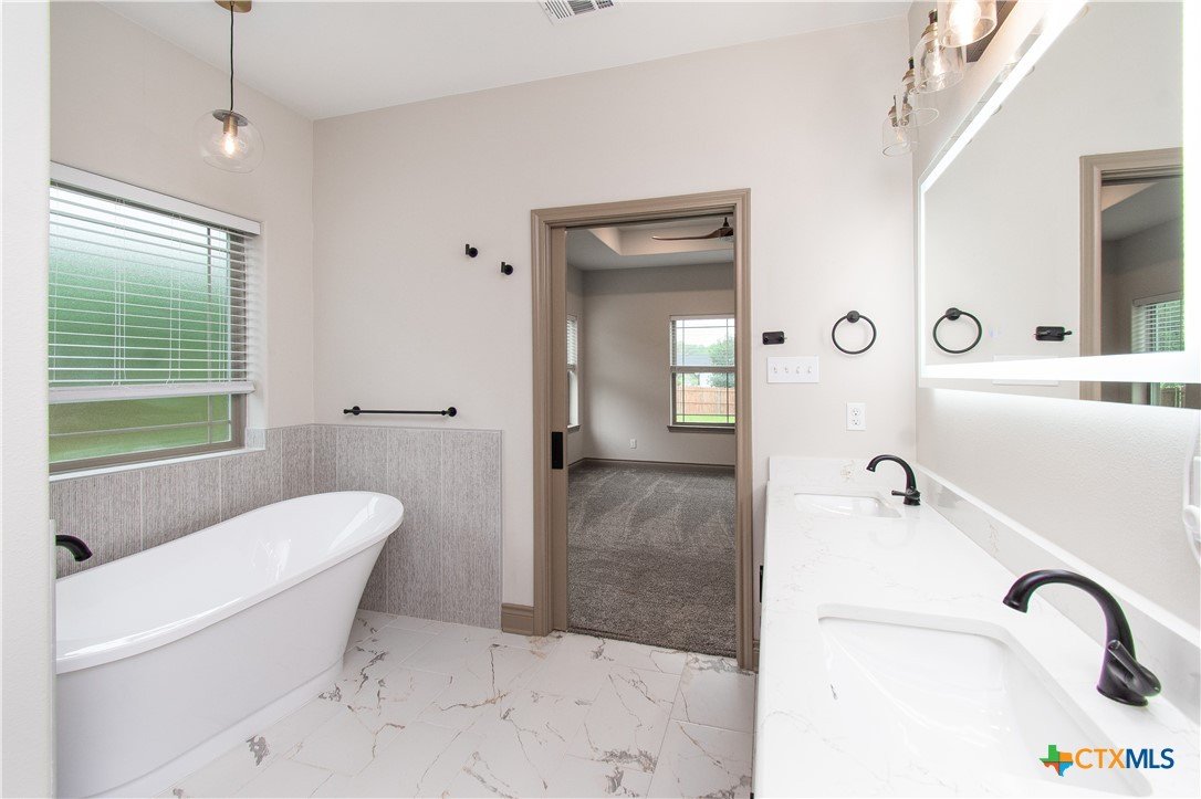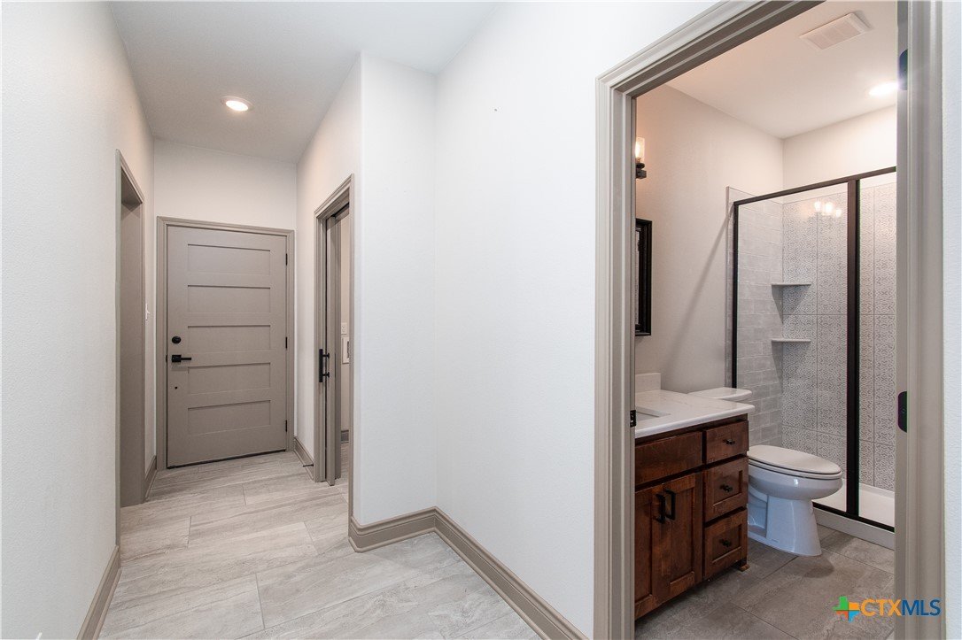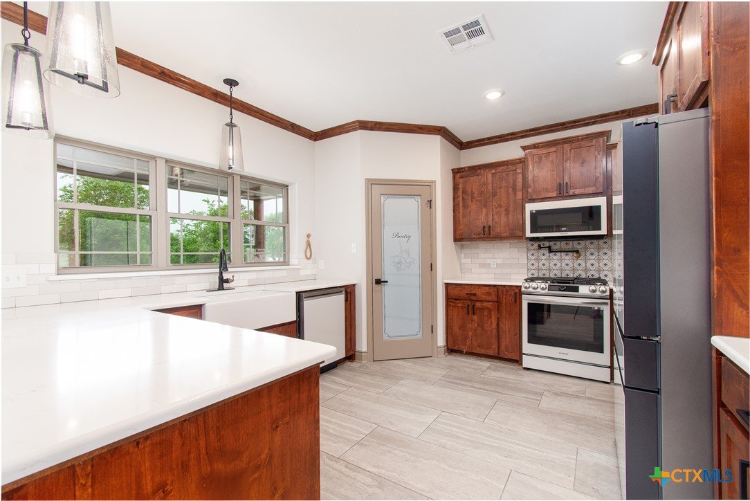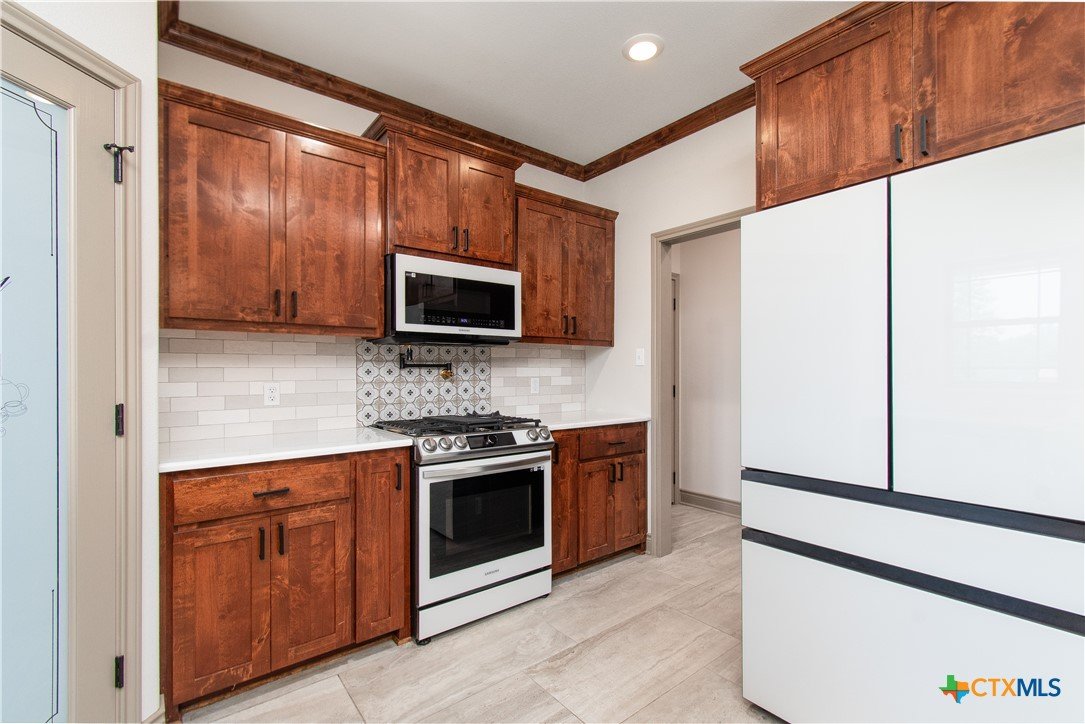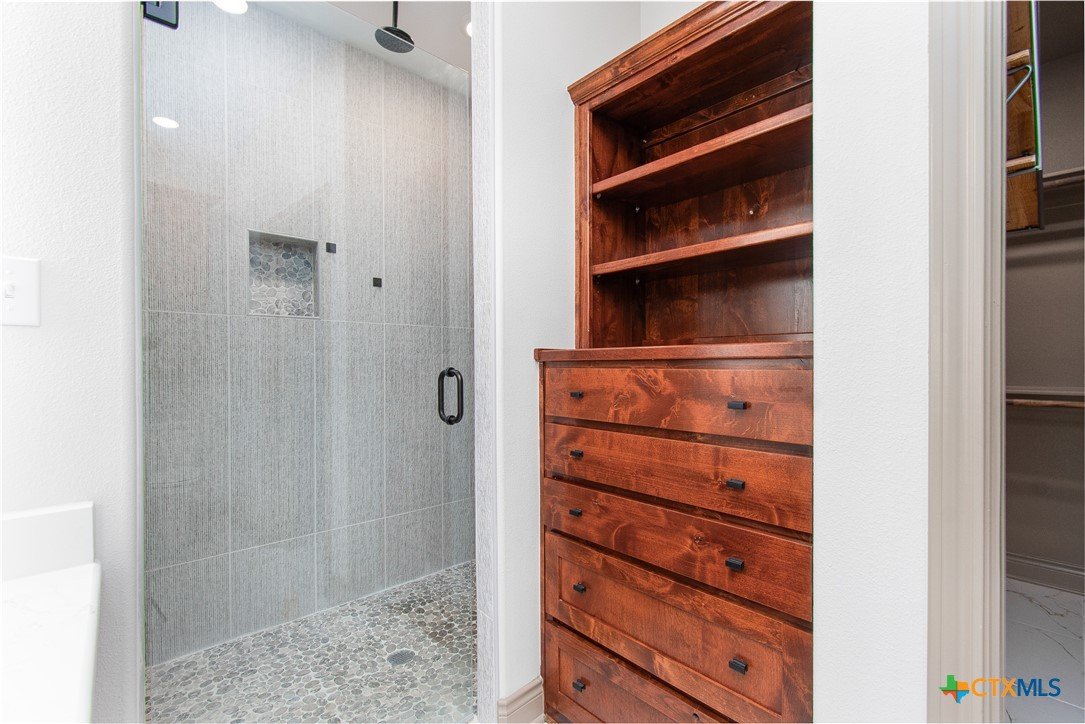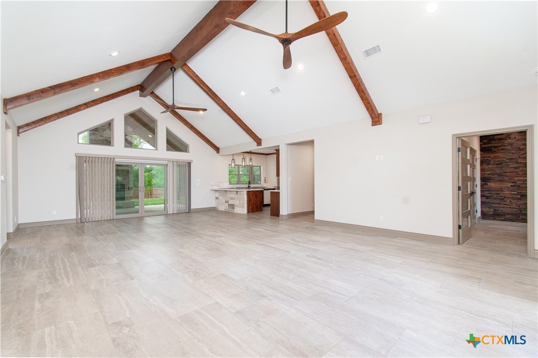 Stunning Custom Designer Home Near Lake Access; Welcome to this beautifully crafted custom home that blends modern elegance with thoughtful functionality. Boasting soaring vaulted ceilings and expansive windows, this home is filled with natural light and architectural charm. The gourmet kitchen is a chef’s dream, featuring gleaming quartz countertops, premium appliances, a pot filler, farmhouse sink, and ample space for entertaining. Enjoy the warmth and character of tile and exposed stone finishes throughout the interior, creating a refined yet rustic ambiance. The oversized garage includes an enclosed workshop complete with a workbench, ideal for hobbies or extra storage. Step outside to expansive covered patios in both the front and back, perfect for relaxing or entertaining year-round by the outdoor fireplace. Located just down the street from lake access, this home sits on a generously sized lot just under one acre — offering plenty of space to add a pool, shop and more. This home is also zoned for North Belton Schools and located in a lower tax area outside of city limits. Don't miss your chance to own this one-of-a-kind property that perfectly balances luxury, comfort, and convenience.