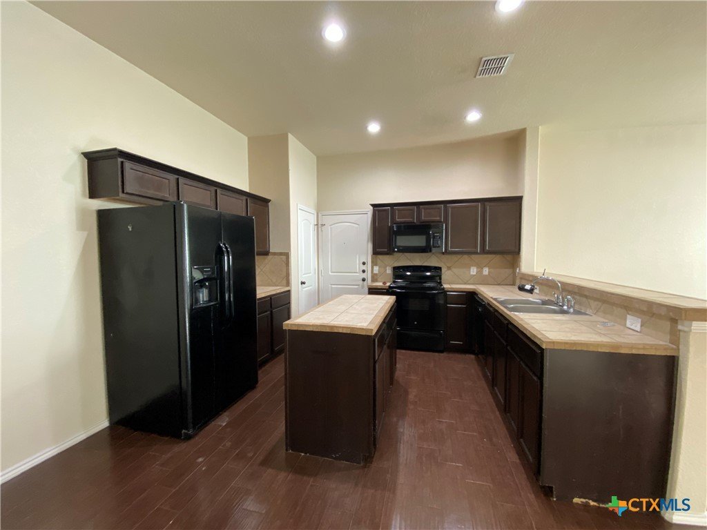 3/2/2 Duplex in Creekside Crossing. Xeriscape front yard. Wood look tile flooring. No carpet. Kitchen Features Include: dishwasher, oven/stove range electric, built in microwave, refrigerator, island, breakfast bar, granite counter tops, panty , & recessed lighting. Other features: interior washer / dryer connections, ceiling fans ,primary bath has shower / tub combo & double vanities, primary has a walk in closet , wings to hide trash cans, sprinkler system, garage door opener, fenced in backyard, and large back patio. CISD Schools. 2 pets max. 50 lbs max.