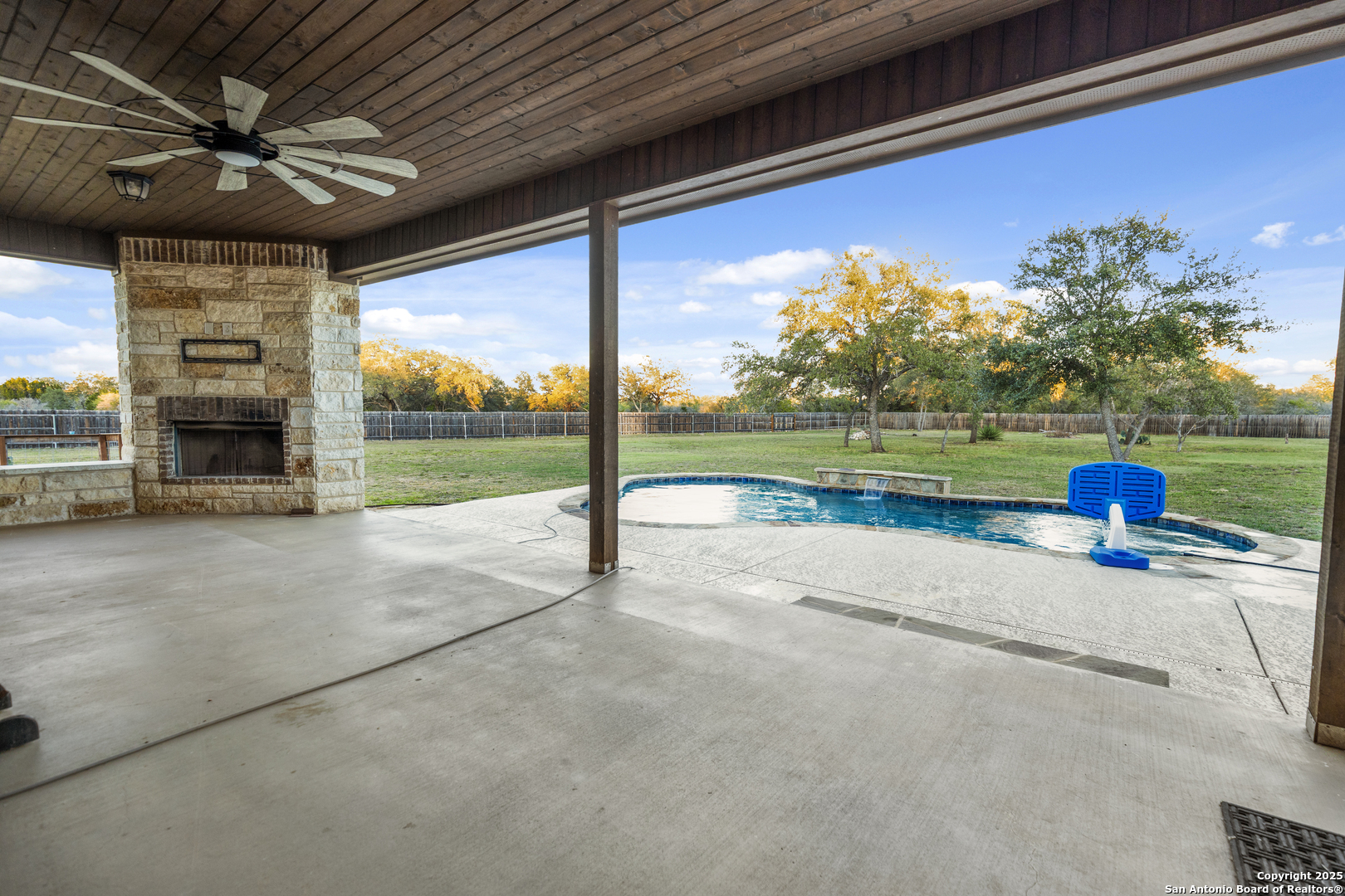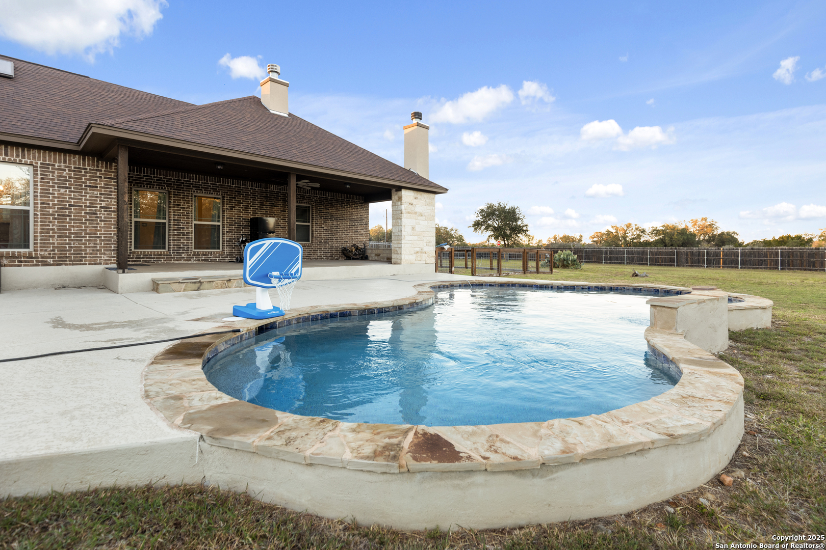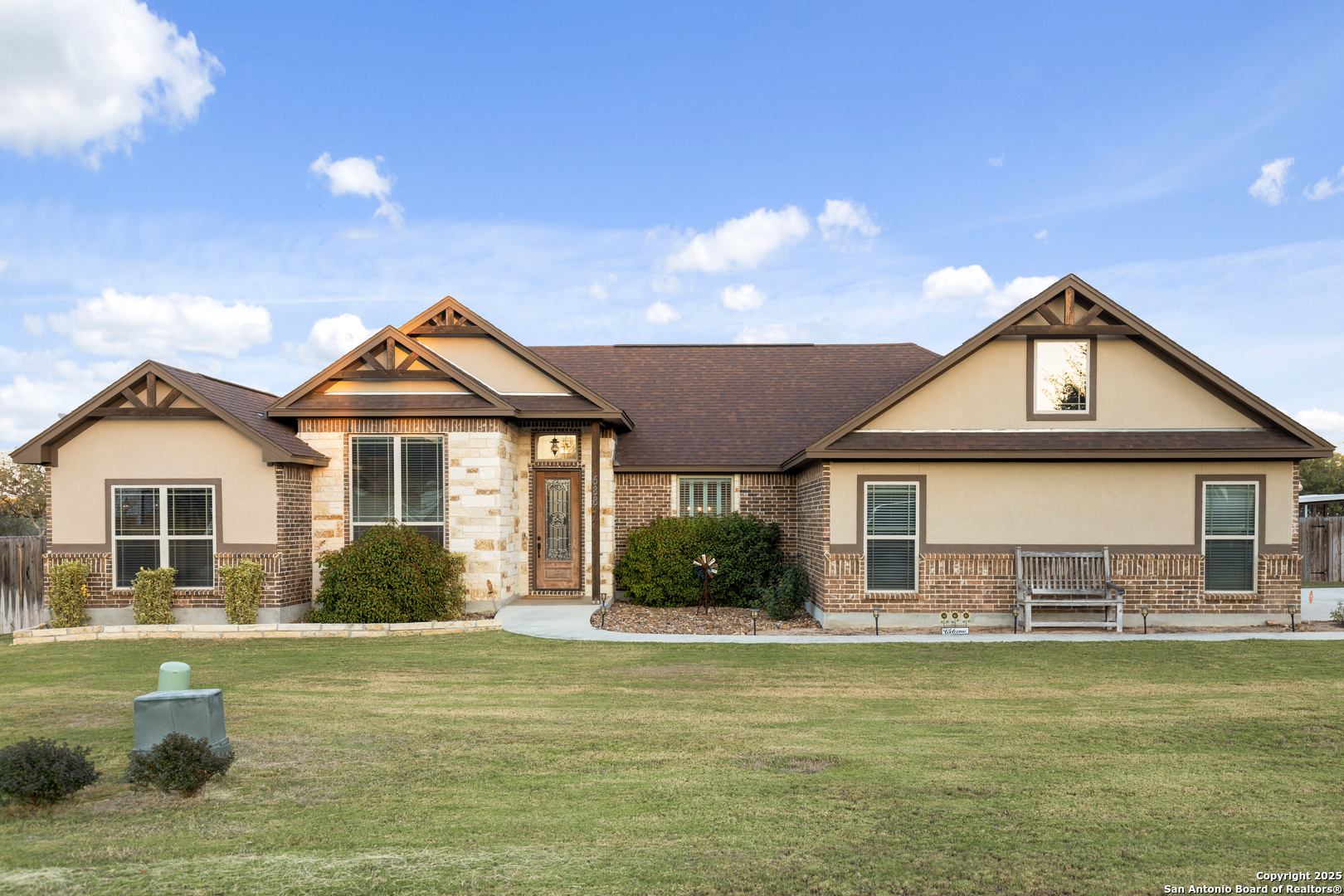 You don't want to miss out on the Open House this Sunday, 11/16/25 from 2-4pm. Discover the comfort and charm of this beautifully built Castroville home. The home is uniquely crafted with brick, rock, and stucco and sits on 1.27 acres. With over 2,200 sq. ft., this property offers 2 bedrooms, 3 bathrooms, a dedicated office, and a 2-car garage. The open kitchen features stunning granite countertops, a spacious walk-in pantry and a custom skylight that brings in beautiful natural light with beautiful wooden accents throughout. Right outside is a generous outdoor living area with a cozy fireplace and an in-ground pool, all privately fenced offering the perfect space for relaxing and entertaining with others. The expansive backyard, surrounded by mature trees, provides a peaceful setting and room to make it your own with endless possibilities. Offers the space and privacy of country living with the added comfort of a close-knit, secure neighborhood
