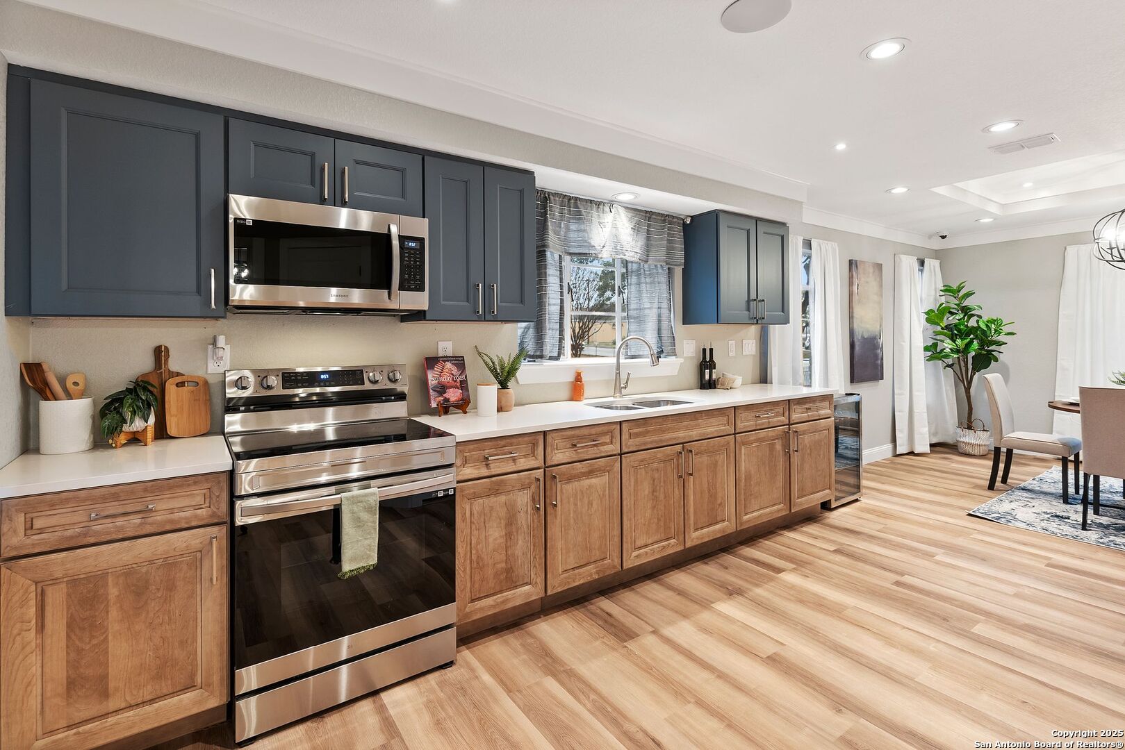 ** OPEN HOUSE THIS SUNDAY MAY 4 | 11AM - 3PM ** ** OFFERING $5000 IN CONCESSIONS ** Stunning home located in Castle Hills is a stunning example of modern renovation, situated on a spacious 0.67-acre lot surrounded by numerous majestic oak trees, offering a serene and picturesque setting. This home has been insulated, including all interior and exterior walls as well as the roof, providing exceptional energy efficiency, soundproofing, and comfort throughout. With a professionally reinforced foundation, brand-new electrical and plumbing systems, security camera system, full home speaker system, plus extensive updates, this property offers worry-free living in a modern home designed for today's lifestyle. Inside, the larger-than-average rooms are crafted for both comfort and versatility. The newly renovated kitchen features sleek cabinetry and high-quality finishes, making it the perfect space for cooking and hosting gatherings. The owner's retreat, currently designed as a theater and game room, provides a unique entertainment space or can easily be transformed into a luxurious master oasis tailored to your personal vision. The exterior is just as impressive, with a paved driveway that includes dedicated parking spaces for guests. The property boasts new landscaping, French drains, and full-perimeter gutters, ensuring both beauty and practicality. The drive-in garage adds convenience, while the expansive lot offers privacy and ample space for outdoor activities or future enhancements. Located in the heart of Castle Hills, this home blends modern updates with timeless charm, offering an ideal setting for comfortable living and entertaining. Don't miss the chance to make 6905 West Ave your own. Schedule your private showing today.