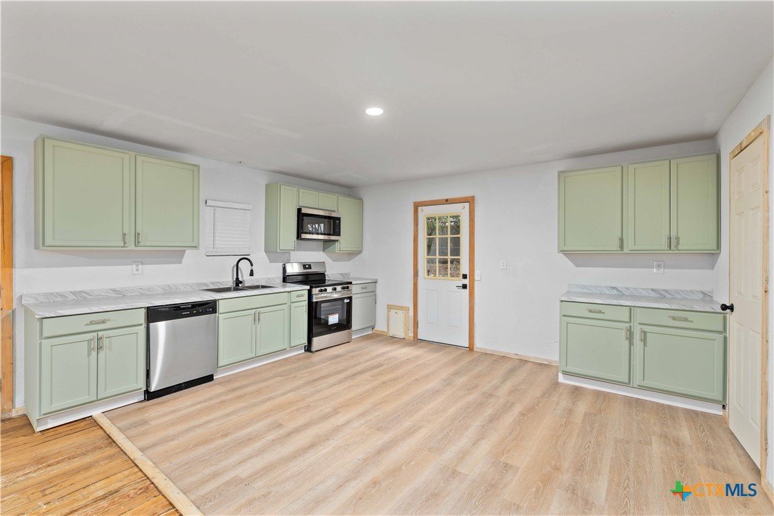 Offering $5000.00 in Flex Cash towards a full price offer! Searching for an affordable and move-in ready home? Look no further than this charming bungalow in Shamrock Shores! This home has been recently updated with new appliances, fixtures and paint. Revel in the clean exterior finish and beautiful old-growth Live Oak trees that scatter the lot. You are minutes away from Lake Brownwood and all the clean and amenities it has to offer. With a separate 378 SQFT carport and parking area – enough to park an RV! – The front yard is brimming with potential to make a quality outdoor living space. The large setback means you have a quieter interior, independent from the noise on the street. Past the covered front porch there is an open living room and kitchen area, meaning that the chef is never left out of the party. You can eat outdoors, under the cooling ceiling fans, or by the warm raised wood burning hearth. The hallway to the bathroom efficiently doubles as the laundry room. The rear of the house has an attached 72 SQFT of storage, providing additional insulation near the bedrooms, and contributes to a clutter free living space. Only 15 minutes out from Walmart and 20 minutes from downtown Brownwood. This is the perfect balance of the nature-rich lifestyle of lakeside living and the comforts and conveniences of a large town. Schedule your showing today. Need help getting qualified? We can build your credit!