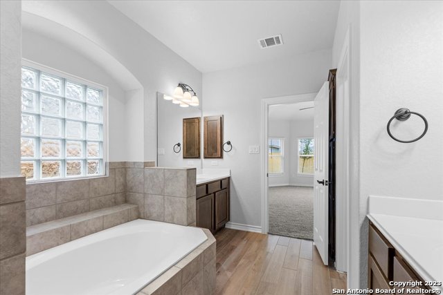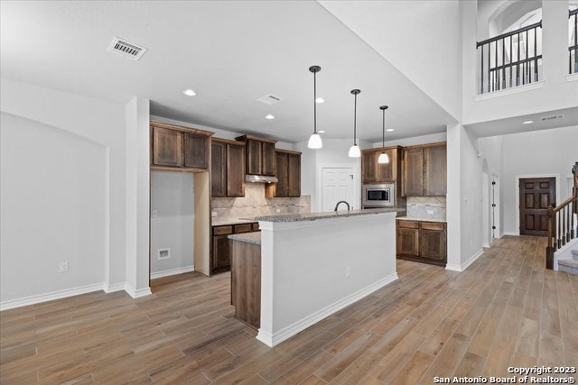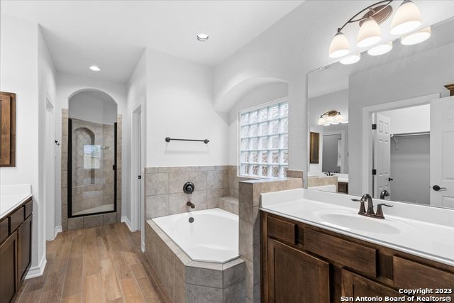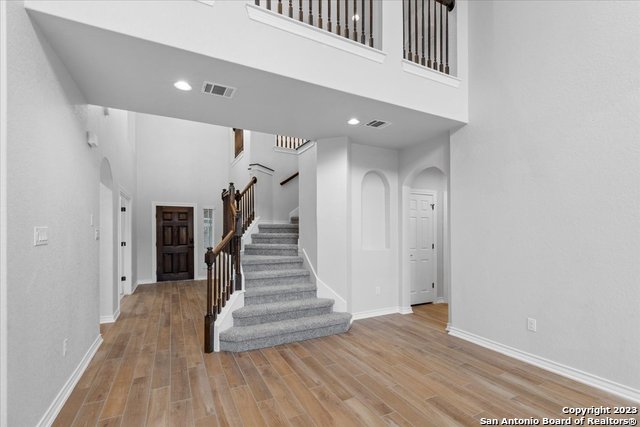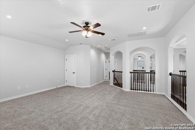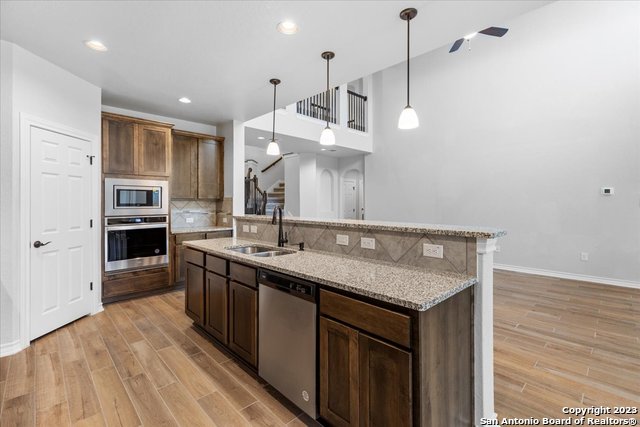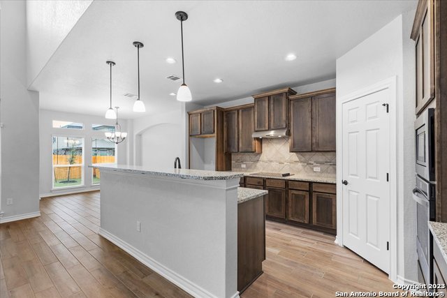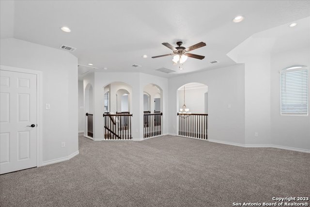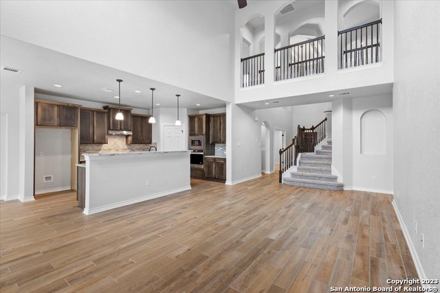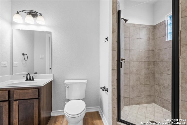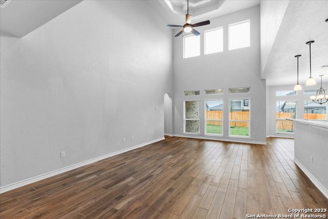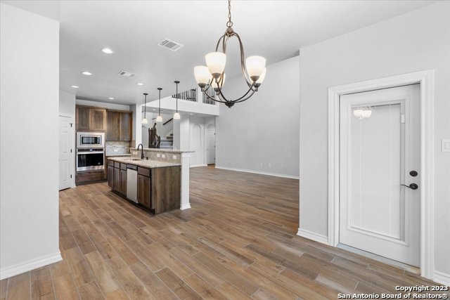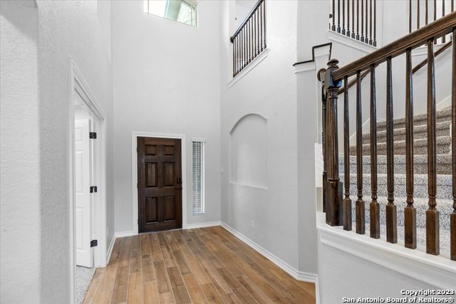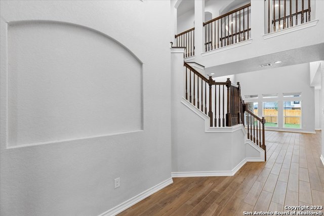 Welcome home! This grand home is convenient to Ft Sam and Randolph, close to Loop 1604 and I-35. A stunning home with 4 bedrooms and 3 full baths, high ceilings and a wall of windows that provide an open feeling throughout. The main bedroom down boasts a spa-like bath with walk in shower and separate soaking tub. The chef's kitchen features gas cooking, built in oven and microwave, and generous granite counters with breakfast bar. The secondary guest suite downstairs has a full bath and can serve as an offi
