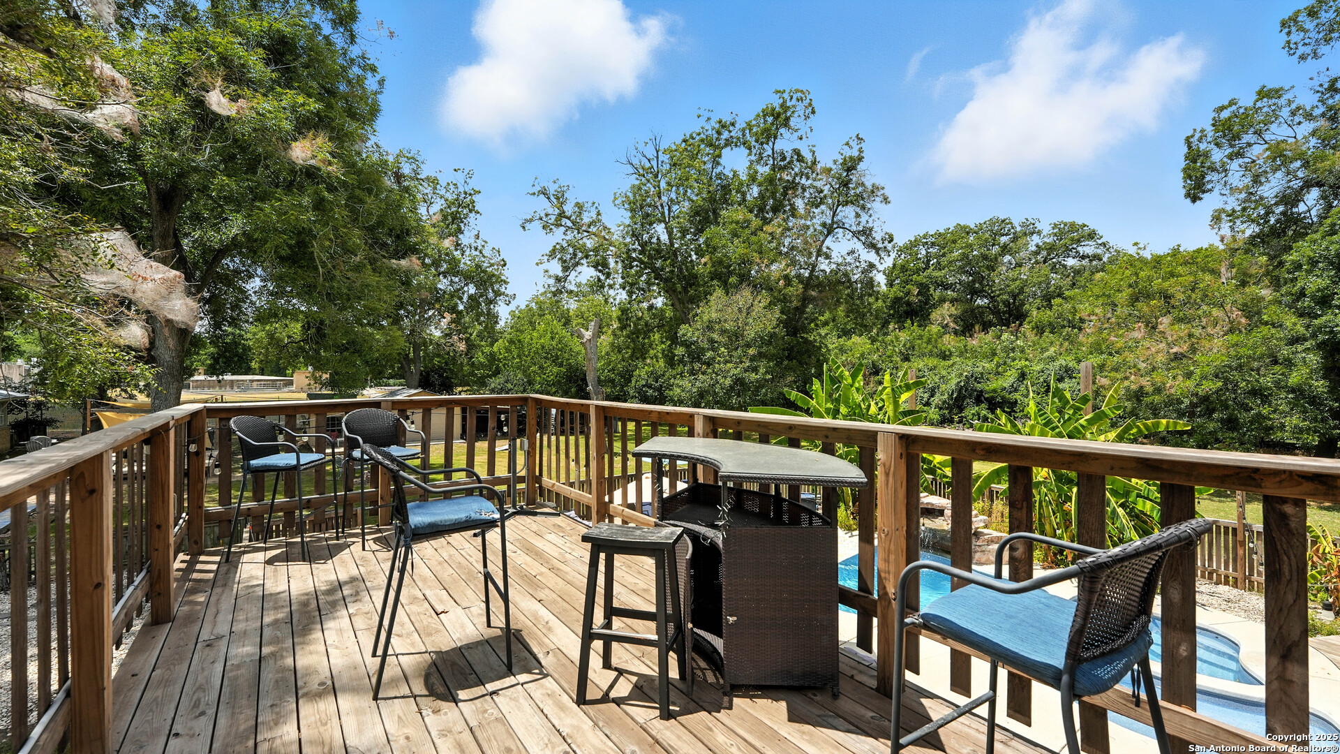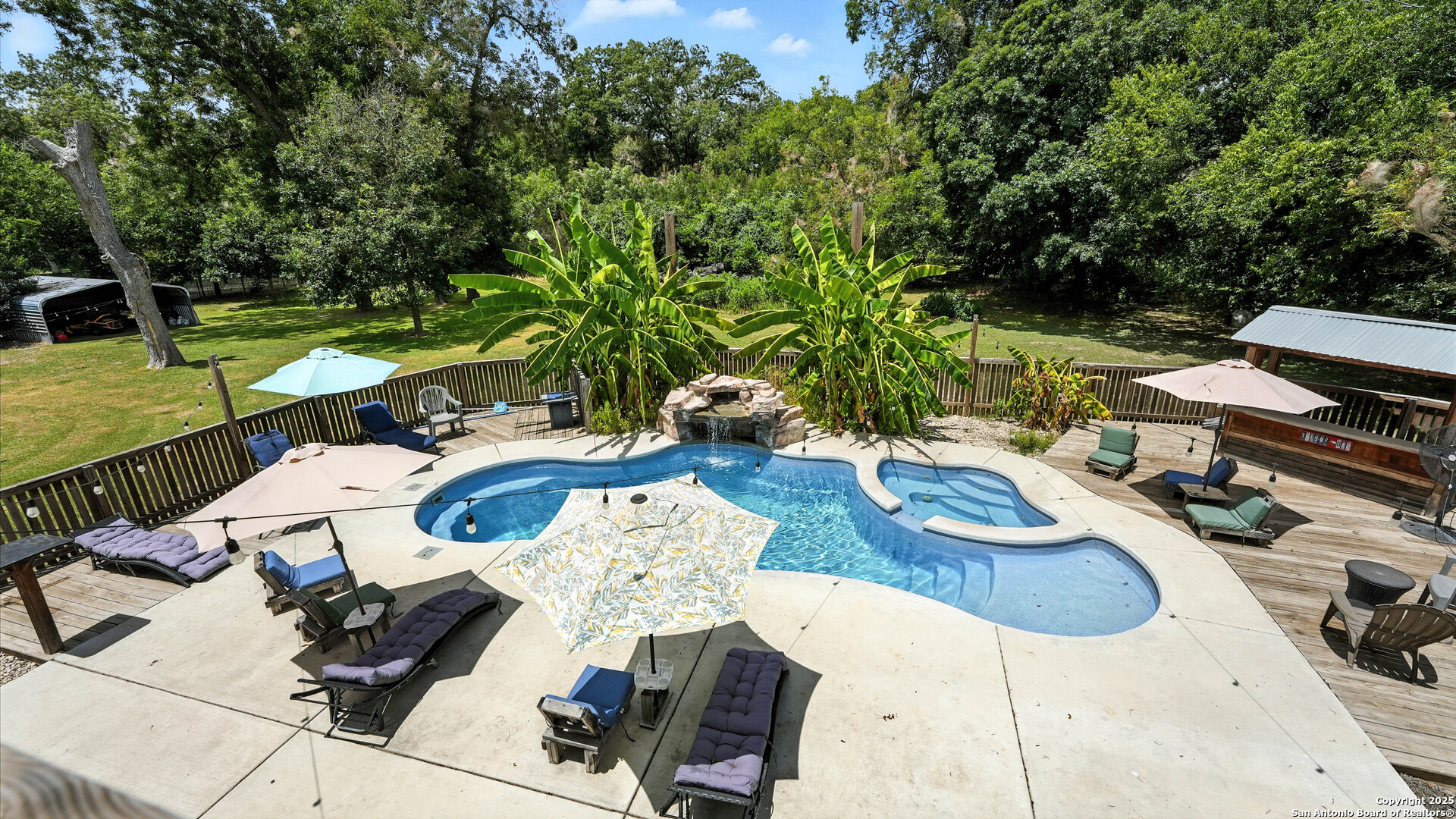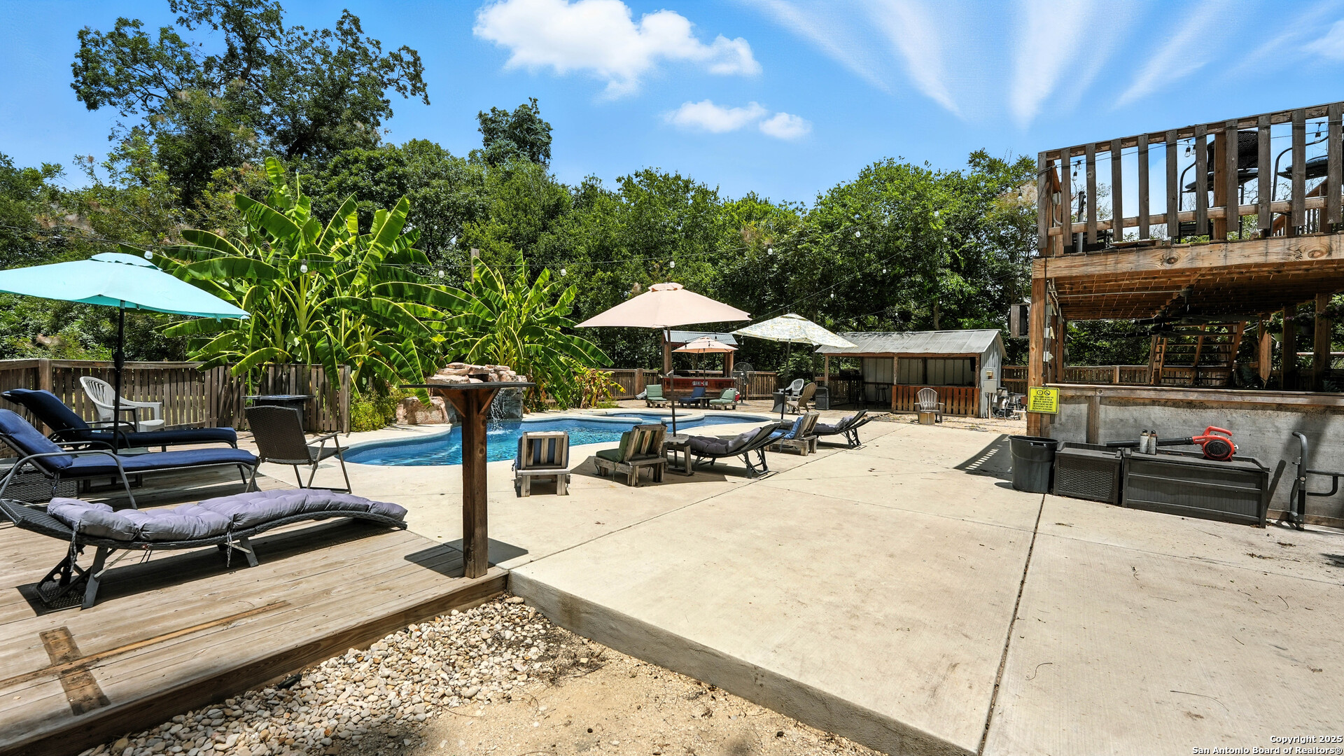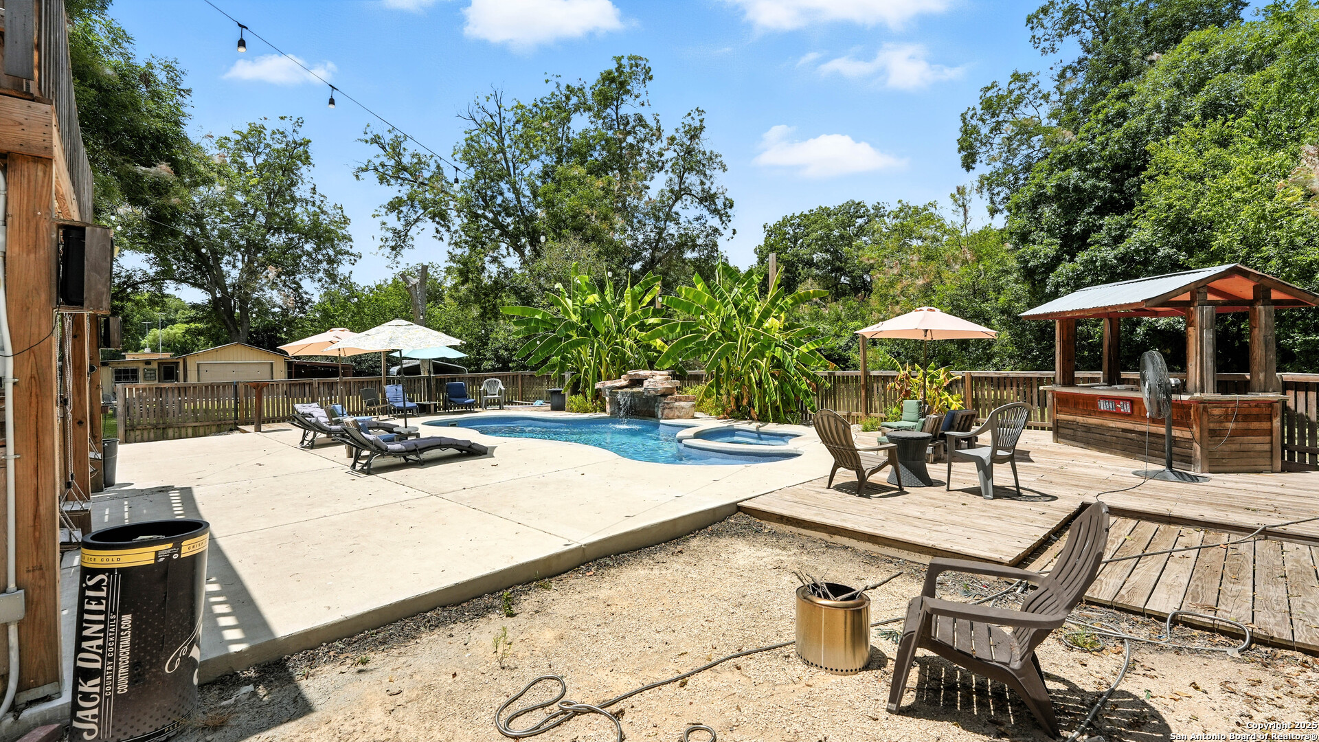 Secluded Home Vacation Retreat - New Braunfels Step into your very own getaway with this one-of-a-kind property featuring two separate homes and endless entertainment opportunities just minutes from the Guadalupe River, Schlitterbahn, and downtown New Braunfels. With no HOA and an existing Special Use Permit (SUP) for a Bed & Breakfast on the main brick home (with potential for the second home to apply as well), this retreat offers unmatched versatility for private living, entertaining, and income generation. The second home includes 2 bedrooms and 1 bathroom, plus a charming updated kitchen that flows into the living area. A large deck overlooks the outdoor entertainment spaces, creating an inviting guest or family retreat. The backyard feels like a vacation resort surrounded by mature trees, with a centerpiece heated and cooled inground pool featuring a waterfall, elevated observation deck, and multiple cabanas for shade and relaxation. The pool area also includes four exterior bathrooms, a hot tub, and a fully equipped poolside bar cabana. The pool has even been an income-producing rental for private parties and events, adding another layer of opportunity. Additional highlights include: On-Site Lounge/Party Room - a converted detached garage fully outfitted with sound, lighting, and a bar setup for unforgettable private events. Pickleball Court - the perfect addition for fitness and fun. A property-wide sound system, strategically directed toward the back of the lot to keep the front peaceful. Adding even more value, the current owner is willing to remain for a few months to help train and guide the next owner in operating the Bed & Breakfast, ensuring a smooth transition. This property truly offers a vacation lifestyle at home, blending privacy, entertainment, and income potential in the heart of New Braunfels.