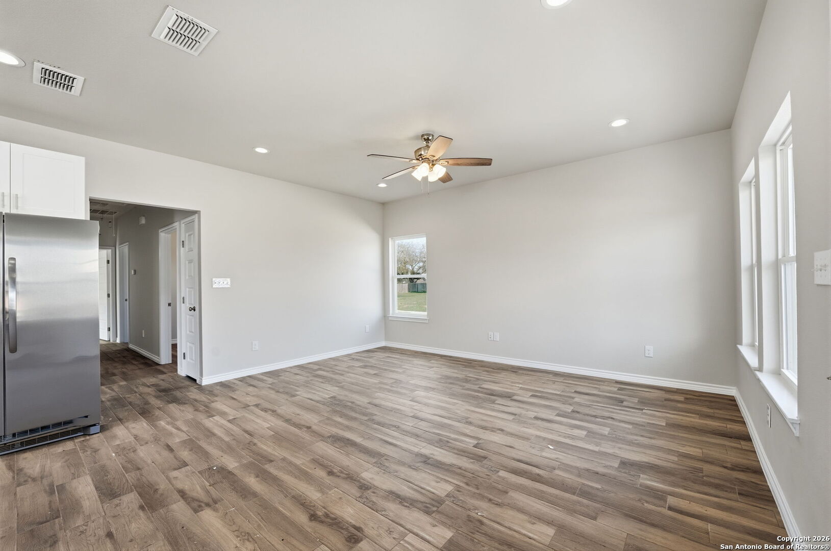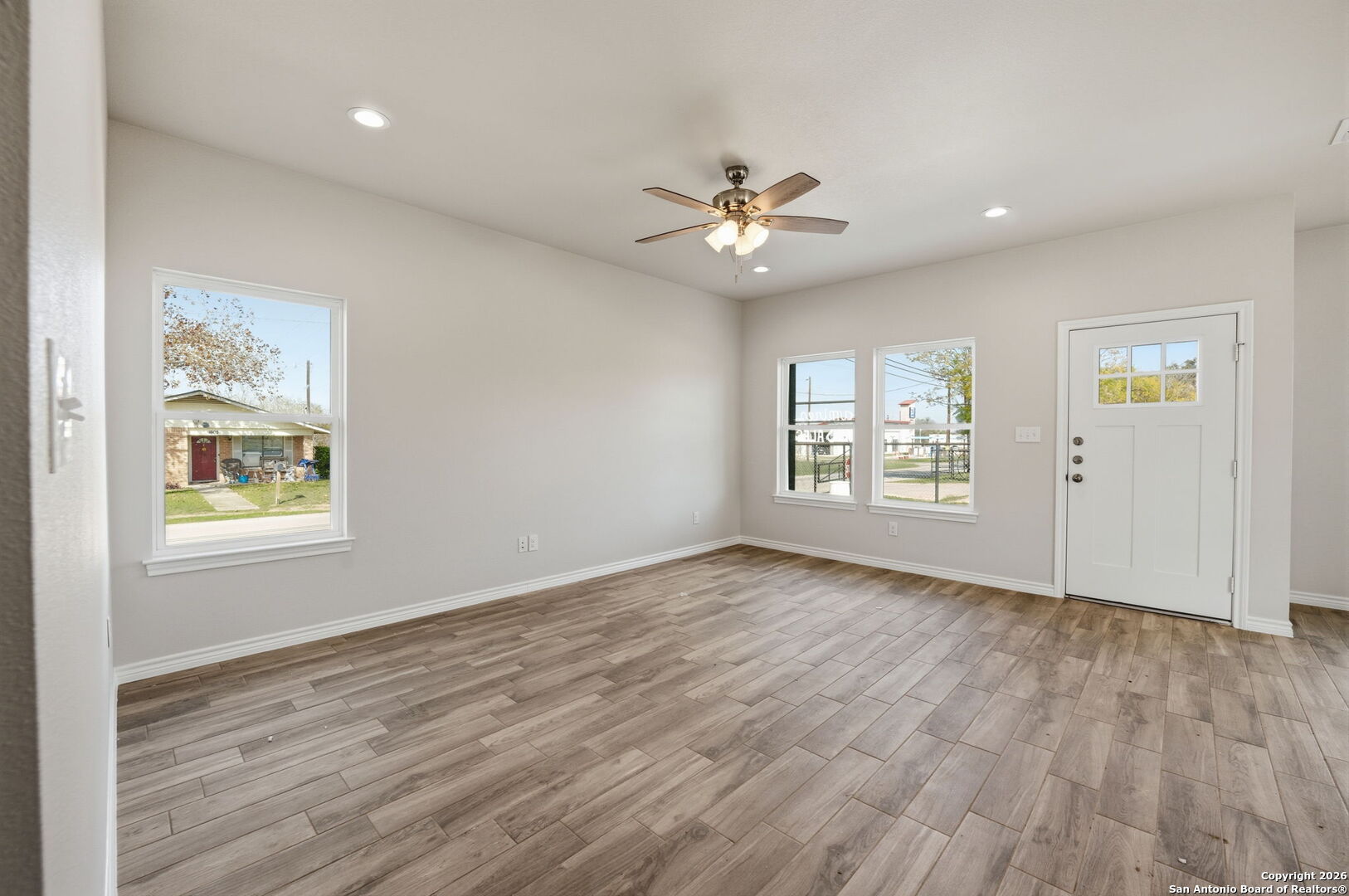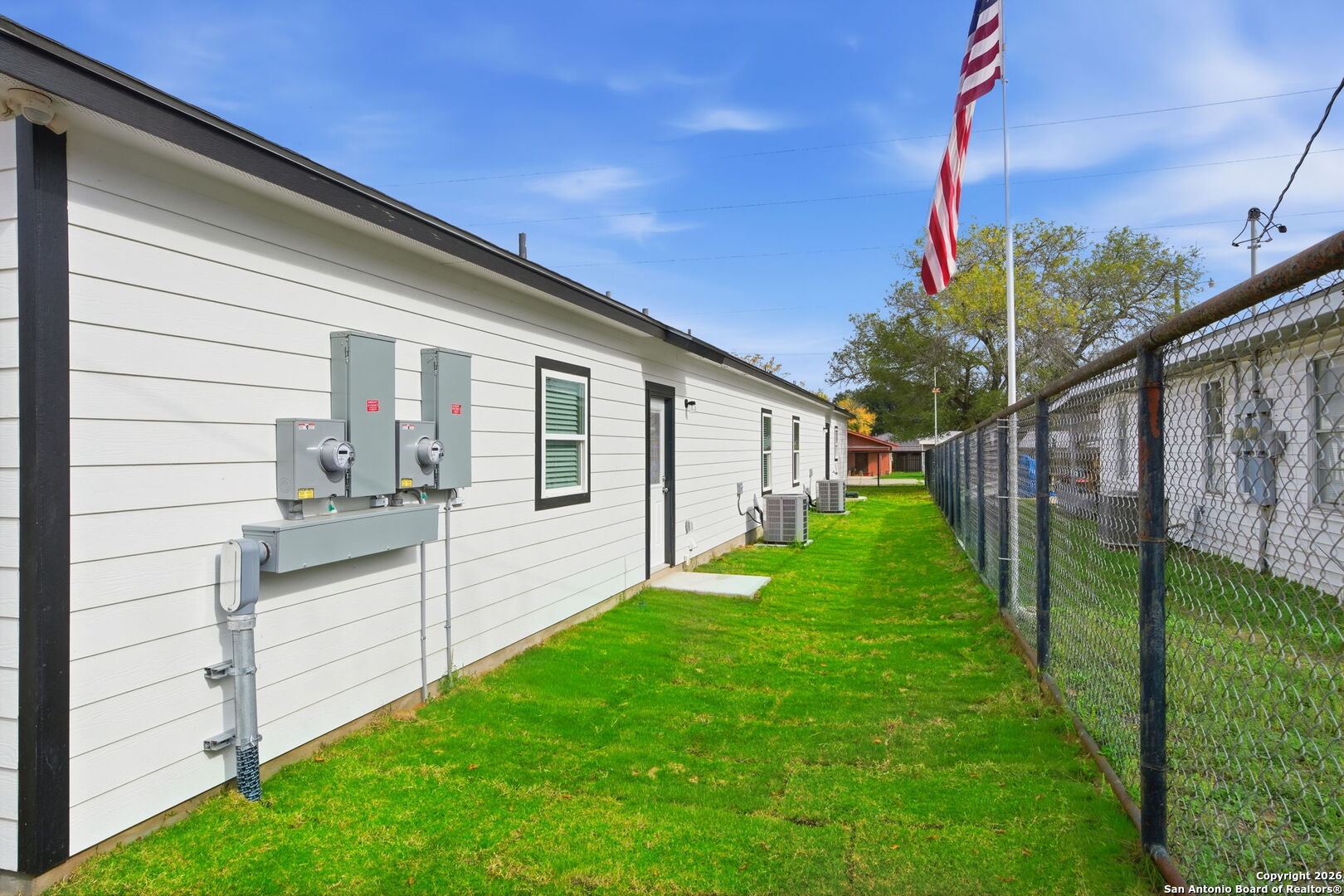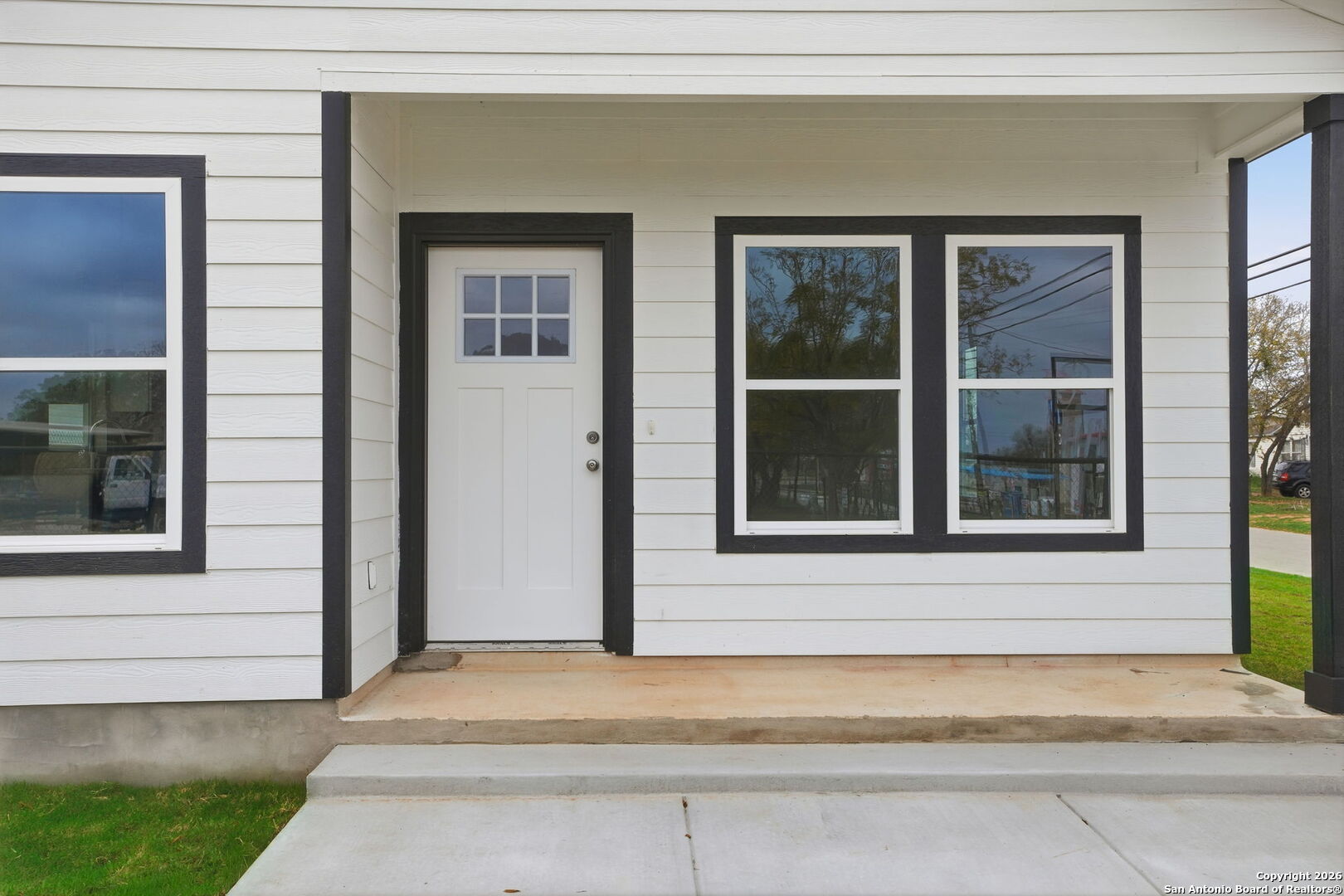 New construction, beautiful finishes throughout, a perfect place to call home! This is a 3 bed, 2 bath unit. Located one block off of 181 in Floresville downtown area. Easy access, quiet streets, brand new duplex just waiting for you! Fenced in yard, parking pad, stainless appliances, solid surface countertops, blinds and a fresh new build ready for immediate move in! There are 2 units available. Both are 3 bed, 2 bath.