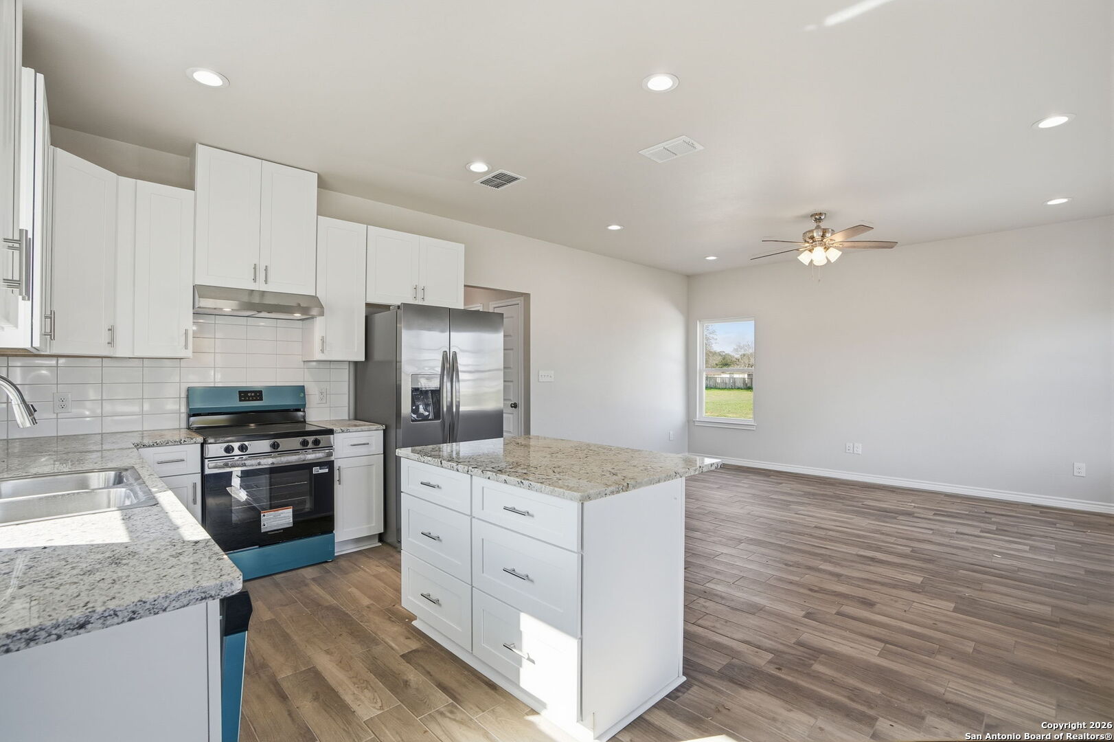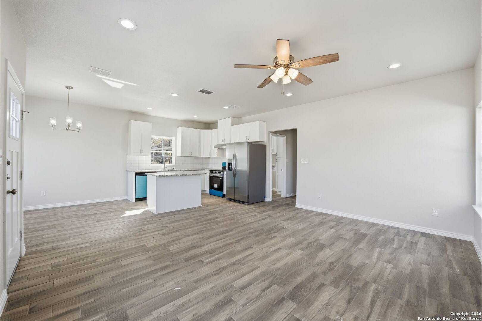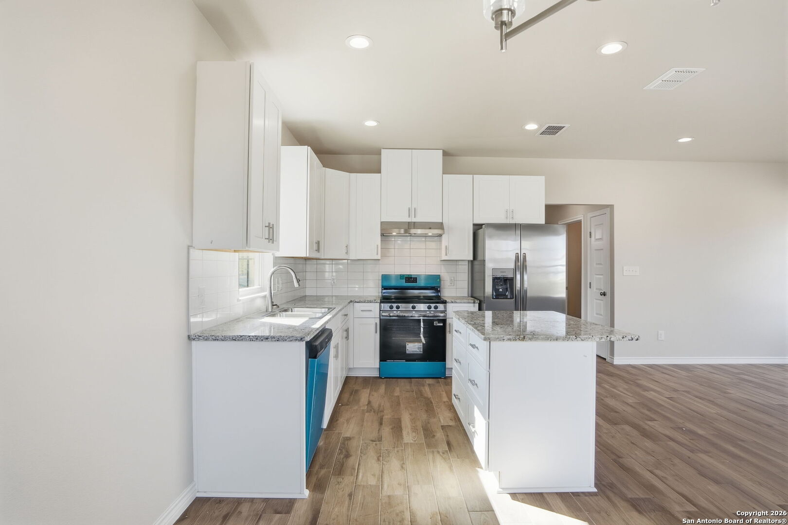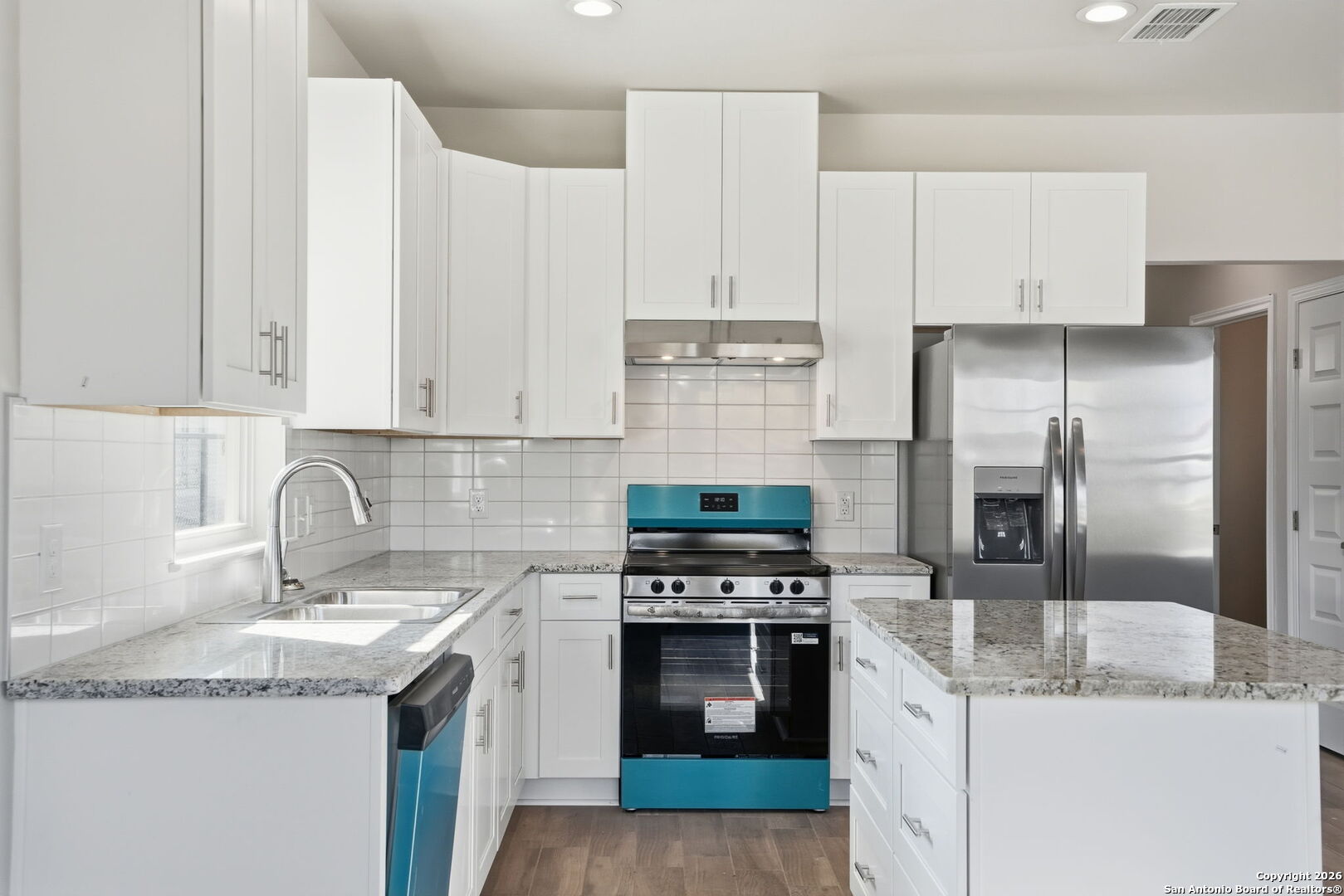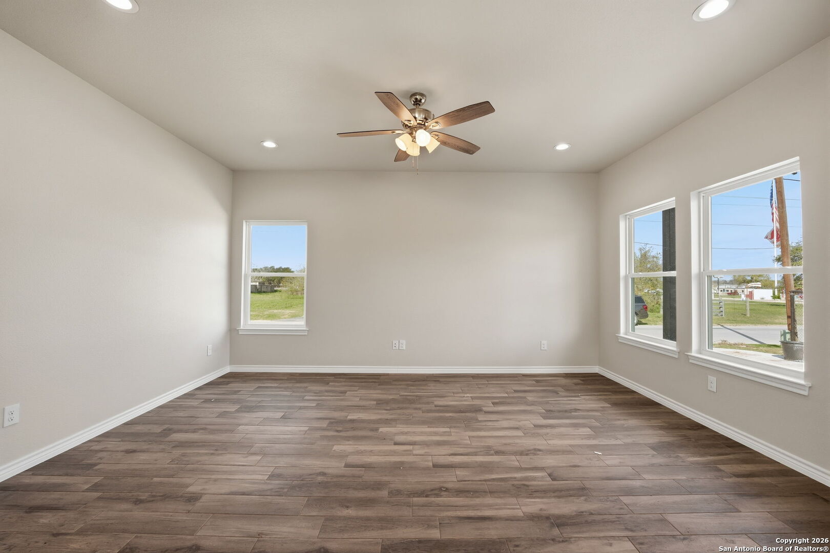 New construction, beautiful finishes throughout, a perfect place to call home! This is a 3 bed, 2 bath unit. Located one block off of 181 in Floresville downtown area. Easy access, quiet streets, brand new duplex just waiting for you! Fenced in yard, parking pad, stainless appliances, solid surface countertops, blinds and a fresh new build ready for immediate move in! There are 2 units available. Both are 3 bed, 2 bath.
