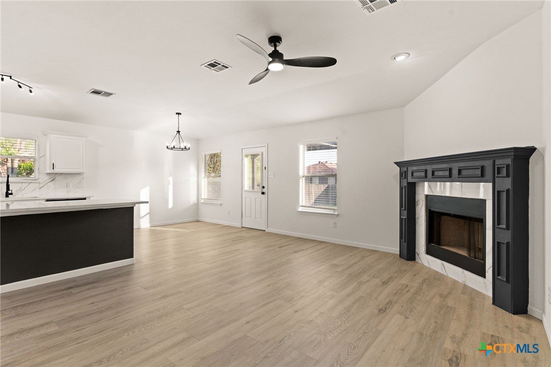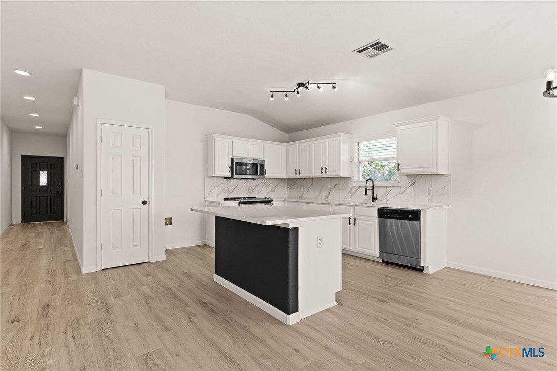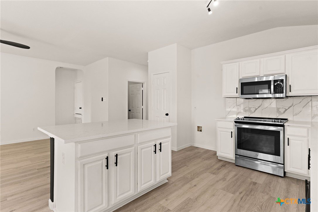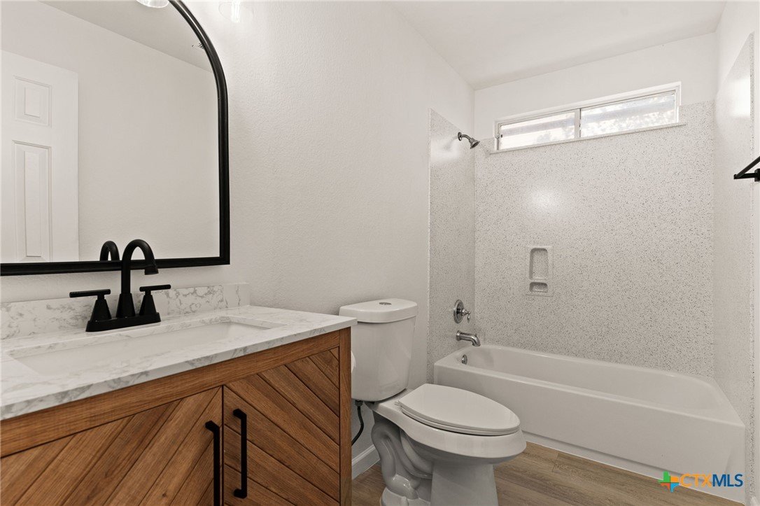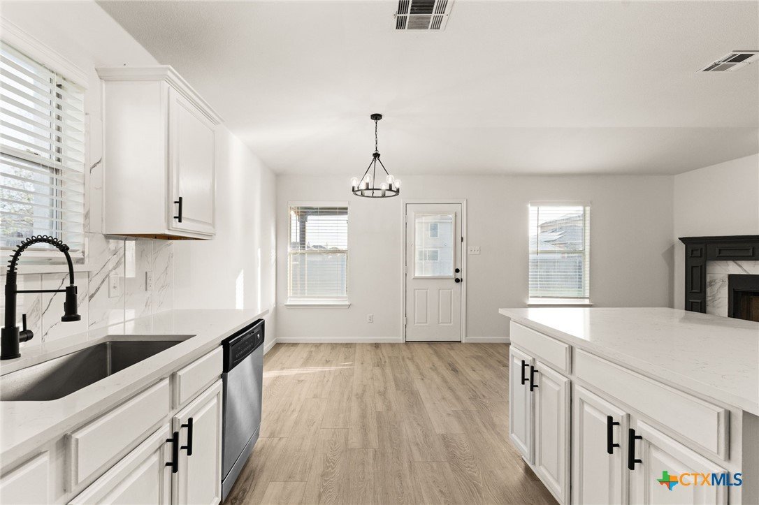 Almost everything is new! This beauty comes fully redone and equipped ready for a new owner! Inviting kitchen open to dining and family room, brand new quartz countertops and backsplash, an island to prep & gather, and check out these beautiful waterproof luxury laminate floors throughout! Brand new GE appliances! The open concept living dining kitchen combo with corner wood burning fireplace also allows access to the covered patio with a level backyard, privacy fenced. There are two bedrooms located on the front side of the property with guest/hall bath in between. Everything is new! New shower/tub combo and brand new vanity. Primary bedroom towards the back of the home, with adjacent primary bath, garden tub, separate shower, double vanity and large walk in closet! Also equipped with Nest thermostat and new two inch faux wood blinds. New roof, new paint inside and out. All you have to do is move in!