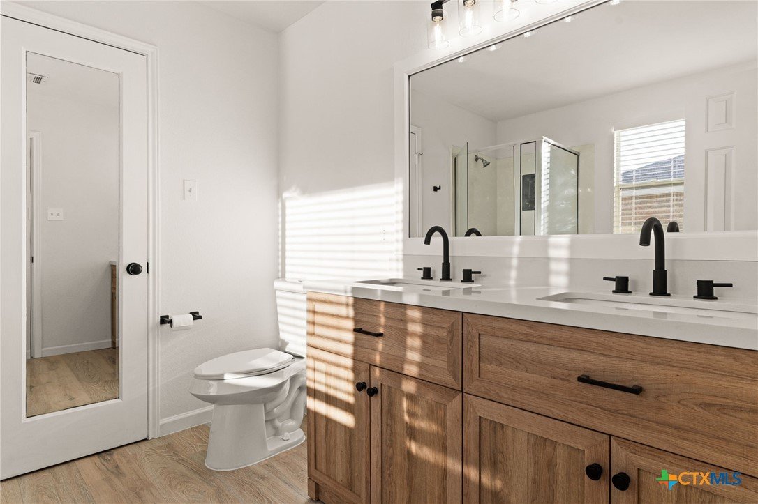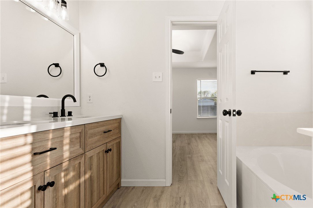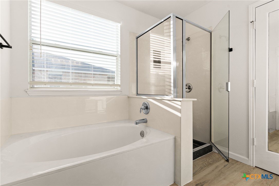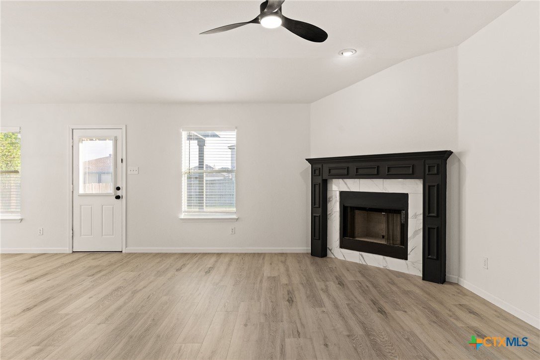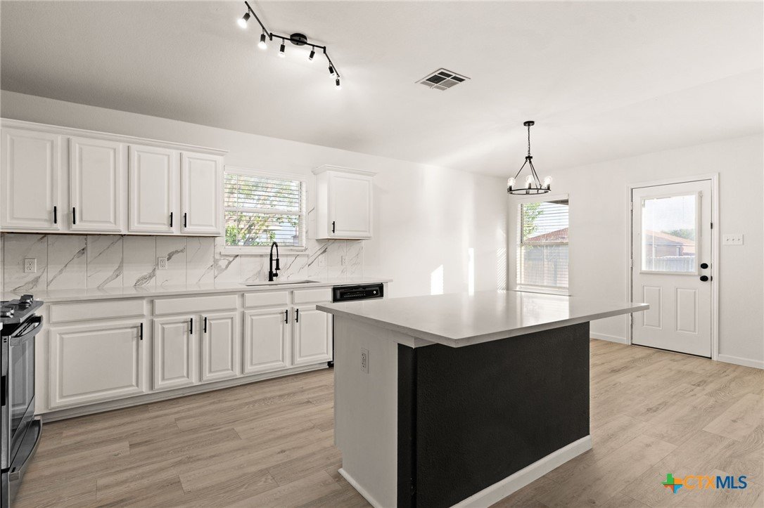 Almost everything is new! This beauty comes fully redone and equipped ready for a new owner! Inviting kitchen open to dining and family room, brand new quartz countertops and backsplash, an island to prep & gather, and check out these beautiful waterproof luxury laminate floors throughout! Brand new GE appliances! The open concept living dining kitchen combo with corner wood burning fireplace also allows access to the covered patio with a level backyard, privacy fenced. There are two bedrooms located on the front side of the property with guest/hall bath in between. Everything is new! New shower/tub combo and brand new vanity. Primary bedroom towards the back of the home, with adjacent primary bath, garden tub, separate shower, double vanity and large walk in closet! Also equipped with Nest thermostat and new two inch faux wood blinds. New roof, new paint inside and out. All you have to do is move in!
