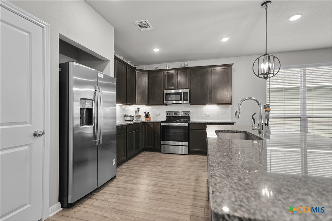 Welcome to 7005 McGregor Loop, a beautifully designed home located in the desirable McGregor Estates community of Killeen, TX. This modern residence offers 1,841 square feet of well-appointed living space, perfect for families seeking both comfort and style. Inside, you'll find dual living areas ideal for relaxing or entertaining, along with a spacious gourmet kitchen featuring granite countertops, stainless steel appliances, a large island, and a stylish tile backsplash. The open-concept design allows for natural light to fill the space, creating a bright and welcoming atmosphere throughout. The primary suite provides a peaceful retreat with a generous walk-in closet and a luxurious en-suite bathroom. Additional upgrades include pendant and under-cabinet lighting, a single-basin sink, and an optional study alcove for added flexibility. Situated just minutes from Fort Cavazos and near schools, shopping, and dining, this home is also zoned to Pat Carney Elementary, Live Oak Ridge Middle School, and Shoemaker High School. Discover a perfect blend of modern living and everyday convenience at 7005 McGregor Loop.