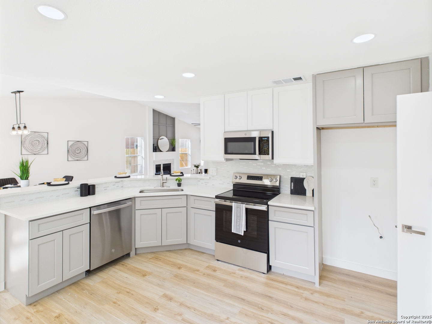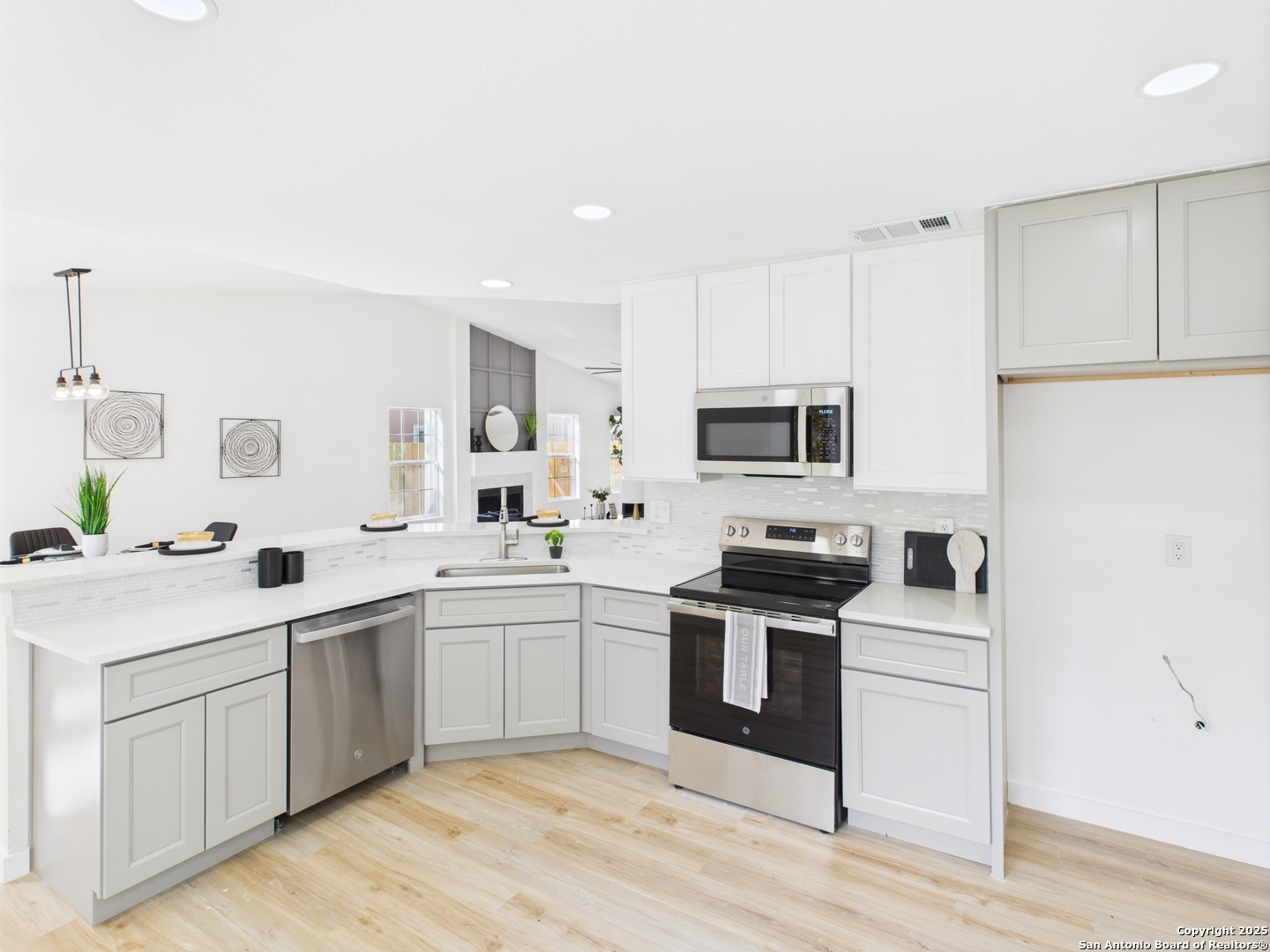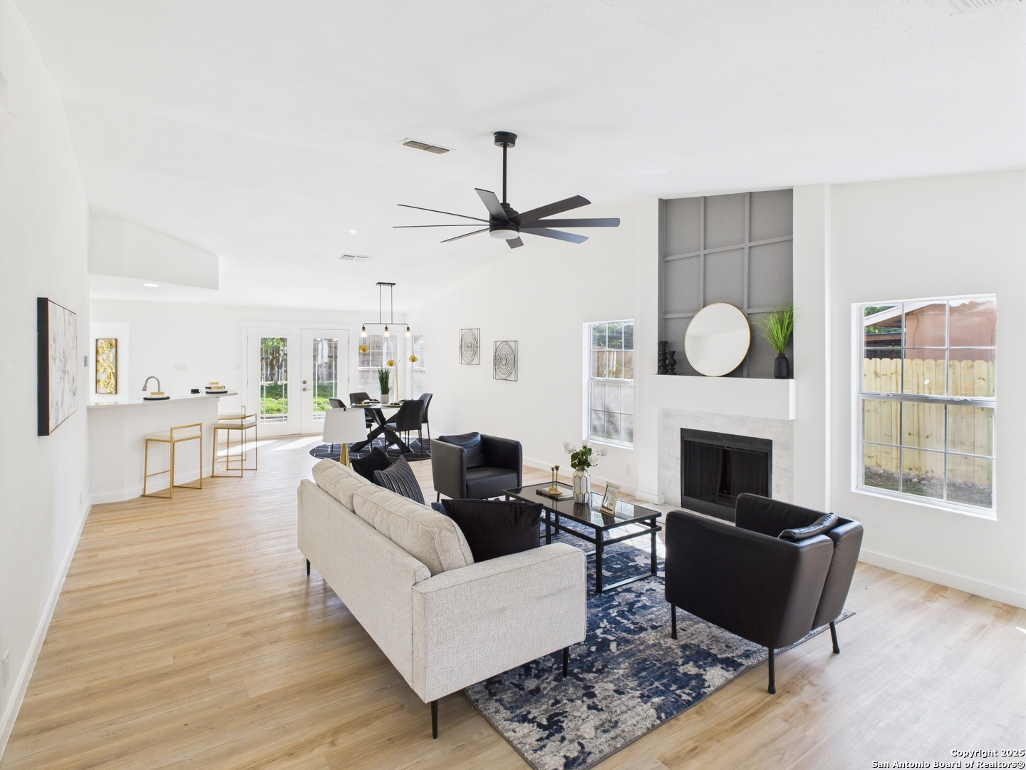 ***OPEN HOUSE SATURDAY OCTOBER 18TH 11-1PM***Modern Elegance Meets Everyday Functionality in This Spacious Renovated Home Welcome to 7007 Elk Trail, a beautifully updated 4-bedroom, 2.5-bath residence with over 2,500 sq. ft. of stylish living space. Perfectly situated on a quiet cul-de-sac just minutes from Randolph AFB and Ft. Sam Houston, this move-in-ready home blends thoughtful design with modern comfort. Step inside to soaring ceilings, fresh neutral tones, and luxury vinyl plank flooring that flows seamlessly throughout the open-concept layout. The stunning kitchen boasts quartz countertops, sleek new cabinetry, stainless steel appliances, and designer finishes-ideal for both everyday living and entertaining. The main-floor primary suite is a true retreat, featuring a spacious layout, walk-in closet, and a fully remodeled ensuite with dual vanities and modern fixtures. Upstairs, you'll find three additional bedrooms, an updated full bath, and a versatile game room that could easily double as a fifth bedroom. Designer details abound, including a custom fireplace feature wall, new lighting and hardware throughout, and fresh exterior paint with updated landscaping. The fully fenced backyard provides the perfect backdrop for relaxing evenings or weekend gatherings. Located in a well-established neighborhood near shopping, dining, and golf, this home combines modern style with everyday practicality. Don't miss the opportunity to make this turnkey property yours-schedule a private tour today!