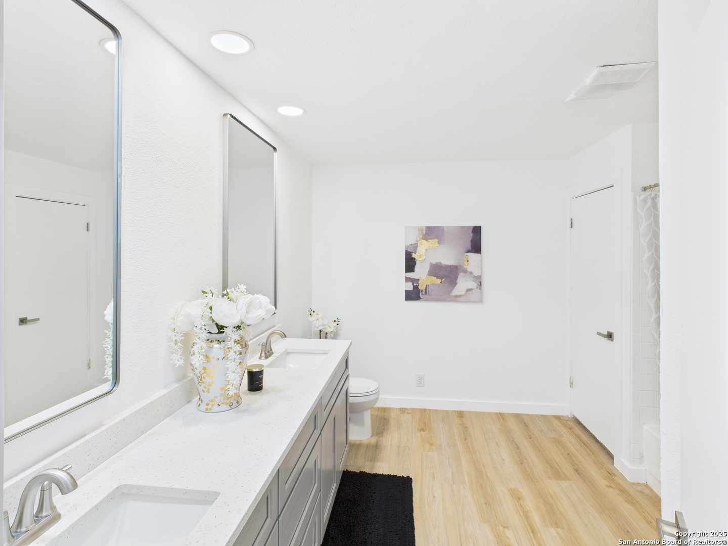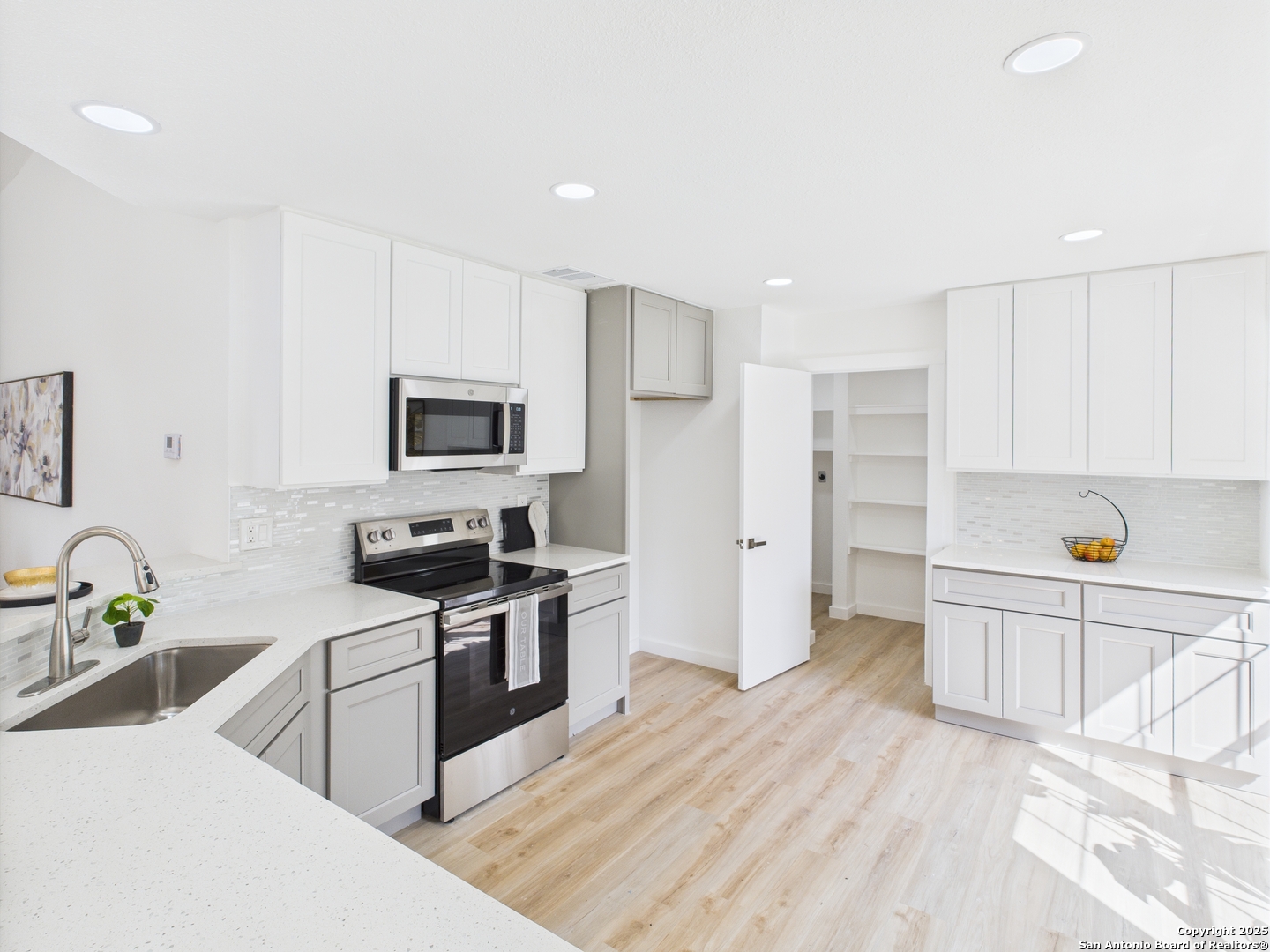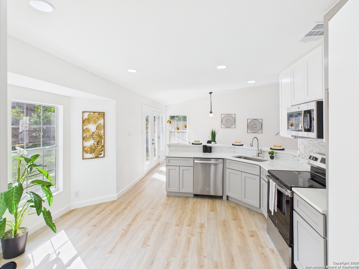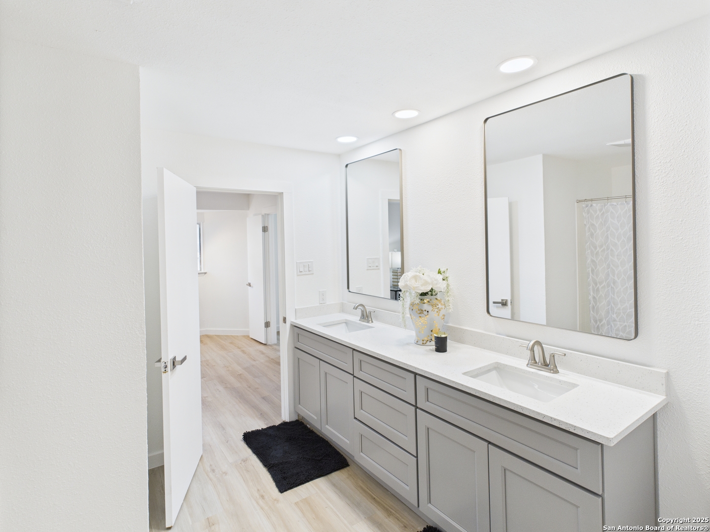 ***OPEN HOUSE SATURDAY OCTOBER 18TH 11-1PM***Modern Elegance Meets Everyday Functionality in This Spacious Renovated Home Welcome to 7007 Elk Trail, a beautifully updated 4-bedroom, 2.5-bath residence with over 2,500 sq. ft. of stylish living space. Perfectly situated on a quiet cul-de-sac just minutes from Randolph AFB and Ft. Sam Houston, this move-in-ready home blends thoughtful design with modern comfort. Step inside to soaring ceilings, fresh neutral tones, and luxury vinyl plank flooring that flows seamlessly throughout the open-concept layout. The stunning kitchen boasts quartz countertops, sleek new cabinetry, stainless steel appliances, and designer finishes-ideal for both everyday living and entertaining. The main-floor primary suite is a true retreat, featuring a spacious layout, walk-in closet, and a fully remodeled ensuite with dual vanities and modern fixtures. Upstairs, you'll find three additional bedrooms, an updated full bath, and a versatile game room that could easily double as a fifth bedroom. Designer details abound, including a custom fireplace feature wall, new lighting and hardware throughout, and fresh exterior paint with updated landscaping. The fully fenced backyard provides the perfect backdrop for relaxing evenings or weekend gatherings. Located in a well-established neighborhood near shopping, dining, and golf, this home combines modern style with everyday practicality. Don't miss the opportunity to make this turnkey property yours-schedule a private tour today!
