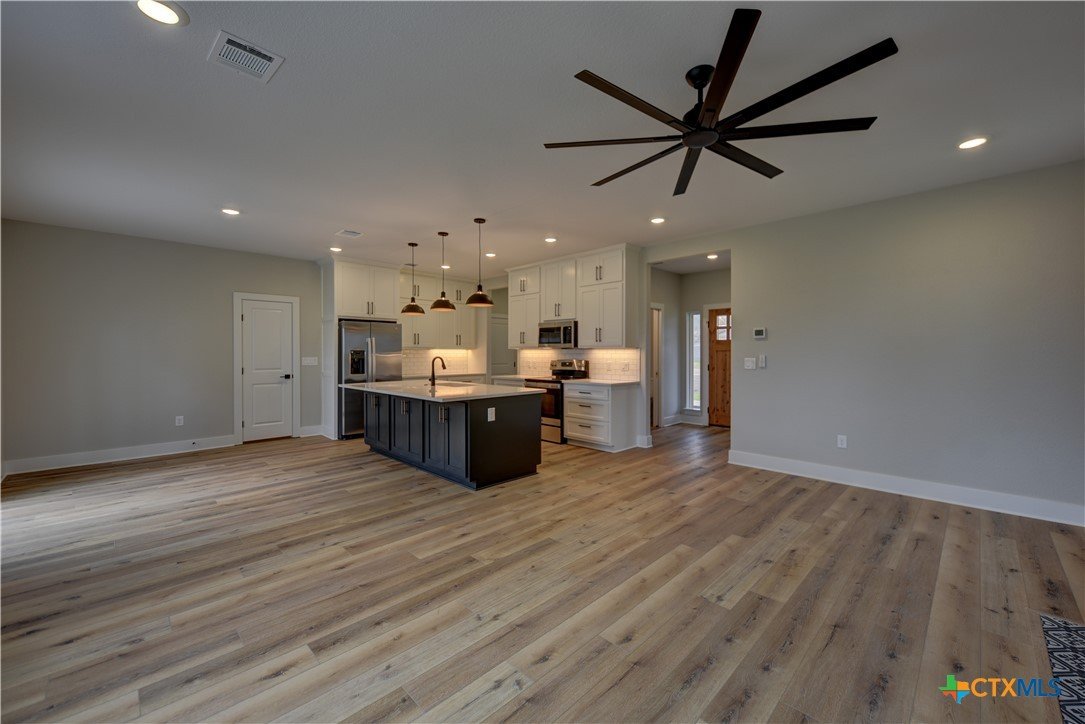 Modern living meets small-town charm in this beautifully crafted new construction near Flatonia schools. Set on over a quarter-acre, this home offers peaceful living with easy access to Houston, Austin, and San Antonio. The bright, open layout features a spacious kitchen with ample cabinetry, quartz island, and GE Energy Star stainless appliances. The dining area opens to a large backyard through sliding glass doors. A tiled Craftsman-style fireplace anchors the inviting living room, while a guest powder room and under-stair walk-in closet add convenience. Upstairs, the oversized primary suite includes a walk-in closet, double vanity, and walk-in shower. Two additional bedrooms and a full bath provide space for family or guests. Out back, enjoy the 13' x 34' patio—perfect for entertaining or relaxing. This thoughtfully designed home combines style, function, and comfort in a prime Central Texas location.