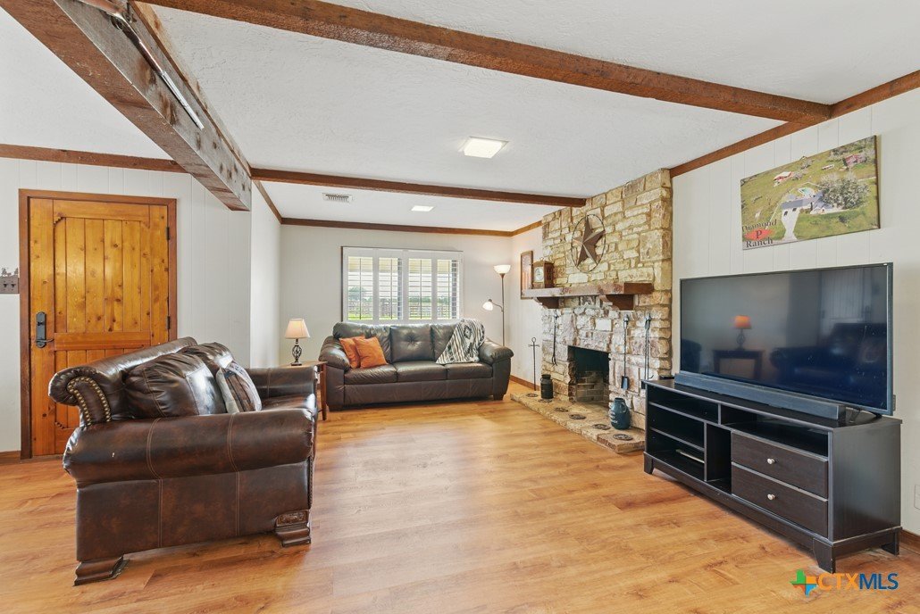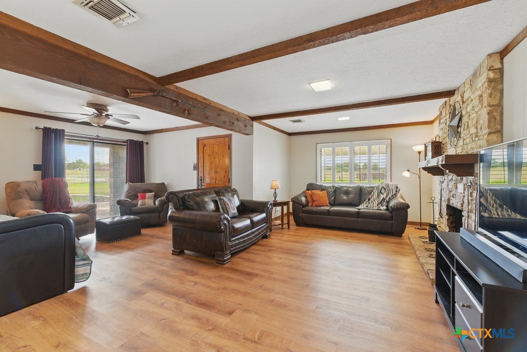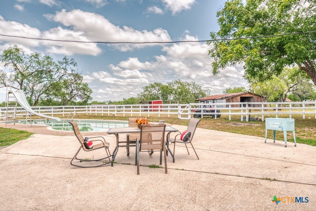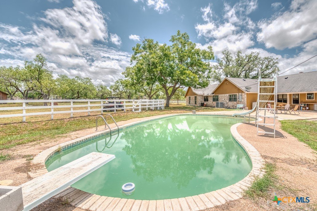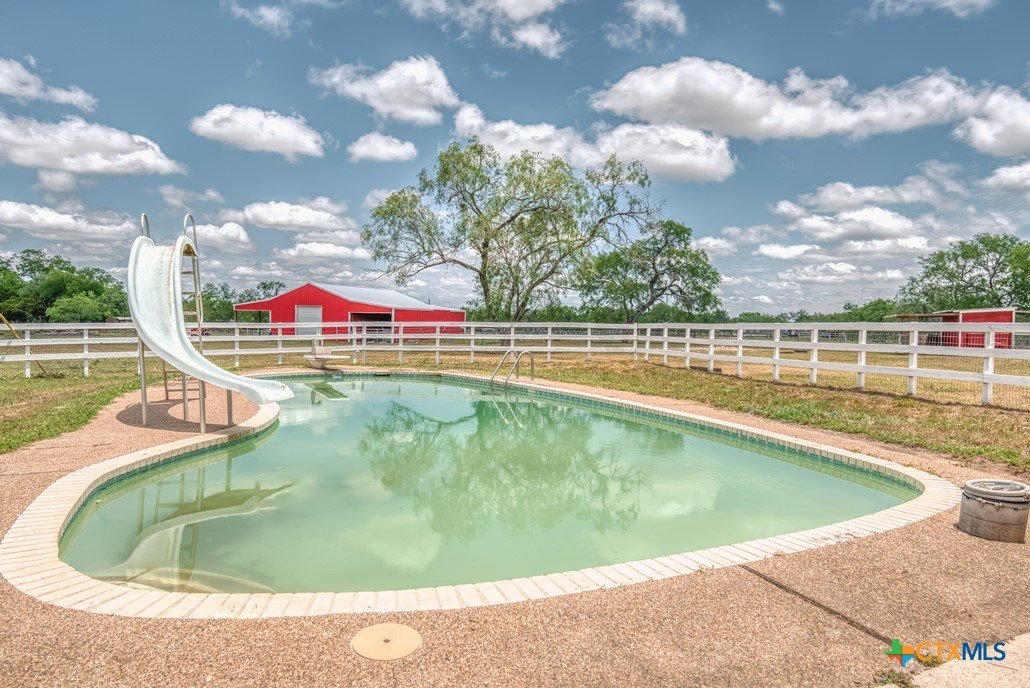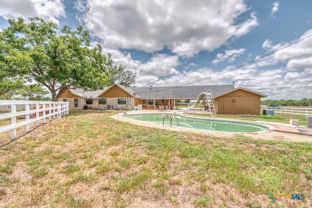 Don't miss this gorgeous one-story ranch style home on 10 acres featuring 4 bedrooms, 2 baths, 3 car carport, and inground pool. Grand kitchen with a lot of counter space and cabinets, breakfast bar with sitting area, cook top, double ovens, water filtration, large breakfast/dining area with bay window. Large primary bedroom, primary bath with double vanities, make up vanity, jetted tub, his and hers closets. Secondary bedrooms are very good size, with built-ins and ceiling fans. Shutters and wood looking laminate flooring all throughout home. Secondary bathroom with shower. Living/dining combination, with wood burning fireplace. For the heat an inground pool. Beautiful 10 acre lot with all new ranch fence on the perimeter. 60x40 Workshop with heat/cooling, many electrical outlets throughout, 2-220 outlets, board and foam insulation, plywood boards, benches and tables convey, workshop has 6x6 standing posts, led lighting, and concrete deck floor. Chicken Coop. Refrigerator(new Jan 2025), washer and dryer conveys. Utility with sink.