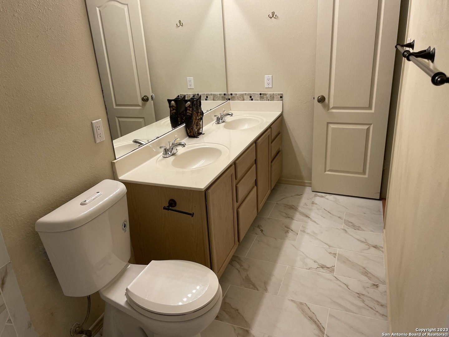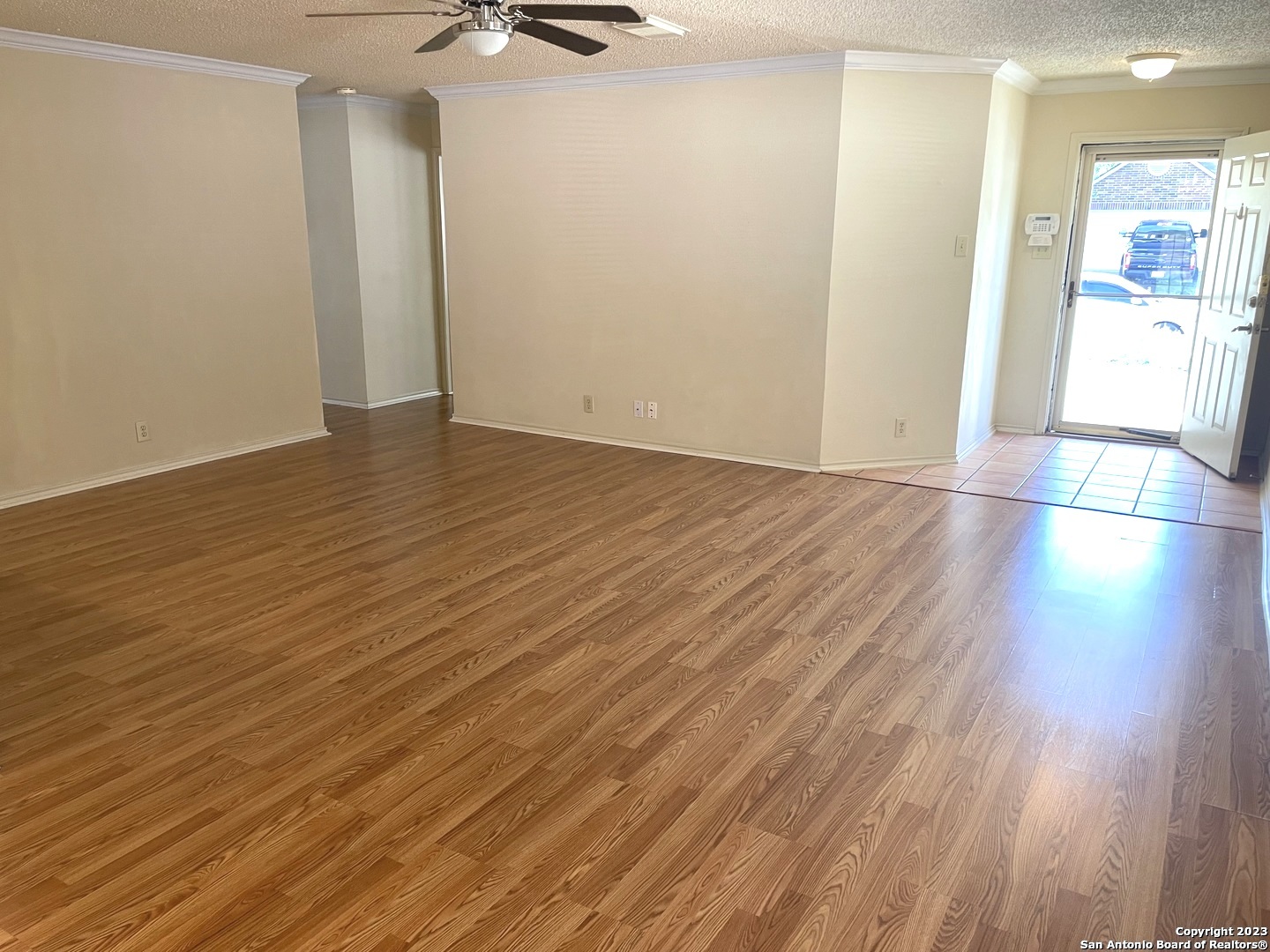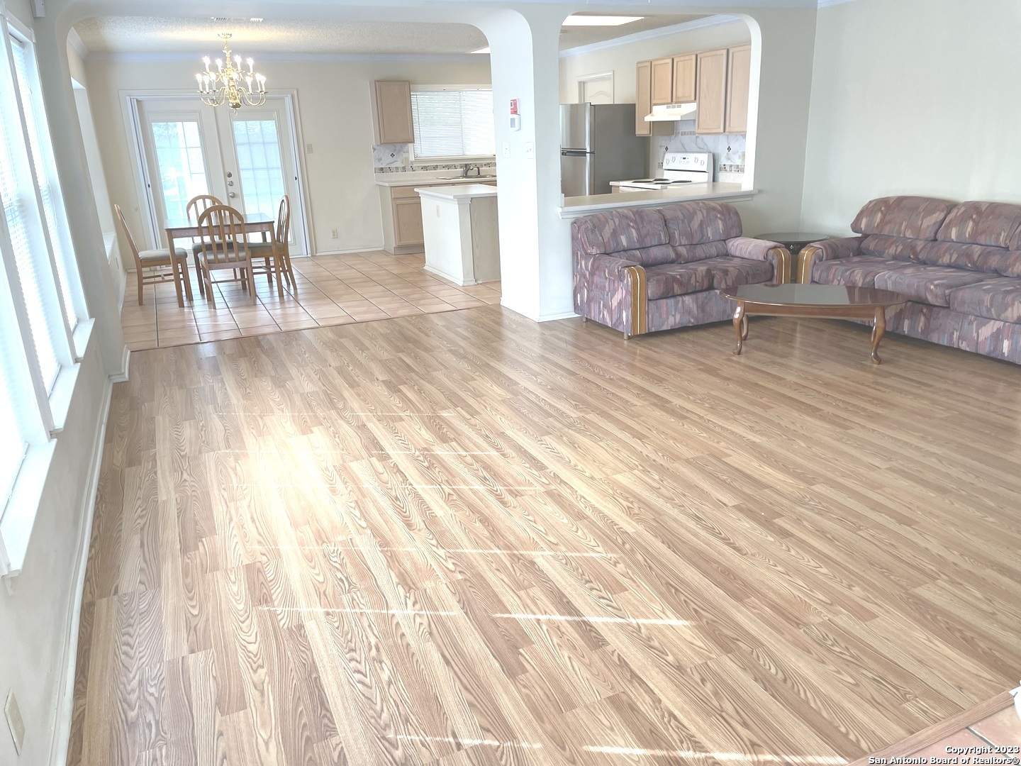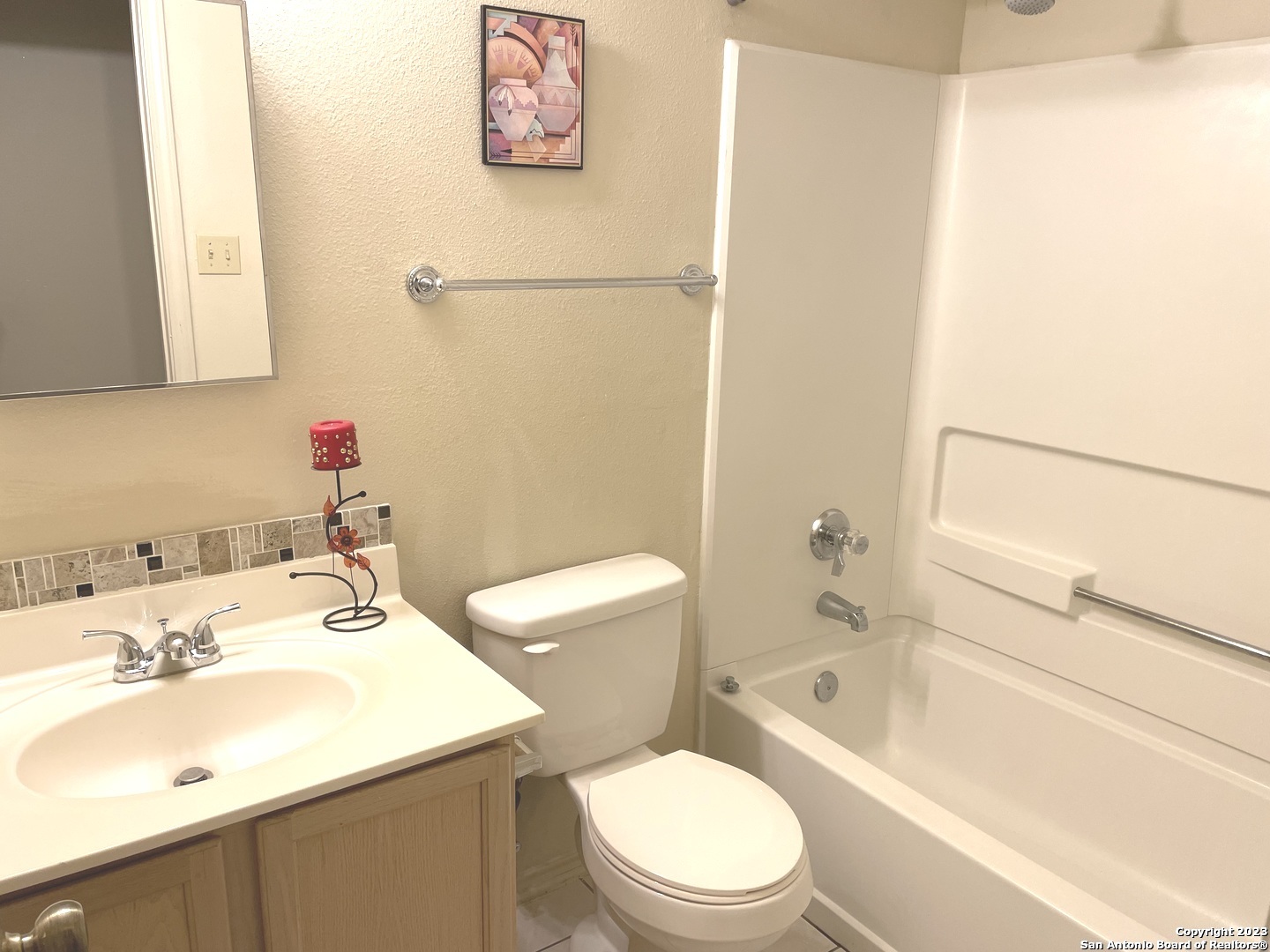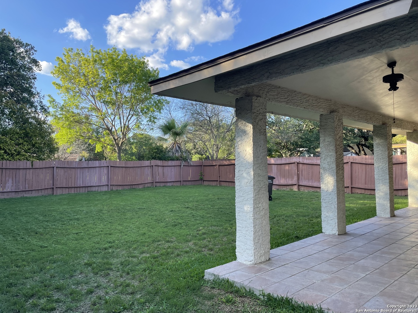 NO CARPET! newly updated bath and kitchen. Large kitchen overlooking large covered back patio with beautiful lawn. Nicely tugged away from noisy traffic half way between a previous golf course, hiking/biking trails and acreage home sites. Quick easy access to major employers, medical center, UTSA, USAA, groceries, shopping...etc. Big city amenities with lovely environment. Instead of paying membership fee to walk on treadmills, you can enjoy this beautiful, peaceful, large covered patio for the morning coffee in nature and bird songs