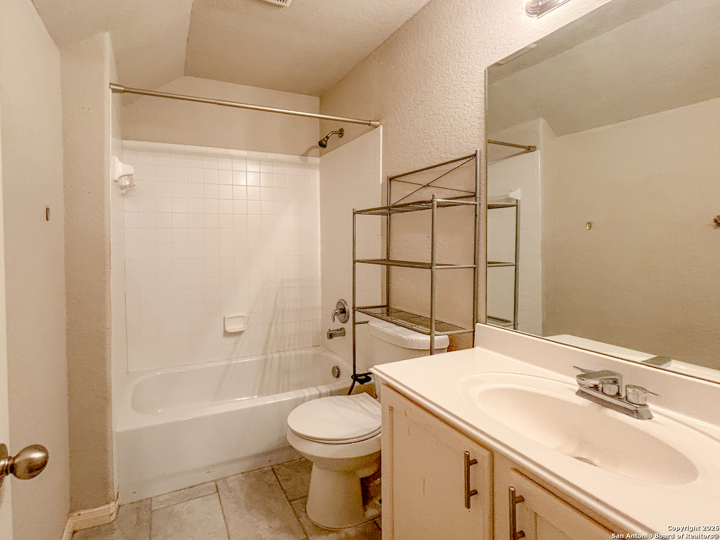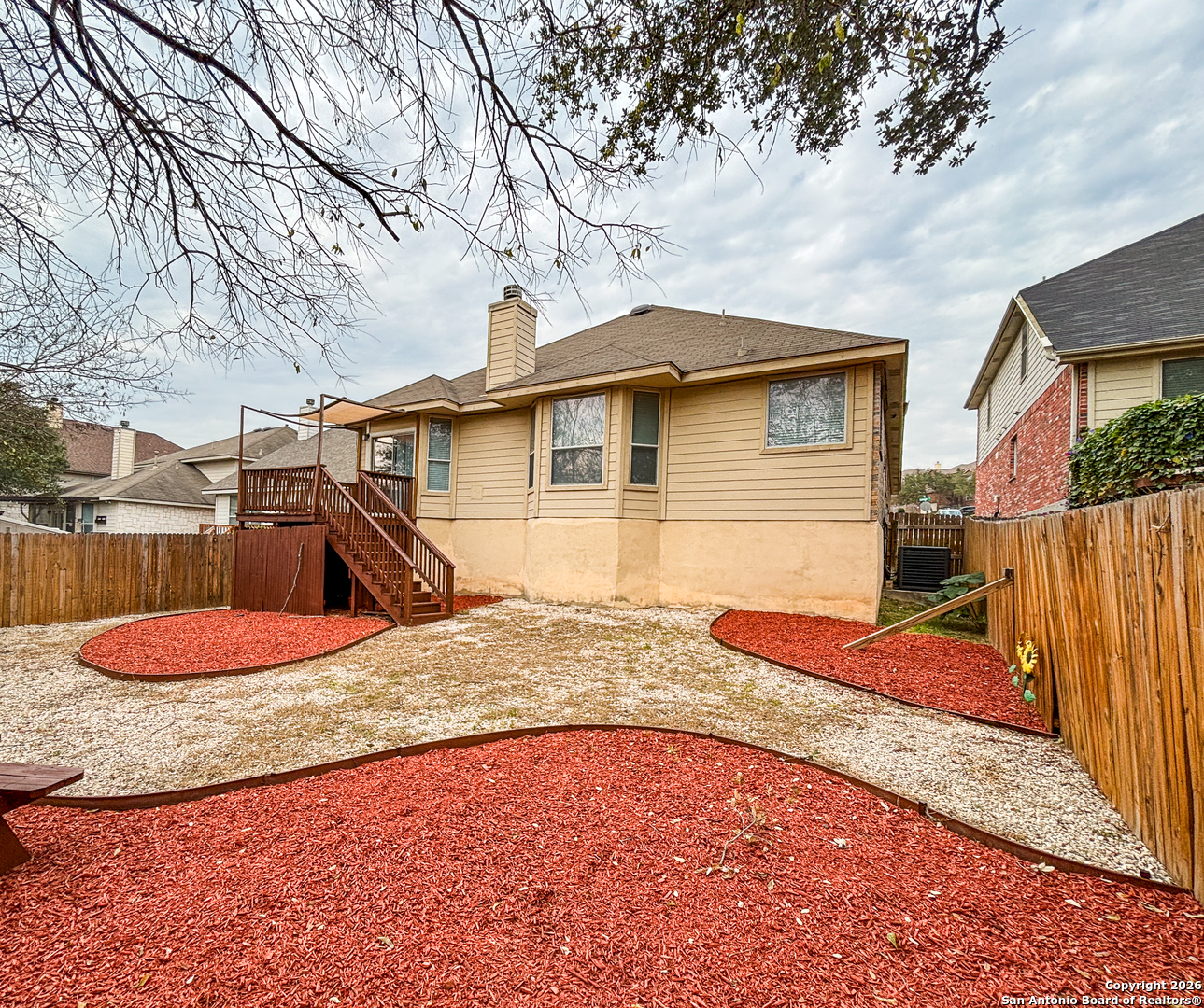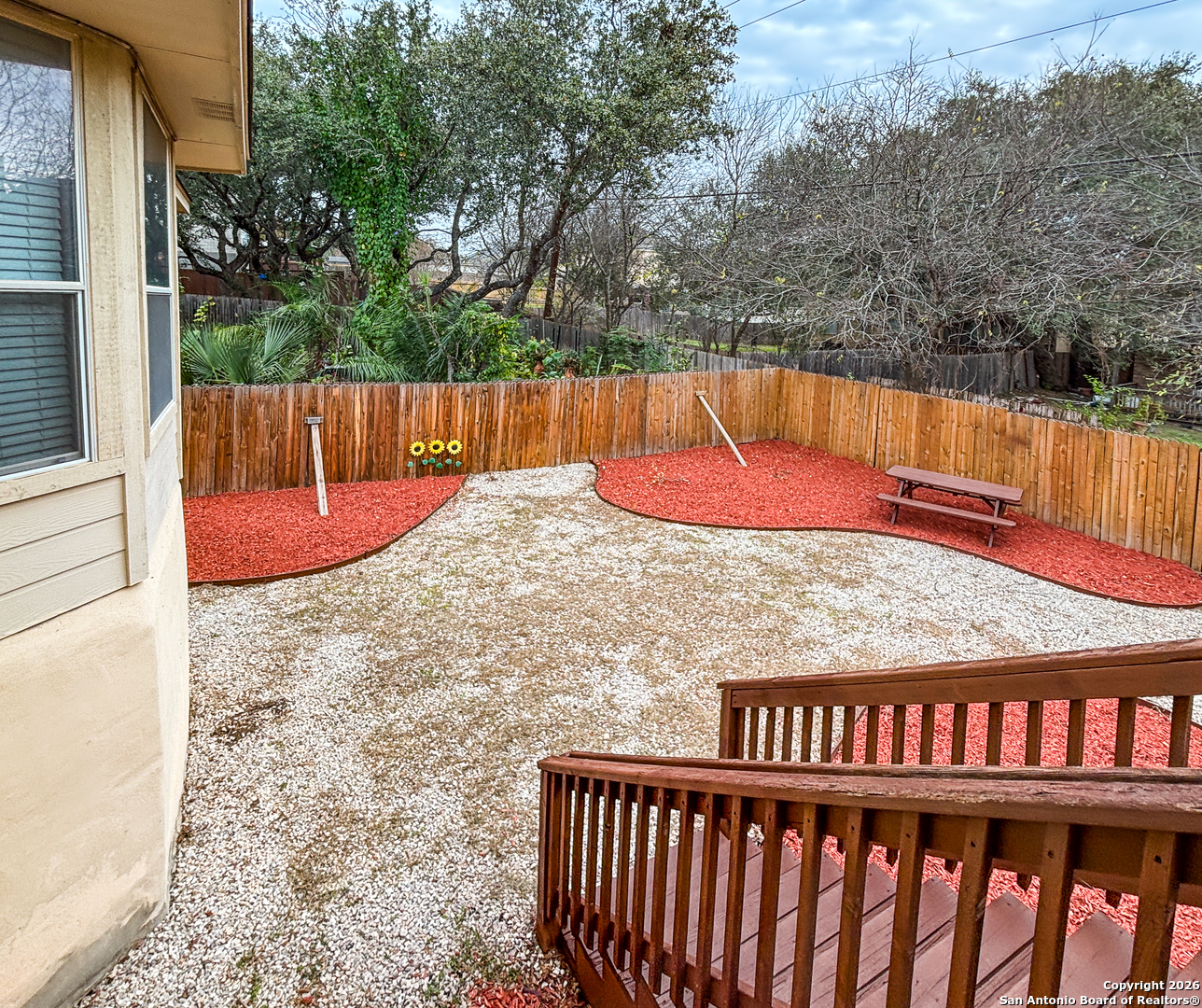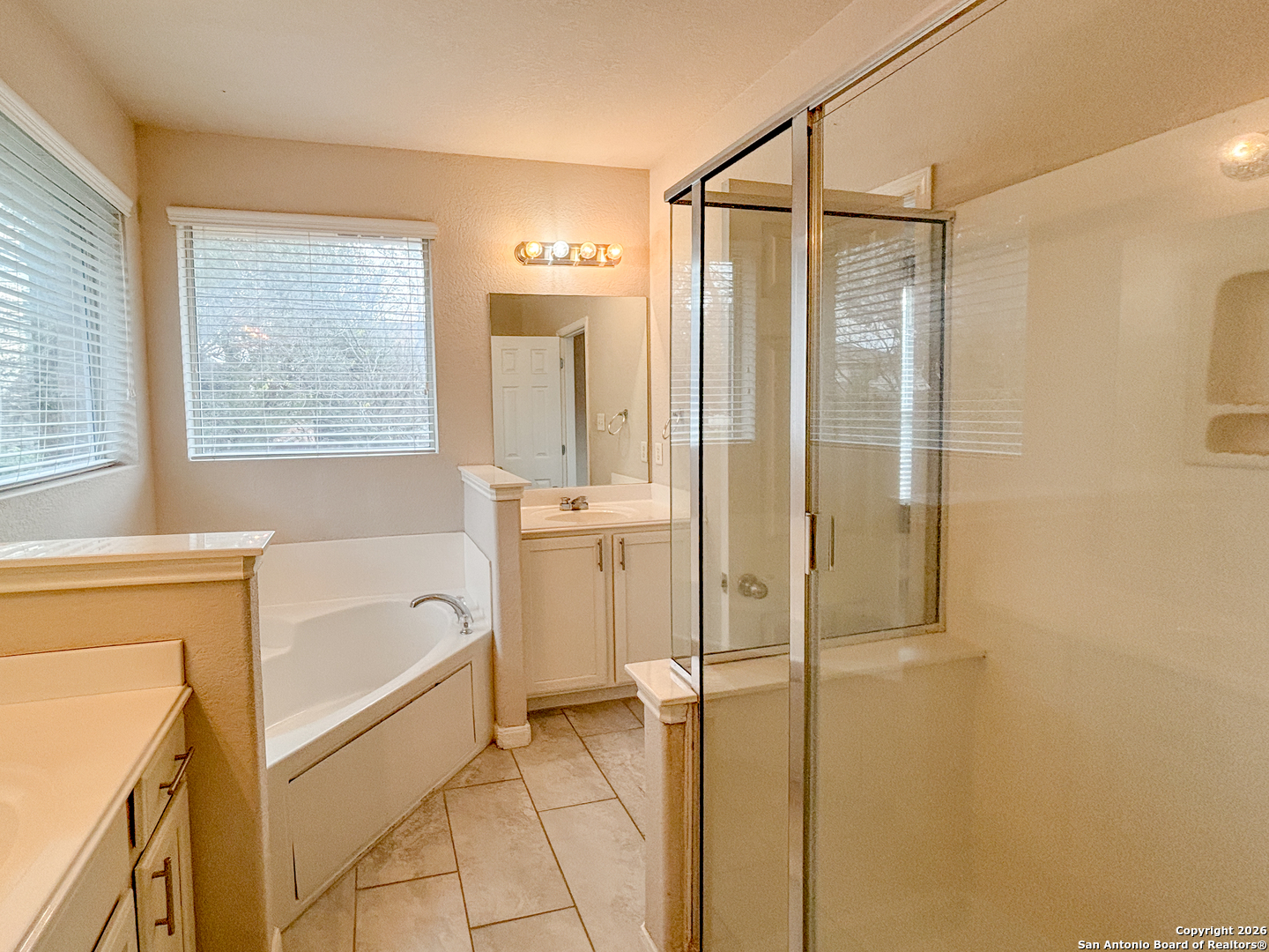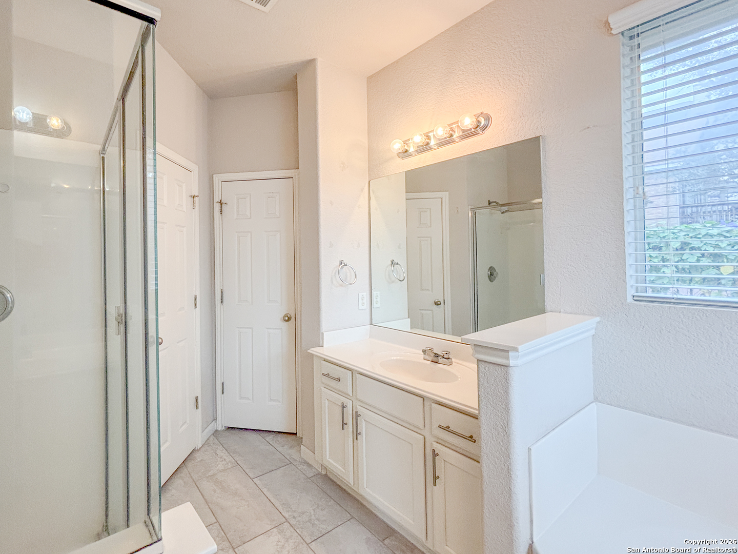 Easy living is waiting for you in this move in ready 1.5 story home that offers space, style, serenity and location location....the Stone Oak area. Only the oversize family room is upstairs and it can be converted in wherever space you need of. The open-concept layout features a formal living/dining area and kitchen equipped with stainless steel appliances, granite countertops, gas cooking. Plenty of windows fill the house with natural light. The spacious primary suite bathroom on the main floor includes separate vanities, a garden tub, walk-in shower, and 2 walk-in closets. 3 more bedrooms and 2 full bathrooms complete the lay out. Step outside to your private patio for relaxation and entertaining. Peaceful backyard. Located in the N East ISD, award-winning schools, Wilderness Oak Elementary, Lopez Middle School and Ronald Regan High School. Great shopping and Restaurants. This home is the perfect blend of function, style, and location. Schedule a showing today!!!!!
