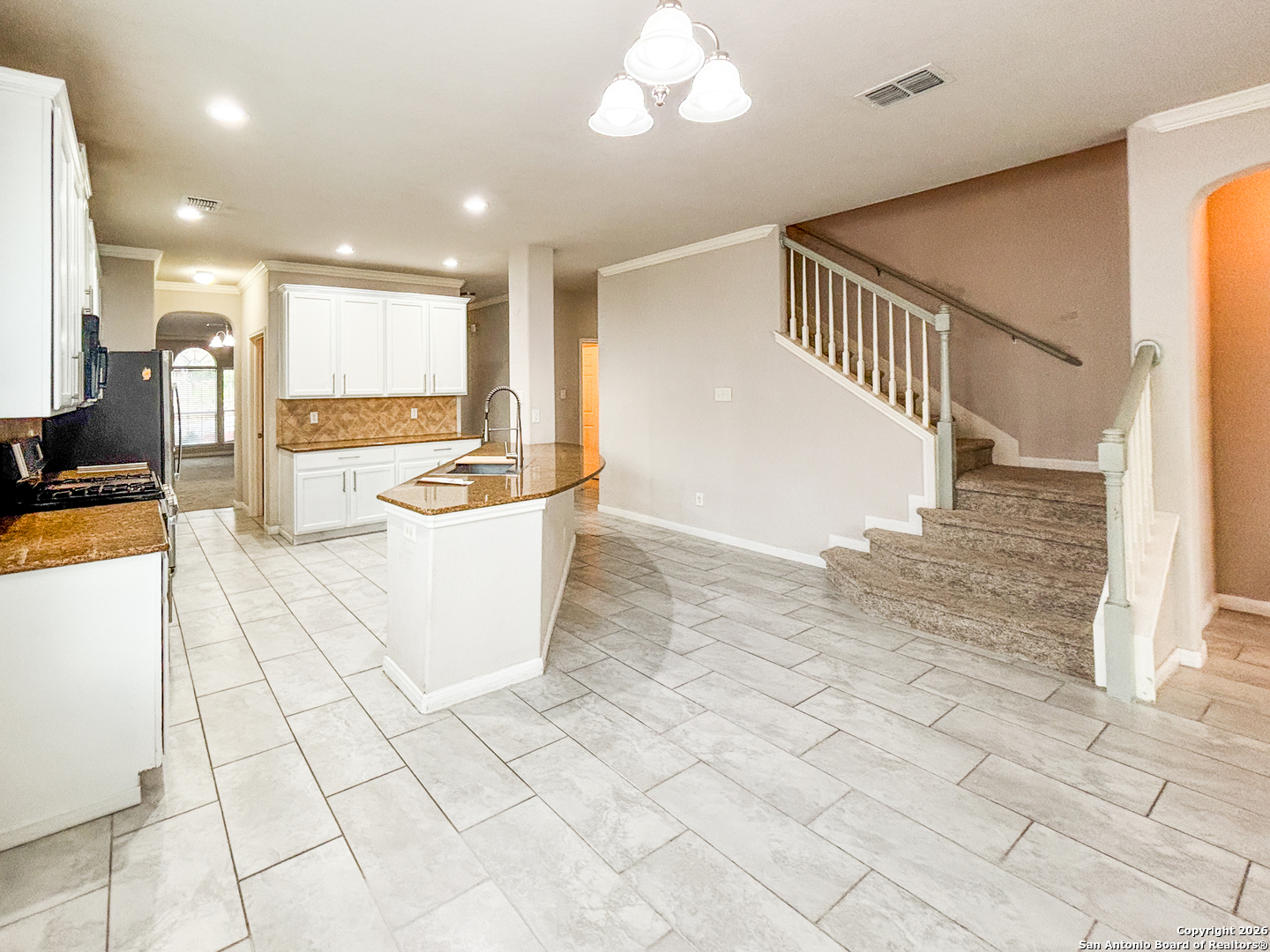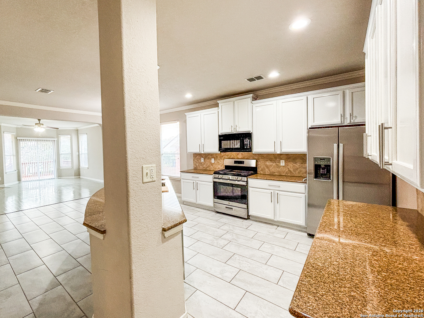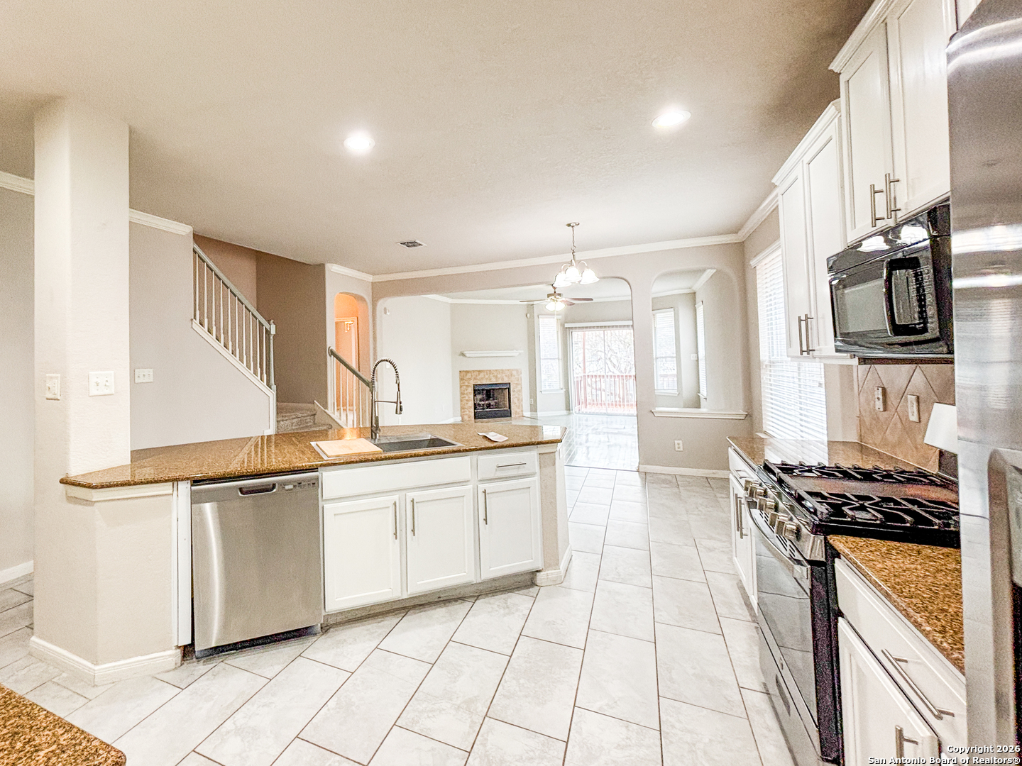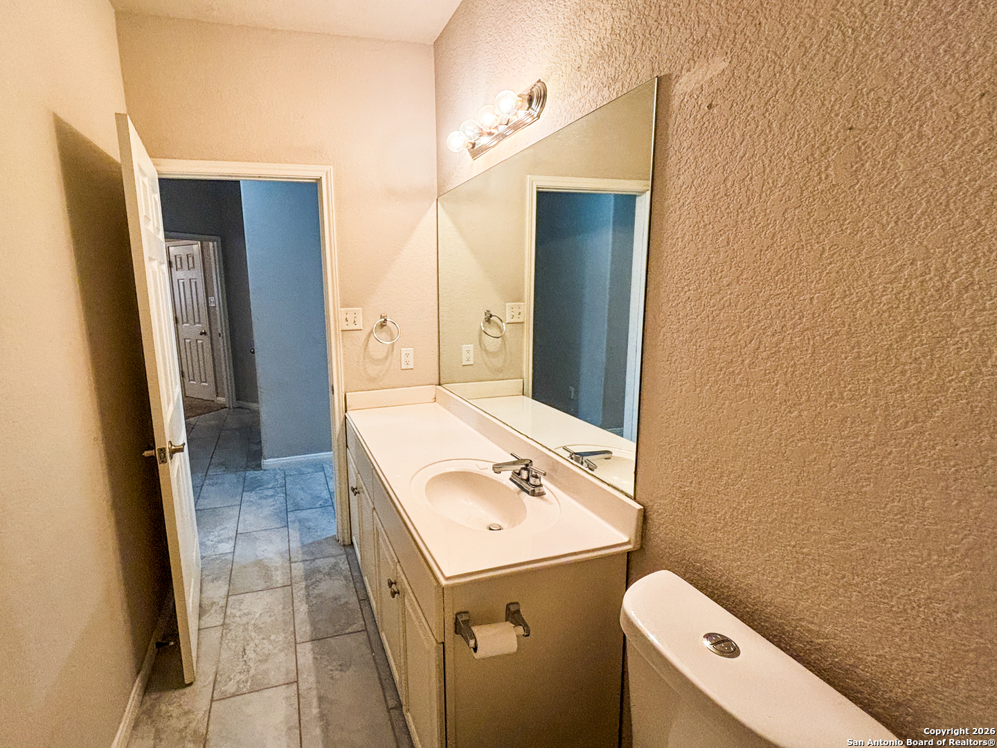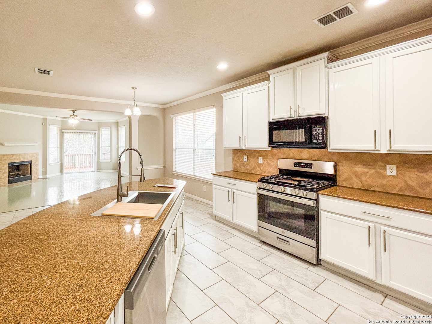 Easy living is waiting for you in this move in ready 1.5 story home that offers space, style, serenity and location location....the Stone Oak area. Only the oversize family room is upstairs and it can be converted in wherever space you need of. The open-concept layout features a formal living/dining area and kitchen equipped with stainless steel appliances, granite countertops, gas cooking. Plenty of windows fill the house with natural light. The spacious primary suite bathroom on the main floor includes separate vanities, a garden tub, walk-in shower, and 2 walk-in closets. 3 more bedrooms and 2 full bathrooms complete the lay out. Step outside to your private patio for relaxation and entertaining. Peaceful backyard. Located in the N East ISD, award-winning schools, Wilderness Oak Elementary, Lopez Middle School and Ronald Regan High School. Great shopping and Restaurants. This home is the perfect blend of function, style, and location. Schedule a showing today!!!!!