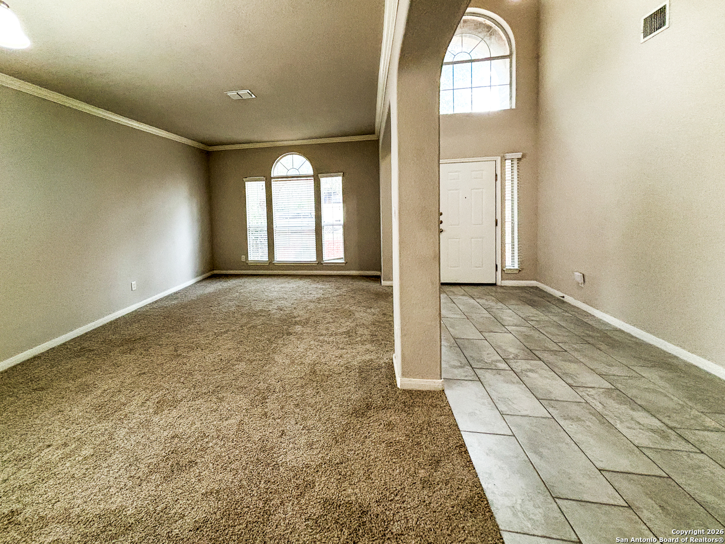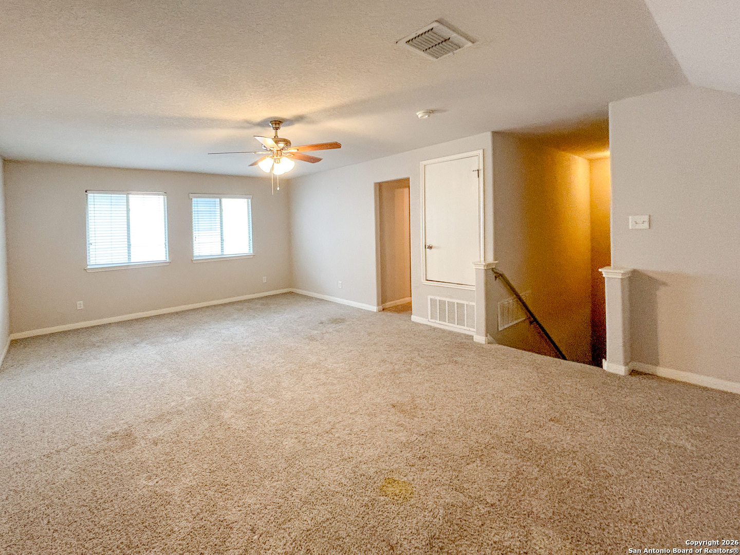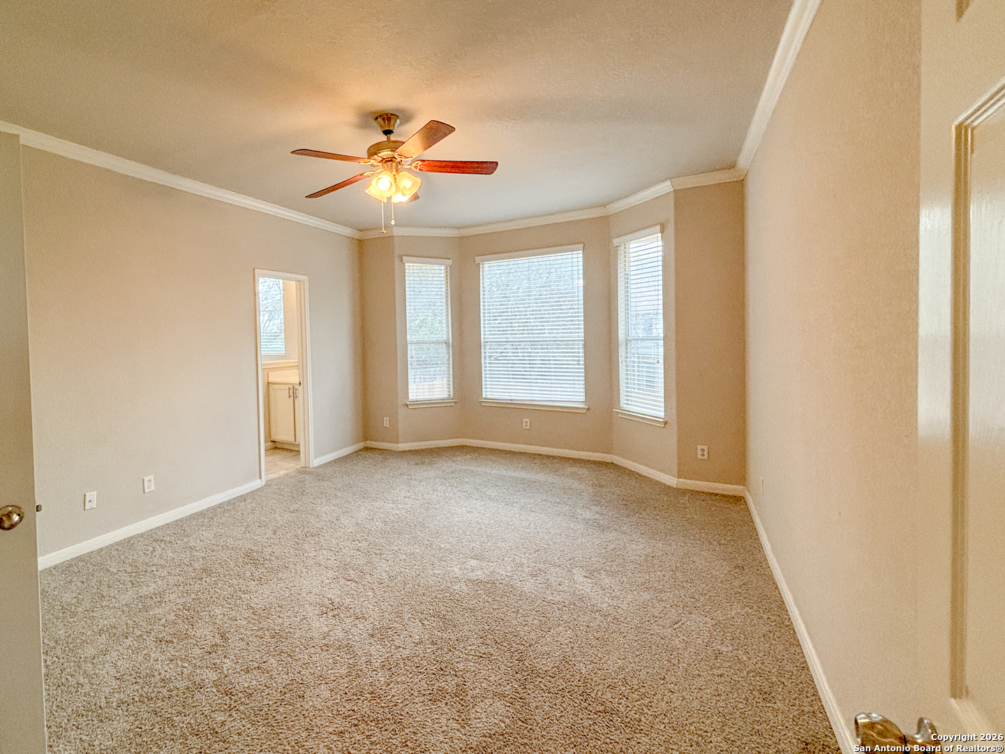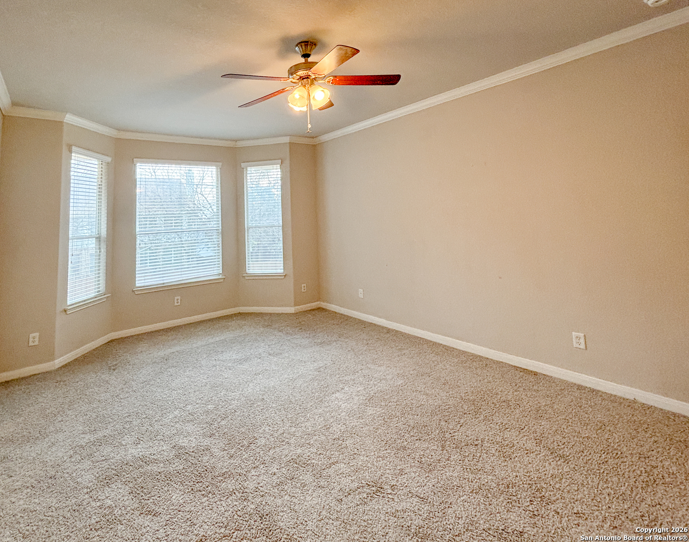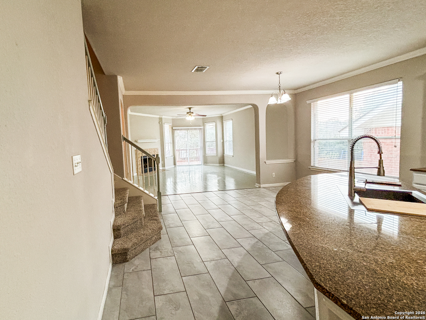 Easy living is waiting for you in this move in ready 1.5 story home that offers space, style, serenity and location location....the Stone Oak area. Only the oversize family room is upstairs and it can be converted in wherever space you need of. The open-concept layout features a formal living/dining area and kitchen equipped with stainless steel appliances, granite countertops, gas cooking. Plenty of windows fill the house with natural light. The spacious primary suite bathroom on the main floor includes separate vanities, a garden tub, walk-in shower, and 2 walk-in closets. 3 more bedrooms and 2 full bathrooms complete the lay out. Step outside to your private patio for relaxation and entertaining. Peaceful backyard. Located in the N East ISD, award-winning schools, Wilderness Oak Elementary, Lopez Middle School and Ronald Regan High School. Great shopping and Restaurants. This home is the perfect blend of function, style, and location. Schedule a showing today!!!!!
