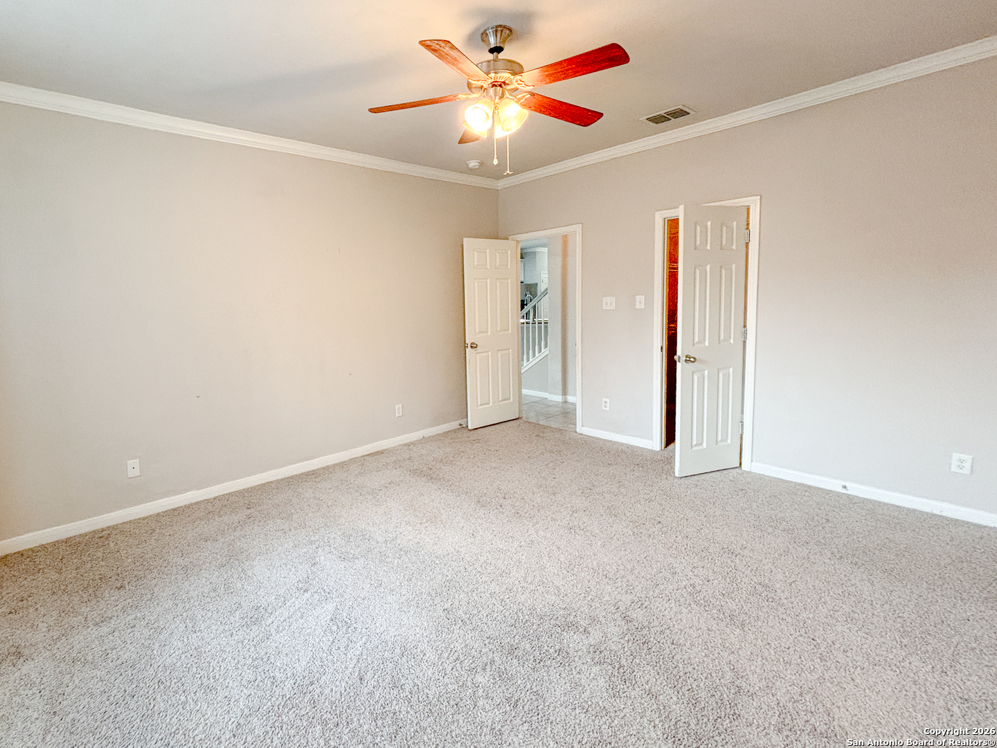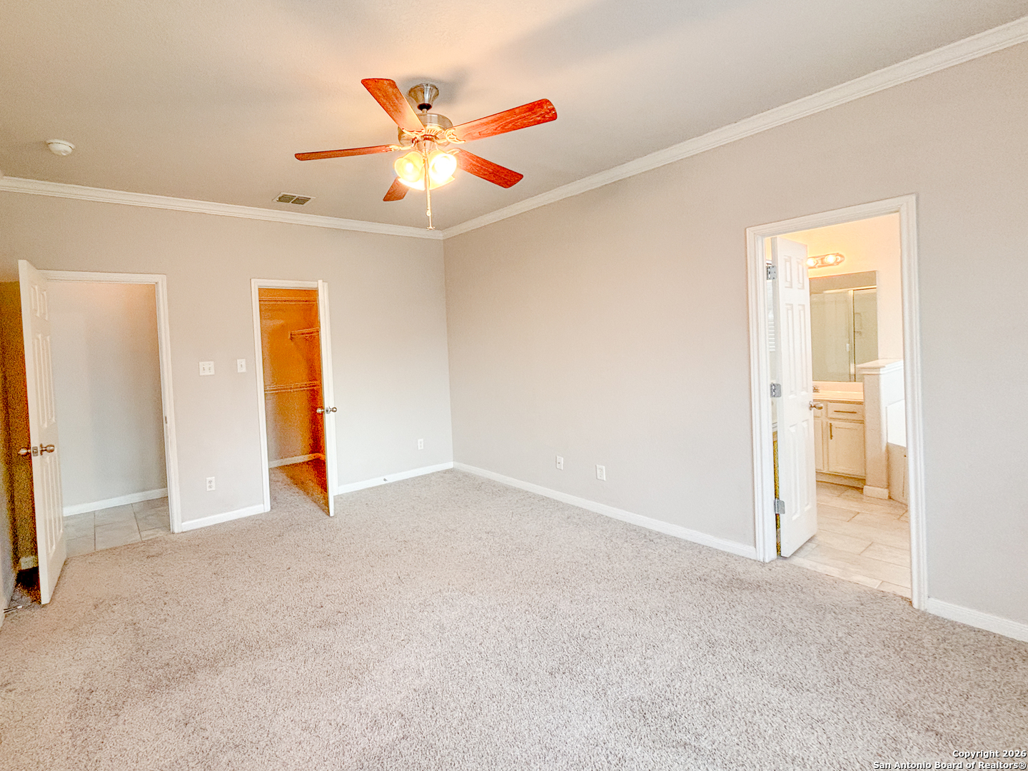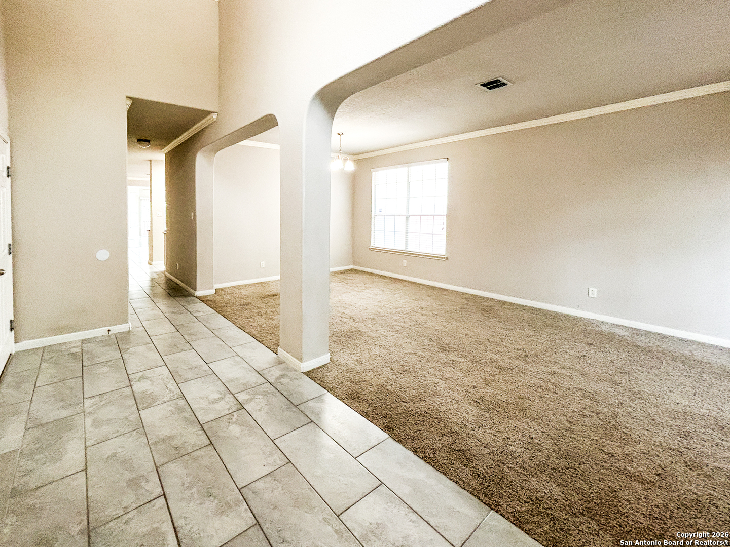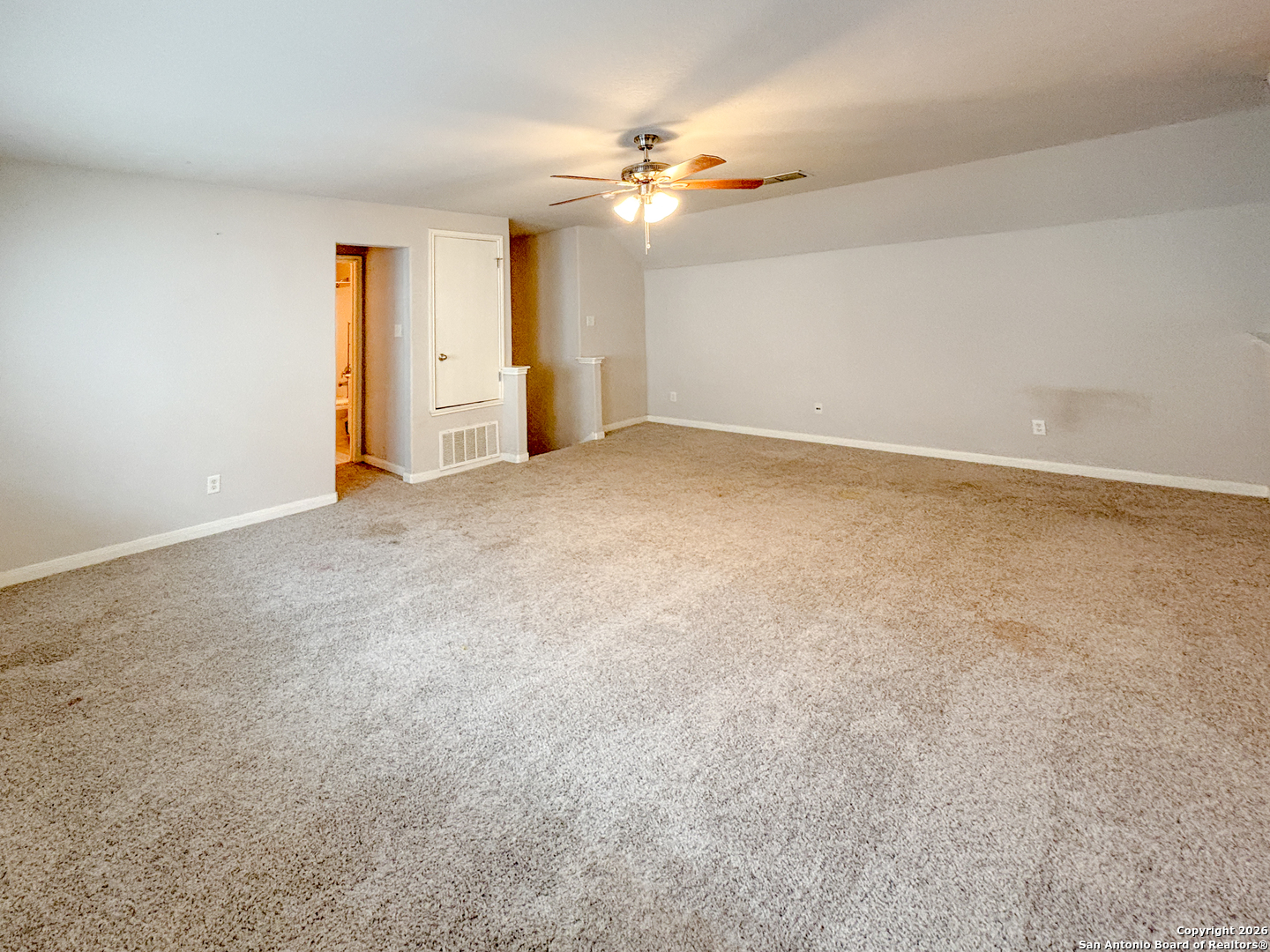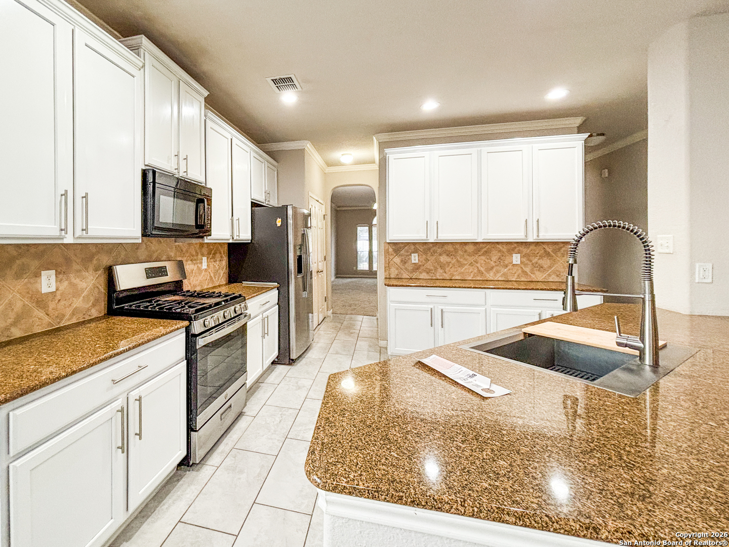 Easy living is waiting for you in this move in ready 1.5 story home that offers space, style, serenity and location location....the Stone Oak area. Only the oversize family room is upstairs and it can be converted in wherever space you need of. The open-concept layout features a formal living/dining area and kitchen equipped with stainless steel appliances, granite countertops, gas cooking. Plenty of windows fill the house with natural light. The spacious primary suite bathroom on the main floor includes separate vanities, a garden tub, walk-in shower, and 2 walk-in closets. 3 more bedrooms and 2 full bathrooms complete the lay out. Step outside to your private patio for relaxation and entertaining. Peaceful backyard. Located in the N East ISD, award-winning schools, Wilderness Oak Elementary, Lopez Middle School and Ronald Regan High School. Great shopping and Restaurants. This home is the perfect blend of function, style, and location. Schedule a showing today!!!!!