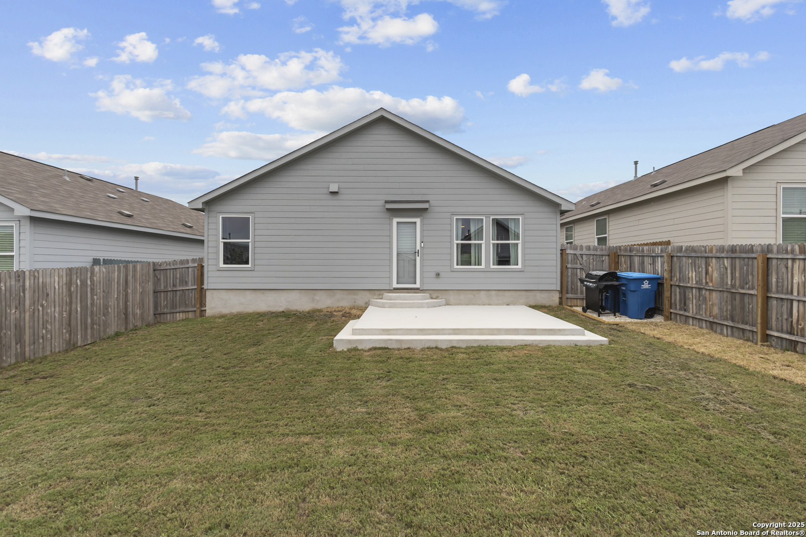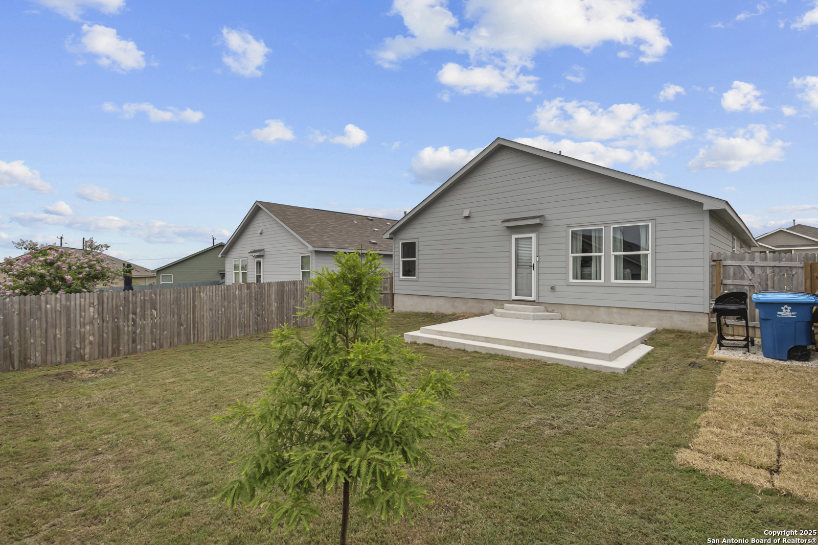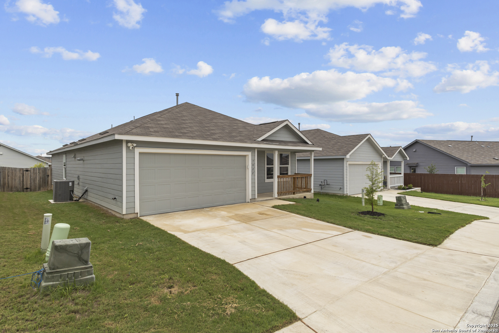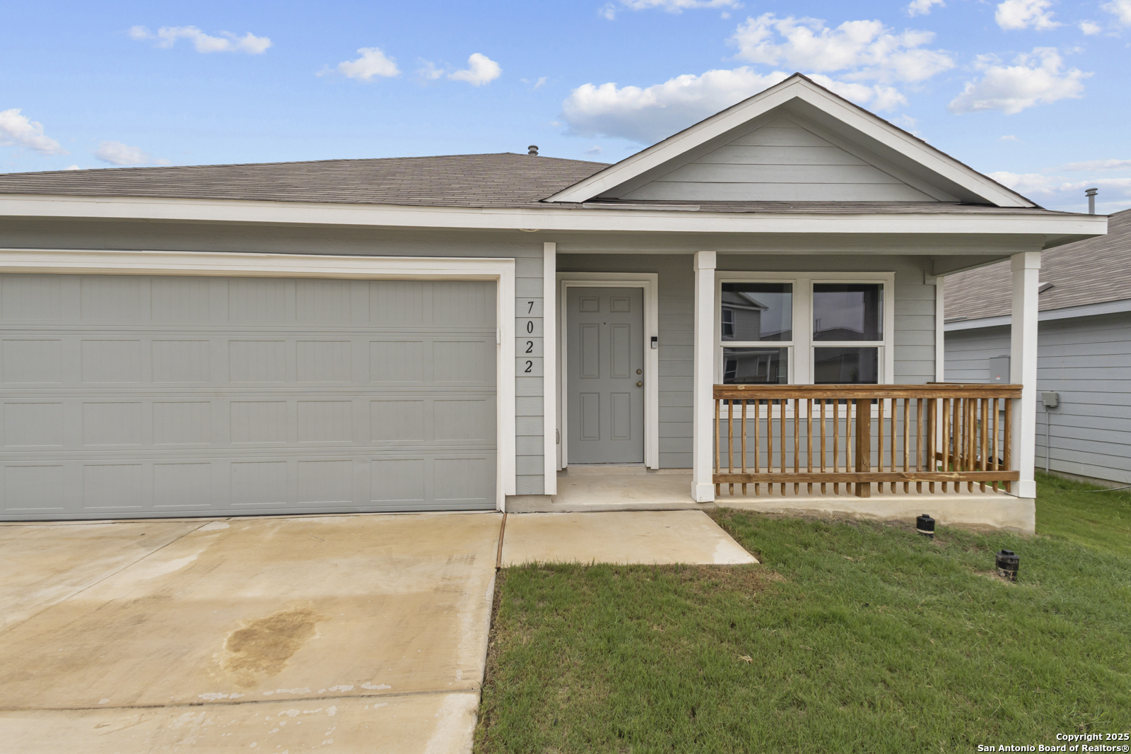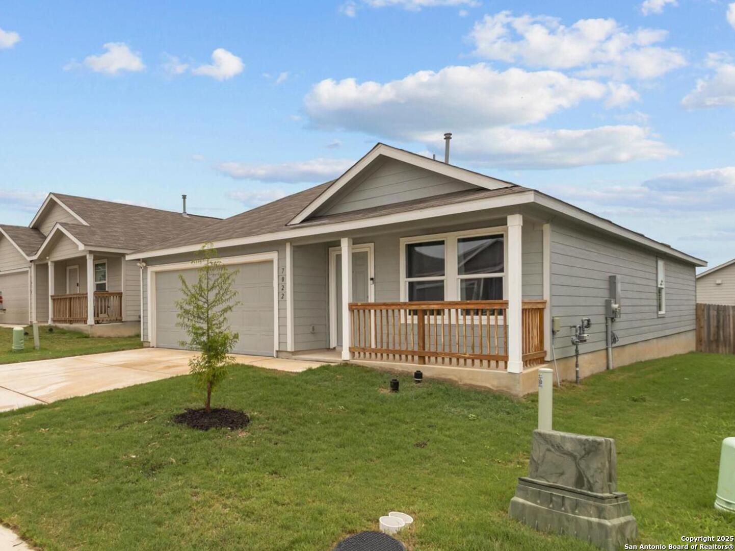 Welcome to 7022 Serf Place. A beautifully designed 3-bedroom, 2-bathroom single-story home located in the vibrant Silos community on San Antonio's rapidly growing west side. Built by Lennar, this 1,498 sq ft residence combines modern comfort with thoughtful layout, perfectly suited for both everyday living and entertaining. As you step onto the covered front porch, you're greeted by a well-balanced floor plan that places two spacious bedrooms near the entrance, ideal for guests, family, or a home office setup. The heart of the home features a bright, open-concept living room and kitchen, where stainless steel appliances, abundant cabinetry, and generous counter space offer the perfect setting for gatherings or quiet dinners at home. Flooded with natural light, the living area flows effortlessly to the private owner's suite at the rear, offering a peaceful retreat. The master bedroom includes a spa-inspired en-suite bathroom with a single vanity, separate shower and soaking tub, and ample closet space. Step outside to a backyard with a concrete patio slab, ideal for outdoor dining, grilling, or relaxing under the Texas sky. Located just minutes from Lackland Air Force Base, this property is ideal for military professionals and commuters. Residents enjoy easy access to major highways, retail centers, and local parks, all while being a short drive to downtown San Antonio and its renowned cultural landmarks.