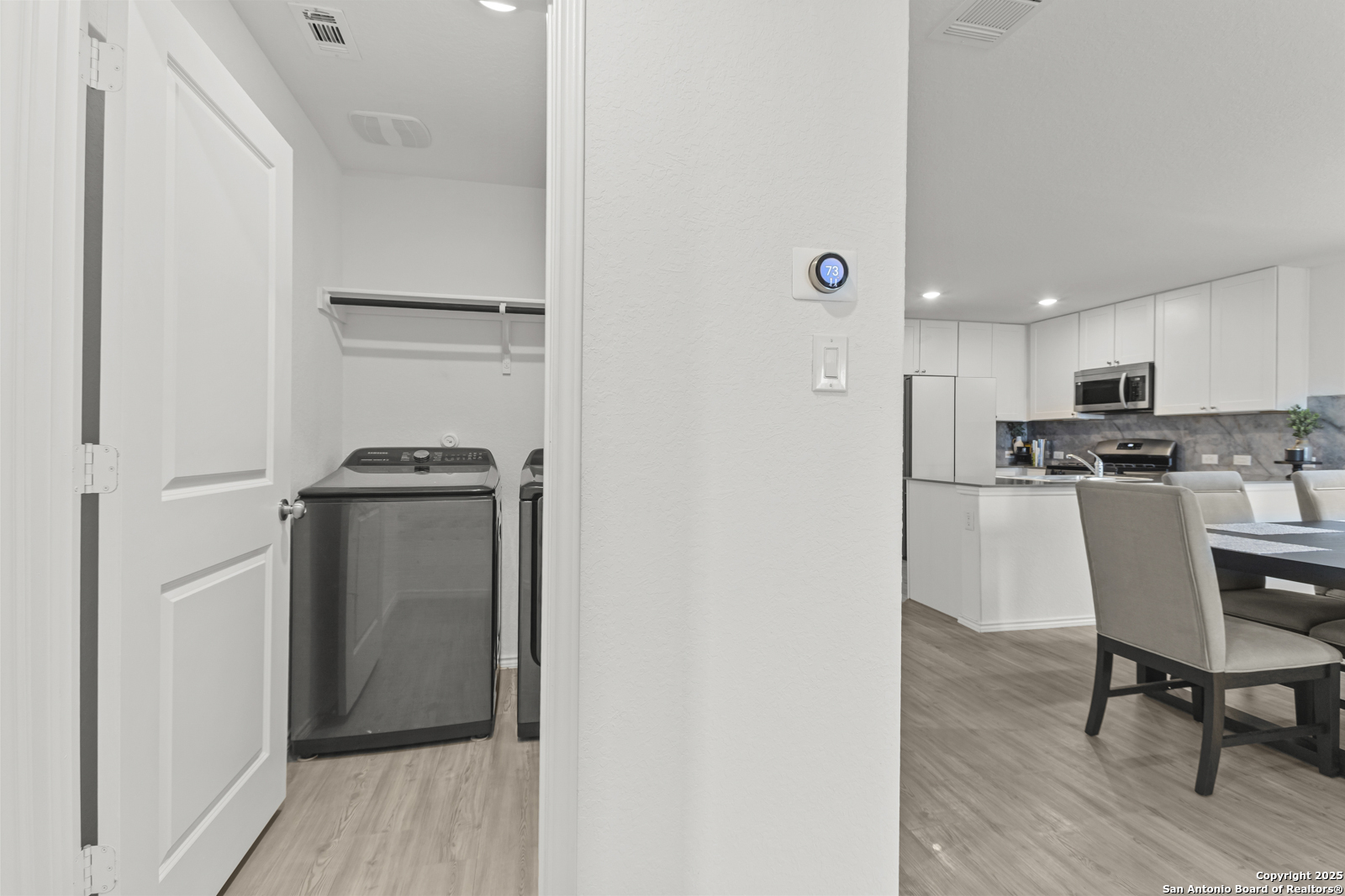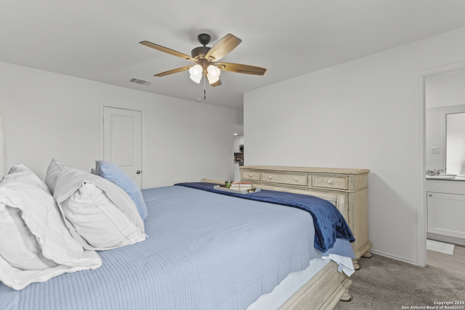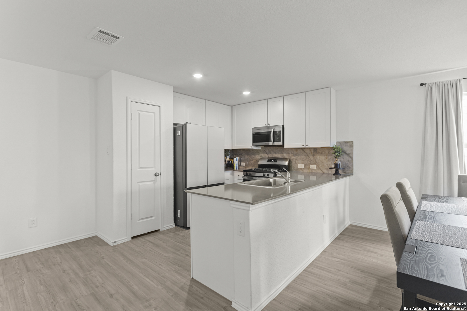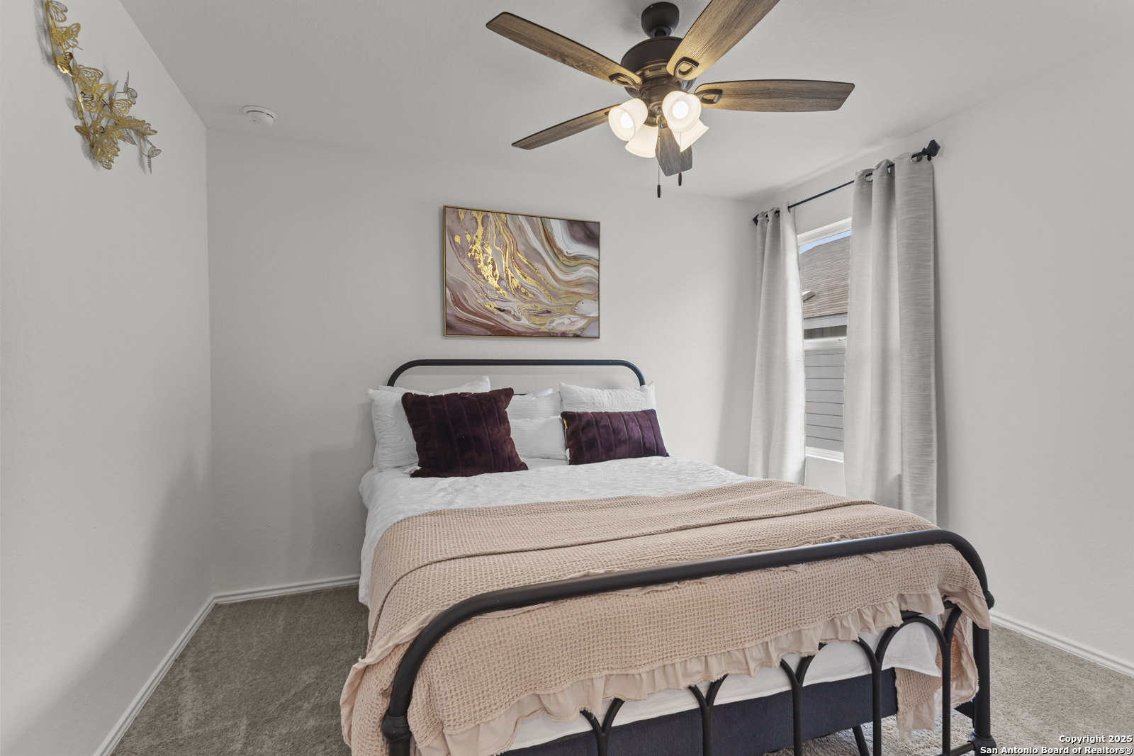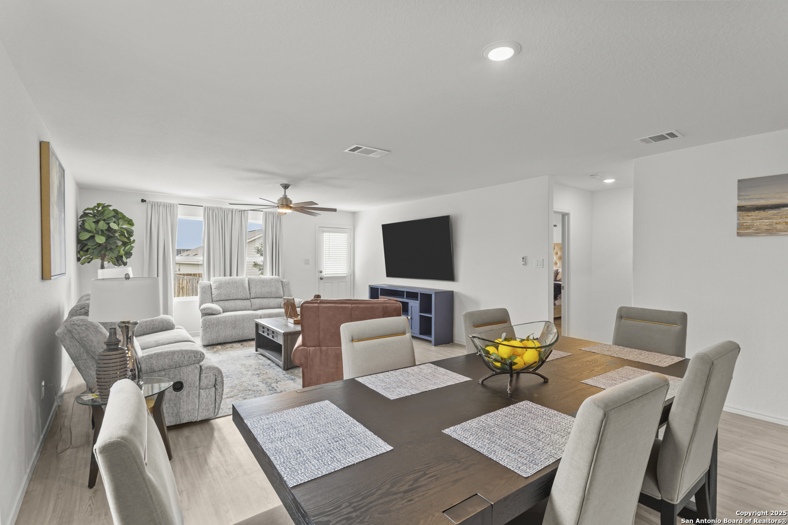 Welcome to 7022 Serf Place. A beautifully designed 3-bedroom, 2-bathroom single-story home located in the vibrant Silos community on San Antonio's rapidly growing west side. Built by Lennar, this 1,498 sq ft residence combines modern comfort with thoughtful layout, perfectly suited for both everyday living and entertaining. As you step onto the covered front porch, you're greeted by a well-balanced floor plan that places two spacious bedrooms near the entrance, ideal for guests, family, or a home office setup. The heart of the home features a bright, open-concept living room and kitchen, where stainless steel appliances, abundant cabinetry, and generous counter space offer the perfect setting for gatherings or quiet dinners at home. Flooded with natural light, the living area flows effortlessly to the private owner's suite at the rear, offering a peaceful retreat. The master bedroom includes a spa-inspired en-suite bathroom with a single vanity, separate shower and soaking tub, and ample closet space. Step outside to a backyard with a concrete patio slab, ideal for outdoor dining, grilling, or relaxing under the Texas sky. Located just minutes from Lackland Air Force Base, this property is ideal for military professionals and commuters. Residents enjoy easy access to major highways, retail centers, and local parks, all while being a short drive to downtown San Antonio and its renowned cultural landmarks.