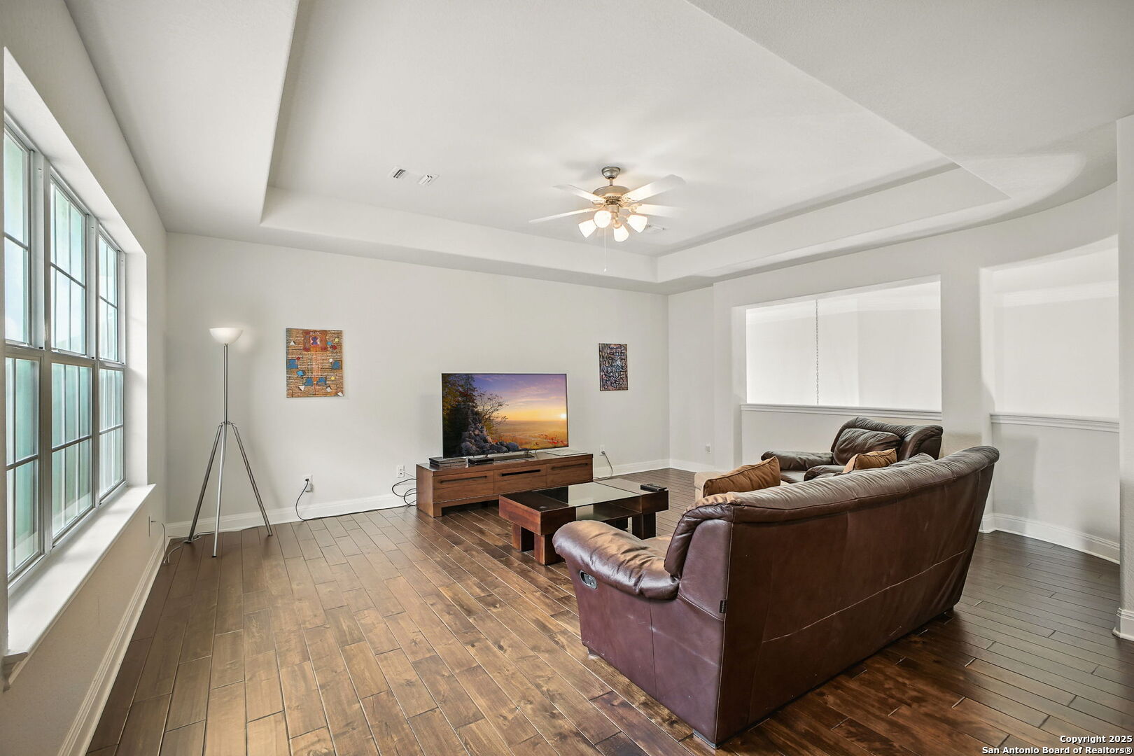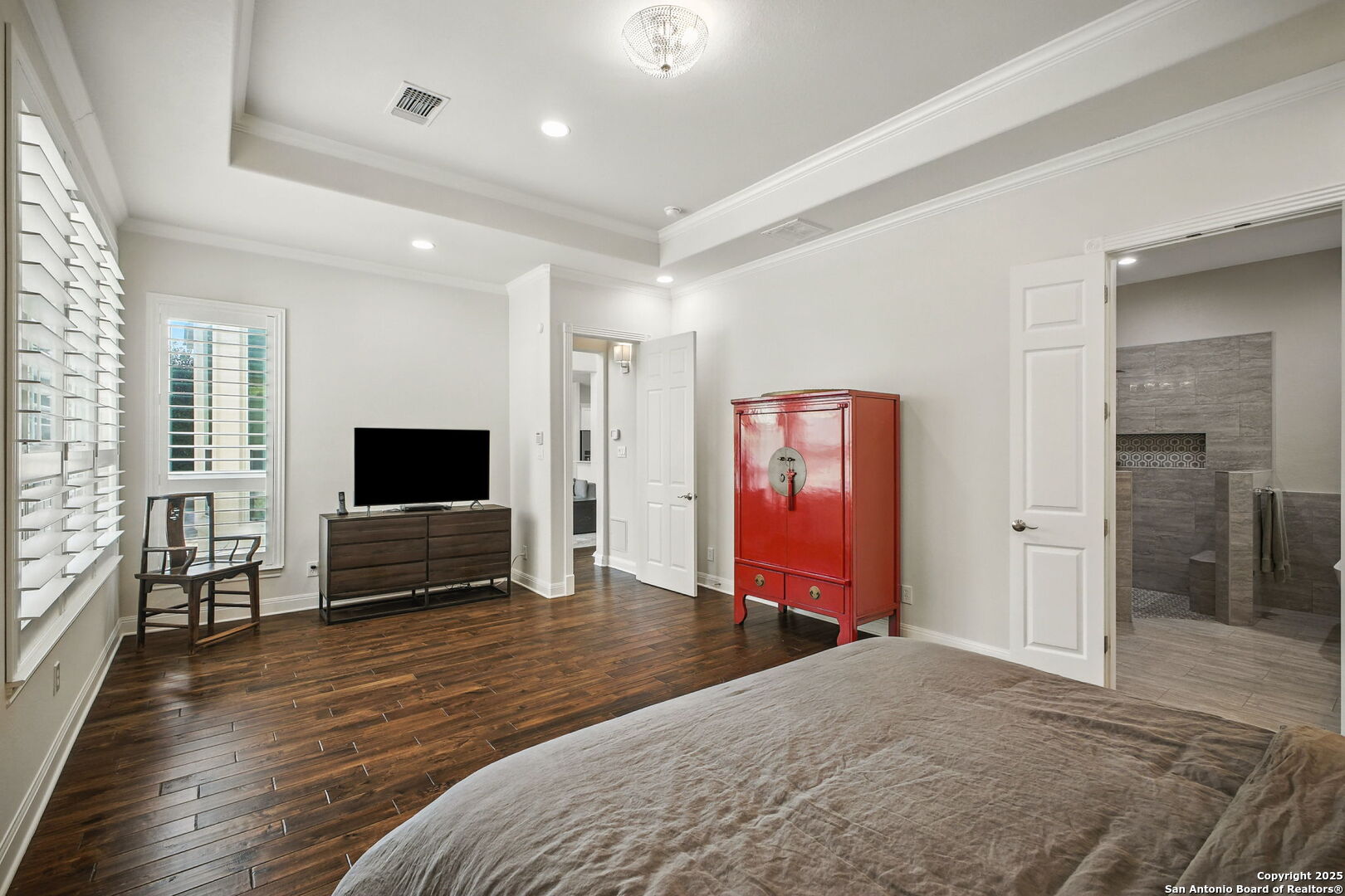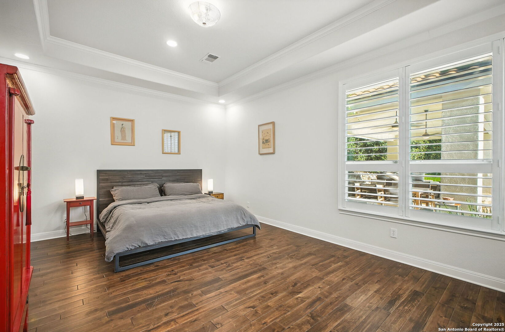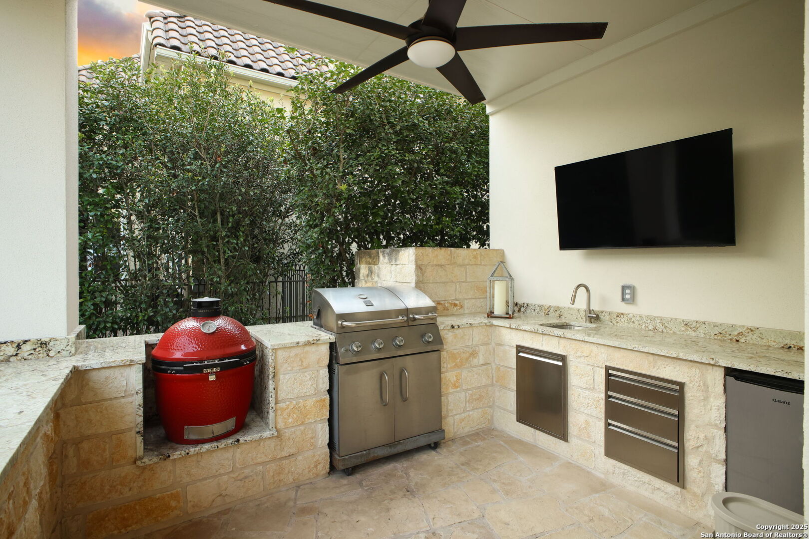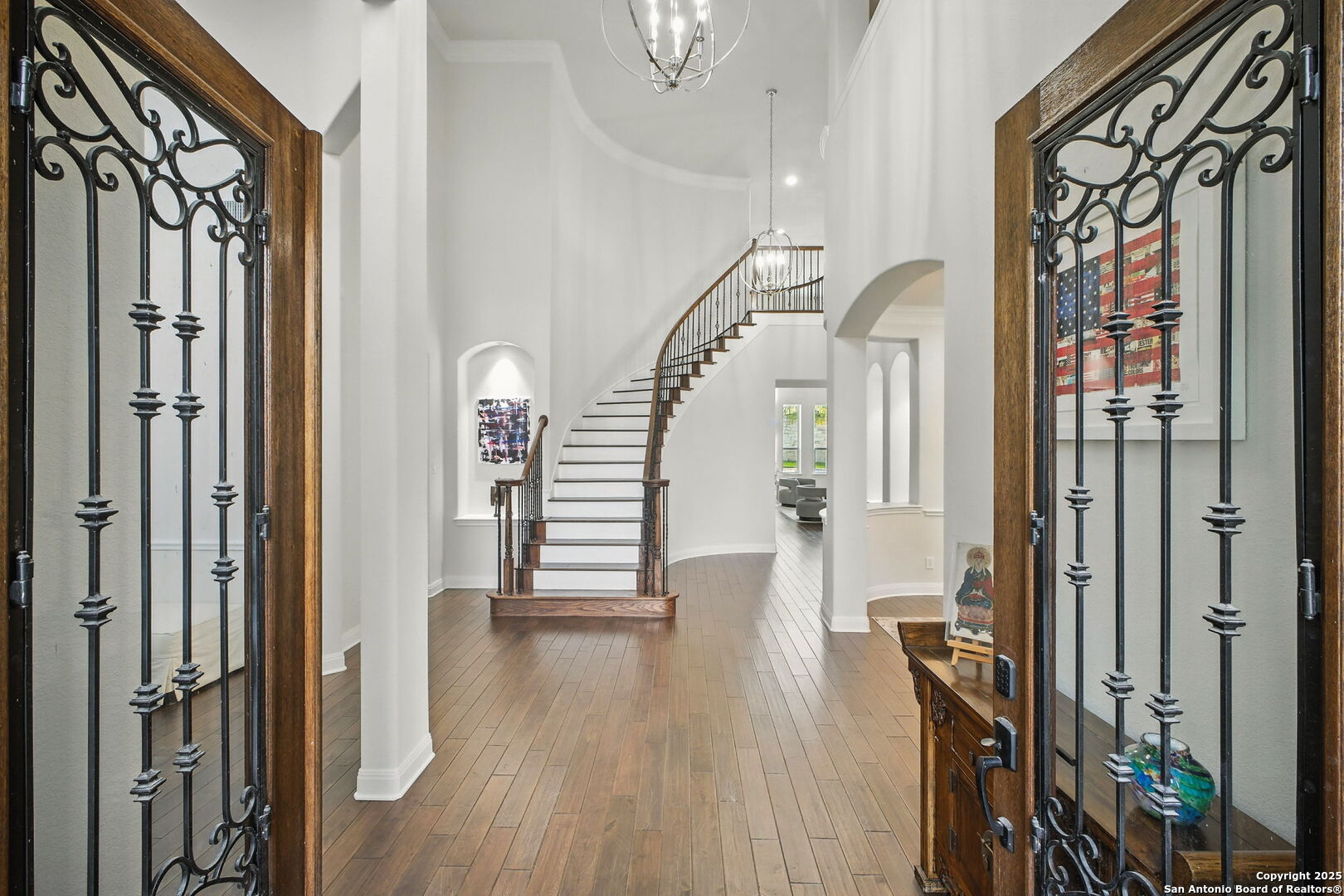 Step into this exquisite Toll Brothers home in the prestigious, guard-gated Reserve at Dominion, where luxury meets everyday comfort. Sunlight streams through floor-to-ceiling windows, illuminating an open floor plan designed for both grand entertaining and quiet family moments. The chef's kitchen, adorned with granite counters, custom cabinetry, and double ovens, invites culinary creativity, while the spacious master retreat offers a private sitting area, serene pool views, and a spa-inspired bathroom with a walk-in shower, separate tub, and dual vanities. On the main level, a secondary bedroom sits just steps from a full bath, offering convenience and privacy. Upstairs, three additional bedrooms, three bathrooms, and a game room provide space for family and guests. Every detail has been thoughtfully updated, from plantation shutters to two new furnaces, water heater, water softener, and pool equipment, ensuring effortless living. Outside, a full outdoor kitchen, flagstone patio, fire pit, covered entertaining area, and sparkling Keith Zars pool with spa create a resort-like retreat. Beyond your backyard, the Dominion community offers world-class amenities, including a championship golf course, clubhouse, swimming pool, tennis courts, and playground, an unmatched lifestyle in one of San Antonio's most coveted neighborhoods. Schedule your private tour today and experience the Dominion lifestyle!