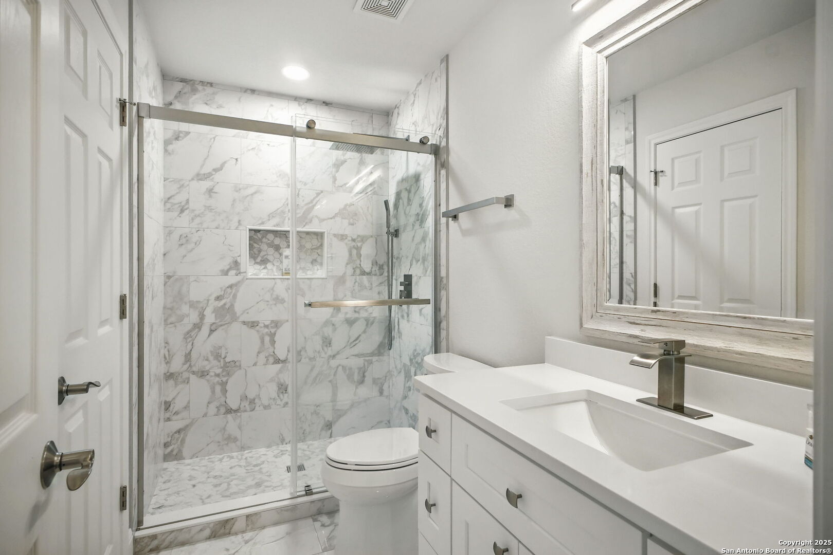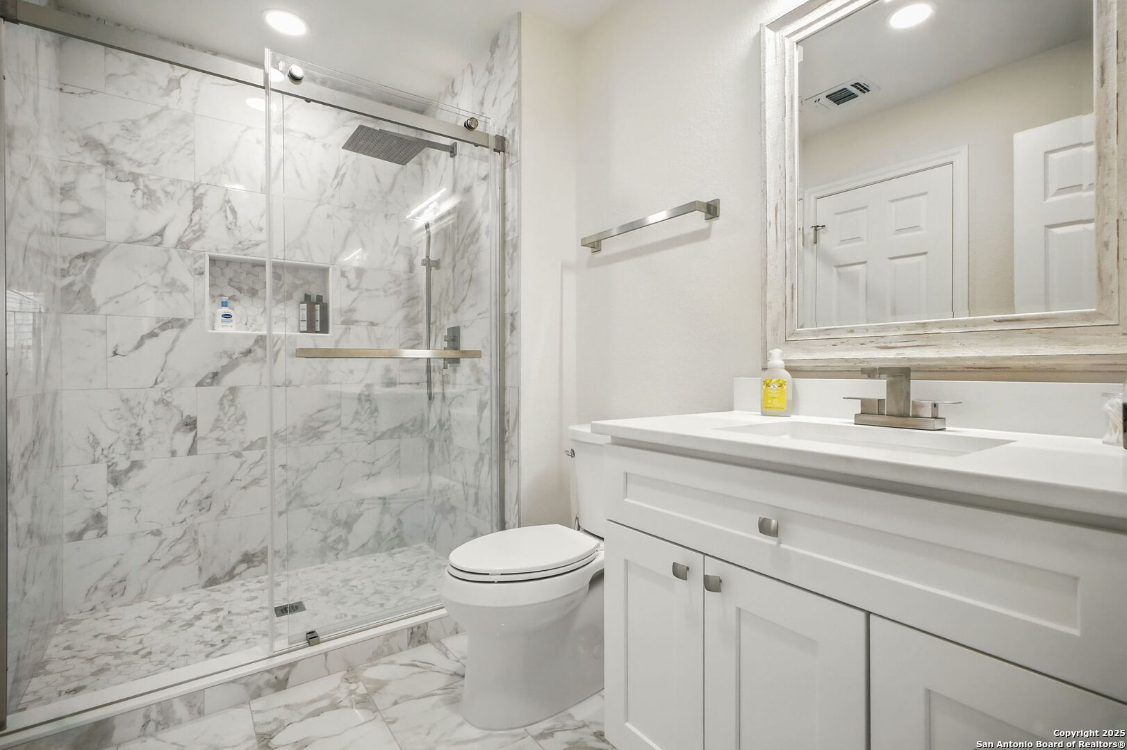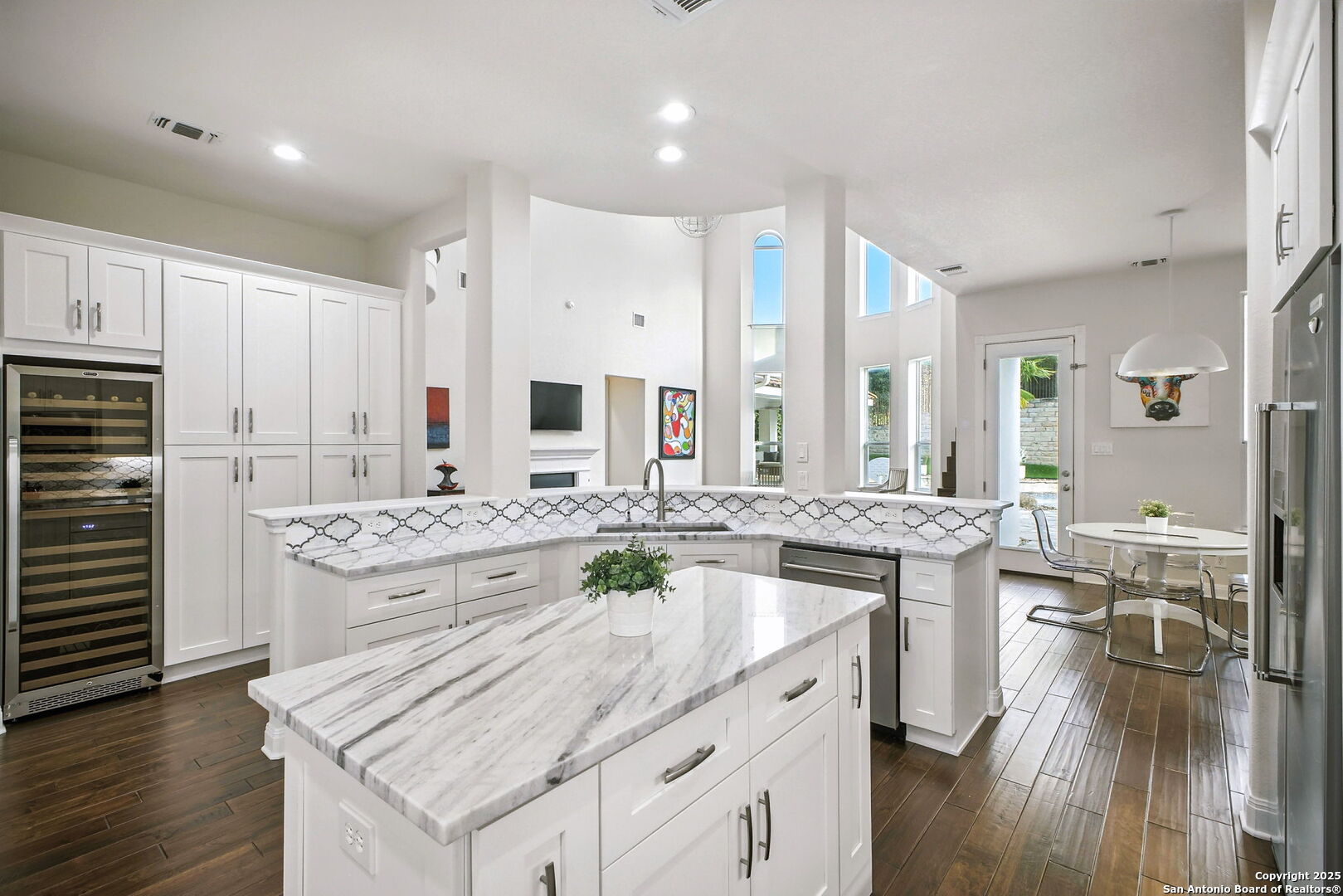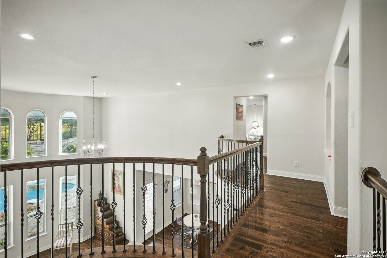 Step into this exquisite Toll Brothers home in the prestigious, guard-gated Reserve at Dominion, where luxury meets everyday comfort. Sunlight streams through floor-to-ceiling windows, illuminating an open floor plan designed for both grand entertaining and quiet family moments. The chef's kitchen, adorned with granite counters, custom cabinetry, and double ovens, invites culinary creativity, while the spacious master retreat offers a private sitting area, serene pool views, and a spa-inspired bathroom with a walk-in shower, separate tub, and dual vanities. On the main level, a secondary bedroom sits just steps from a full bath, offering convenience and privacy. Upstairs, three additional bedrooms, three bathrooms, and a game room provide space for family and guests. Every detail has been thoughtfully updated, from plantation shutters to two new furnaces, water heater, water softener, and pool equipment, ensuring effortless living. Outside, a full outdoor kitchen, flagstone patio, fire pit, covered entertaining area, and sparkling Keith Zars pool with spa create a resort-like retreat. Beyond your backyard, the Dominion community offers world-class amenities, including a championship golf course, clubhouse, swimming pool, tennis courts, and playground, an unmatched lifestyle in one of San Antonio's most coveted neighborhoods. Schedule your private tour today and experience the Dominion lifestyle!