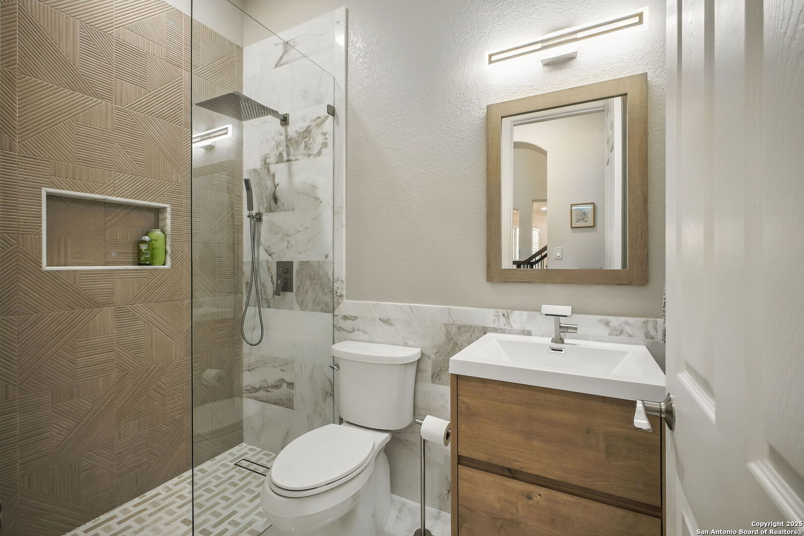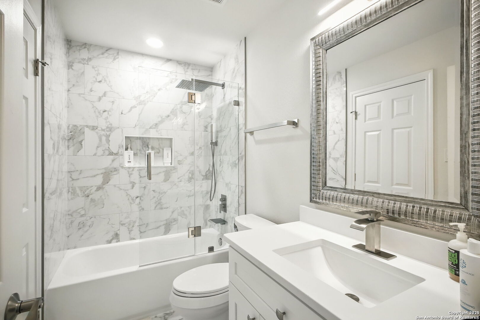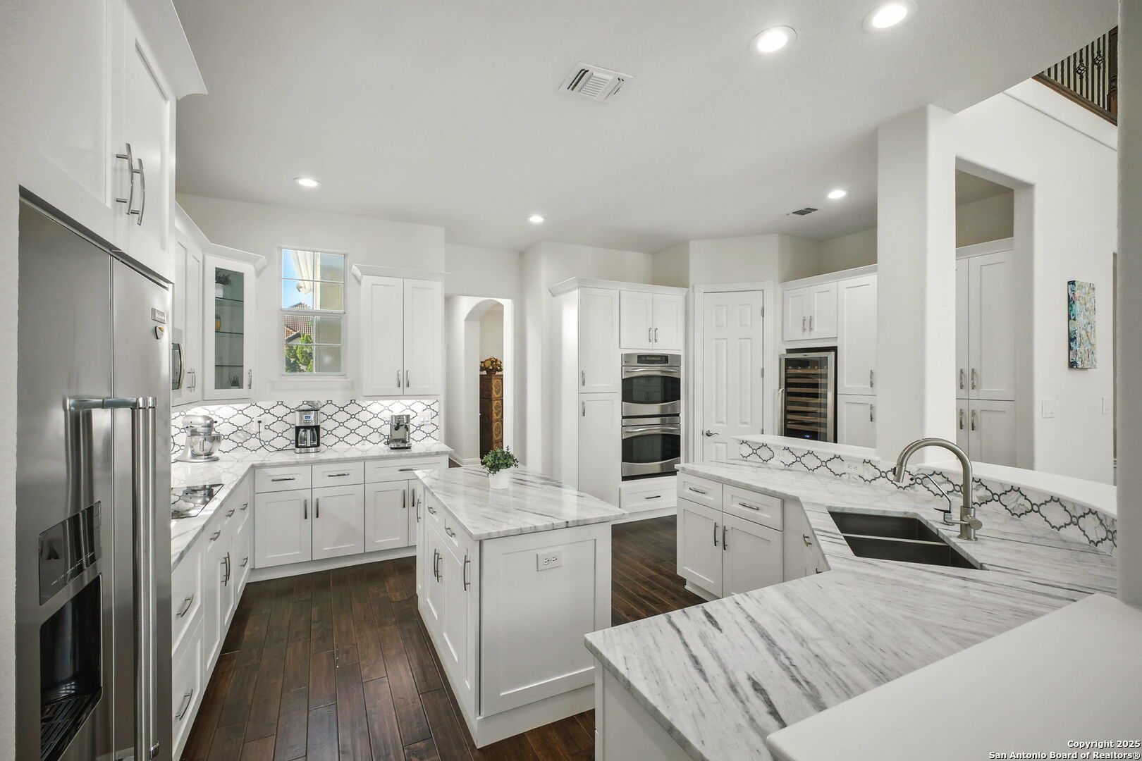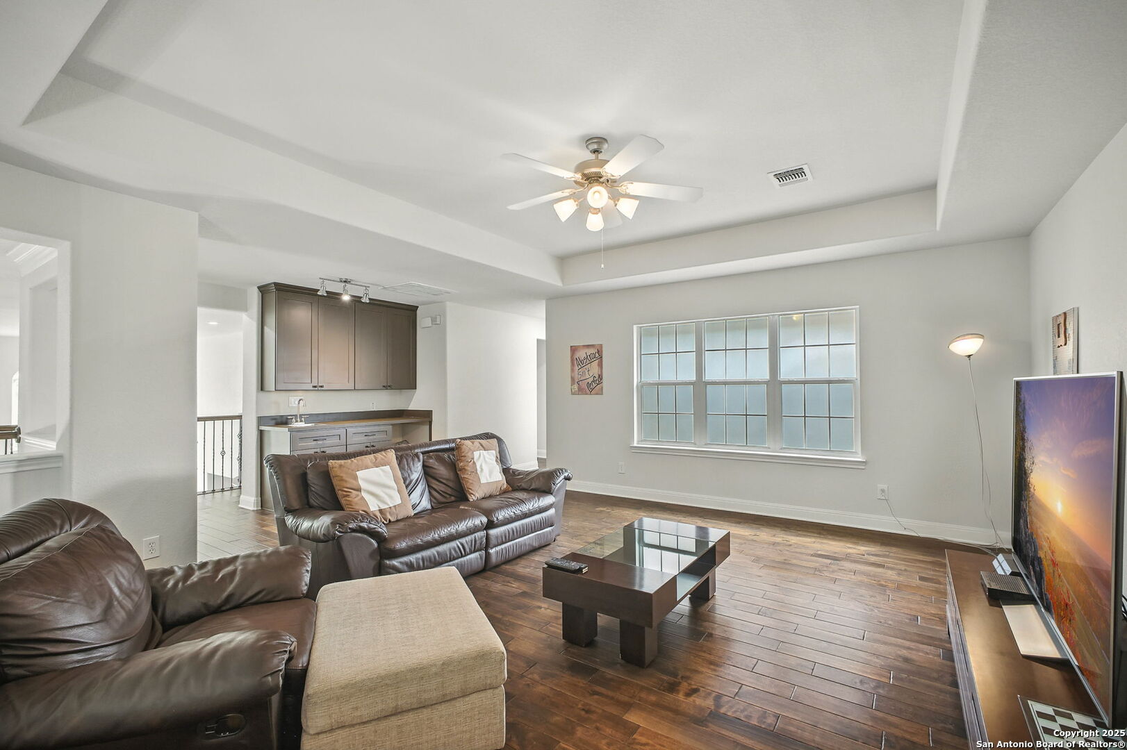Step into this exquisite Toll Brothers home in the prestigious, guard-gated Reserve at Dominion, where luxury meets everyday comfort. Sunlight streams through floor-to-ceiling windows, illuminating an open floor plan designed for both grand entertaining and quiet family moments. The chef's kitchen, adorned with granite counters, custom cabinetry, and double ovens, invites culinary creativity, while the spacious master retreat offers a private sitting area, serene pool views, and a spa-inspired bathroom with a walk-in shower, separate tub, and dual vanities. On the main level, a secondary bedroom sits just steps from a full bath, offering convenience and privacy. Upstairs, three additional bedrooms, three bathrooms, and a game room provide space for family and guests. Every detail has been thoughtfully updated, from plantation shutters to two new furnaces, water heater, water softener, and pool equipment, ensuring effortless living. Outside, a full outdoor kitchen, flagstone patio, fire pit, covered entertaining area, and sparkling Keith Zars pool with spa create a resort-like retreat. Beyond your backyard, the Dominion community offers world-class amenities, including a championship golf course, clubhouse, swimming pool, tennis courts, and playground, an unmatched lifestyle in one of San Antonio's most coveted neighborhoods. Schedule your private tour today and experience the Dominion lifestyle!