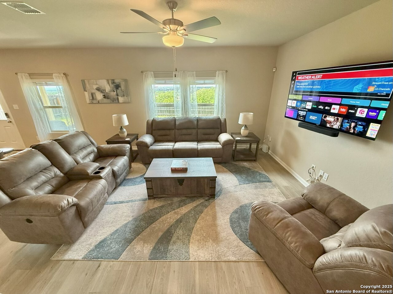 Now offering **flexible lease terms with 6-, 9-, and 12-month options**, welcome to 7026 Vista Loop-a stunning 4-bedroom, 2.5-bath two-story home nestled in the highly sought-after Vista Ridge community near Retama Park. From the moment you arrive, the home's impeccable curb appeal and manicured lawn make a lasting first impression. Step inside to discover an open, light-filled layout adorned with stylish wood-look flooring that flows seamlessly into a spacious living area-perfect for entertaining or relaxing in comfort. The gourmet kitchen is a true showstopper, showcasing rich espresso cabinetry, gleaming granite countertops, stainless steel appliances, a walk-in pantry, and a large island with bar seating for four. Upstairs, generous bedrooms provide ample space to unwind, while the primary suite offers privacy and comfort. Step outside to your covered patio and take in sweeping hill country views, complemented by a deep, fully fenced yard that offers both serenity and space to play. Whether hosting weekend gatherings or enjoying peaceful evenings, the backyard is designed for both relaxation and connection. Conveniently located minutes from shopping, dining, and major highways-with Retama Park just around the corner-7026 Vista Loop delivers modern style, versatility, and location all in one exceptional home.