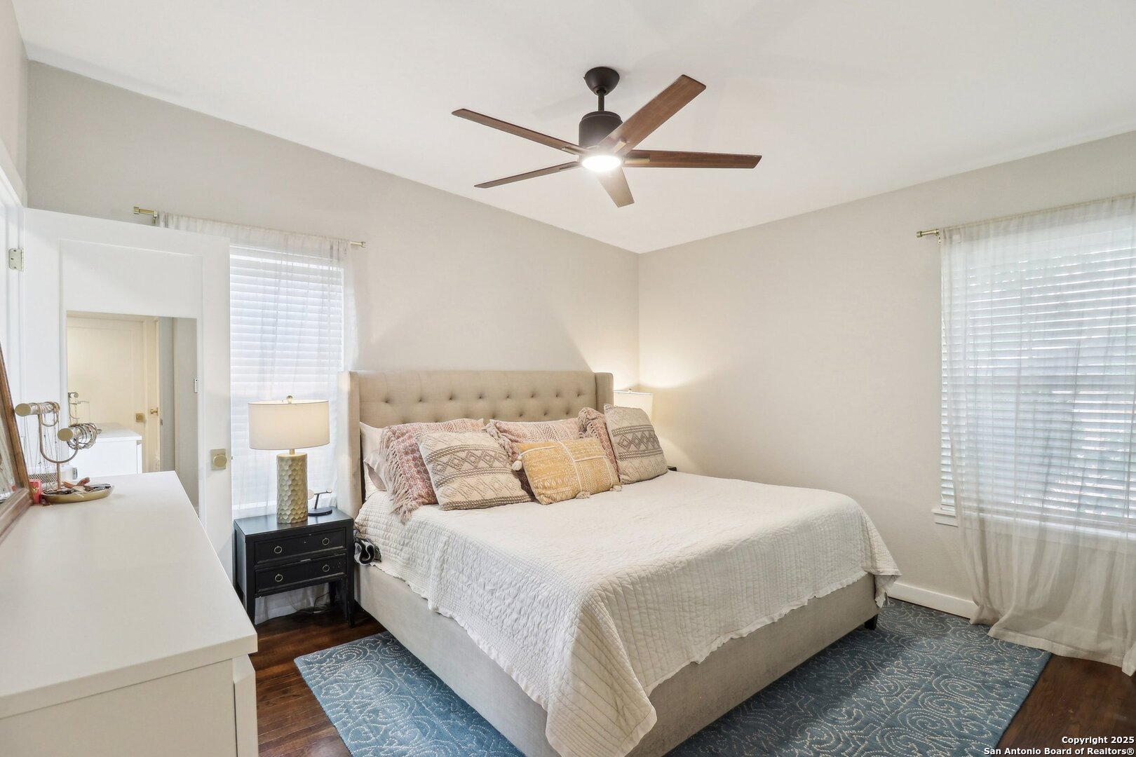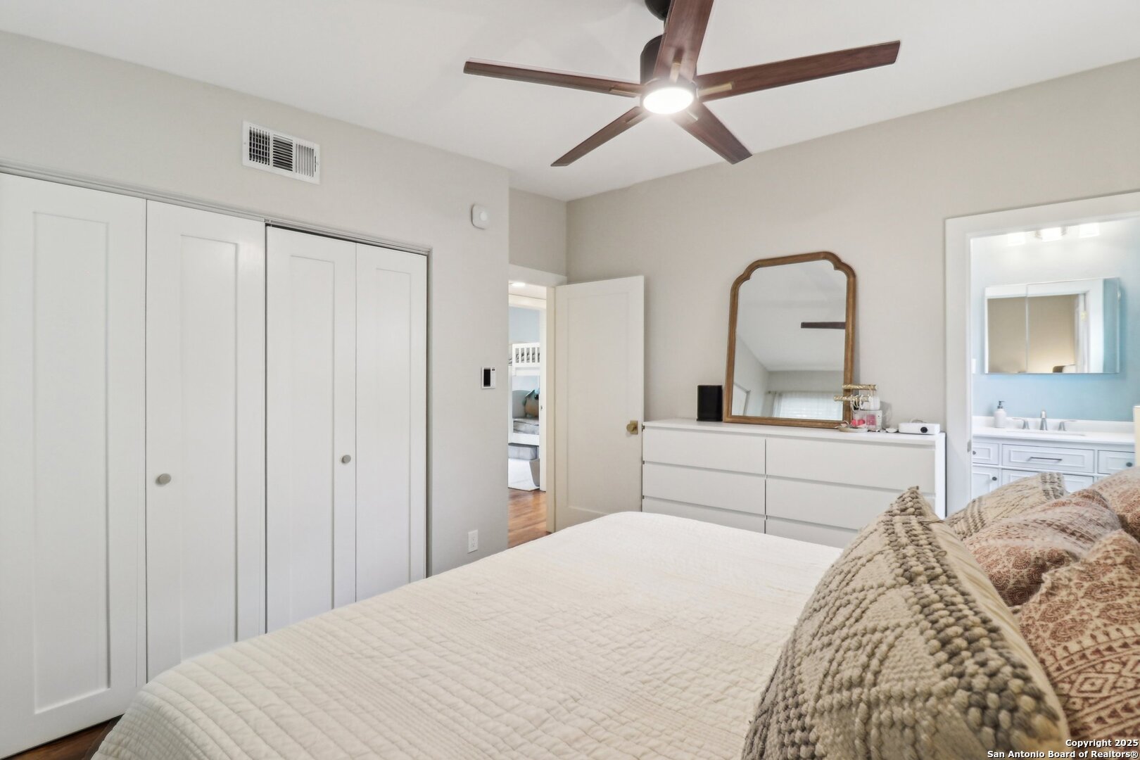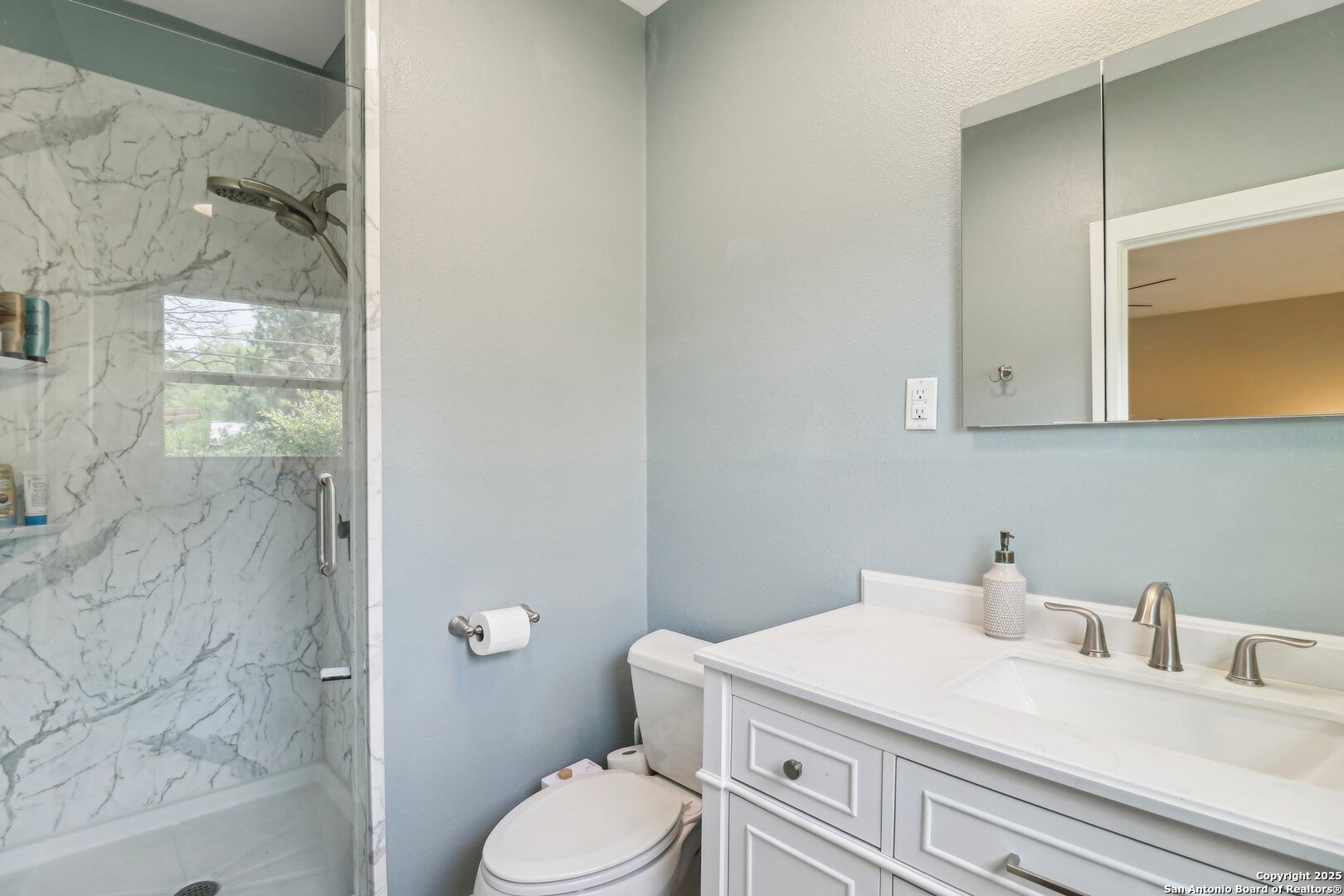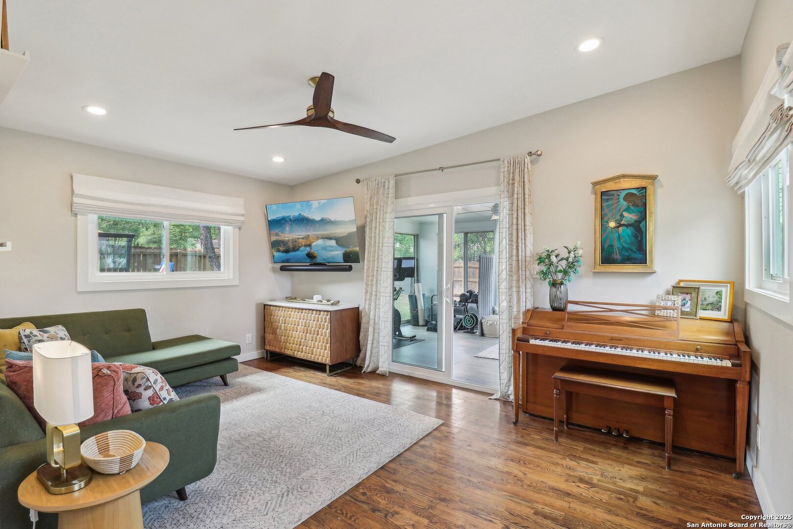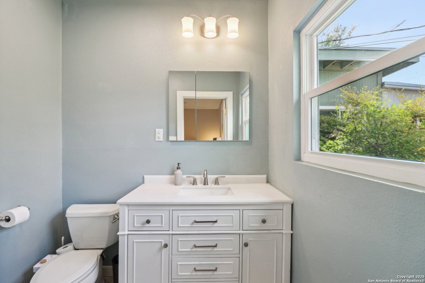 This charming, fully updated mid-century modern home blends timeless architecture with modern convenience-located in the highly sought-after Alamo Heights School District and zoned for Cambridge Elementary. Inside, enjoy tall ceilings, beautiful hardwood flooring, new doors and windows, and an open-concept layout ideal for entertaining. The spacious kitchen features a large quartzite island, KitchenAid appliances including a gas range, and sleek cabinetry. Extensive renovations include updated wiring throughout, recessed lighting, new HVAC, and a newly poured driveway. A panoramic, temperature-controlled sunroom adds flexible living space year-round-perfect for morning coffee, a playroom, or home office. Outside, the shaded portico welcomes you home, while the large front and backyards provide ample space for entertaining or relaxing. The home's signature asymmetrical rooflines and clean lines speak to its iconic mid-century roots. Ideally located within walking distance of the Alamo Heights Natatorium and tennis courts, with quick access to Highway 281 and Loop 410. Minutes from H-E-B, Target, Walmart, and the Quarry Crossing shopping district, and within a 10-minute drive of both the Stone Oak area and vibrant downtown San Antonio. A rare find that combines style, location, and comfort in one of the city's most desirable neighborhoods.