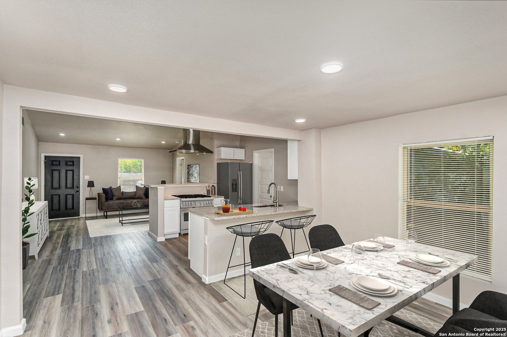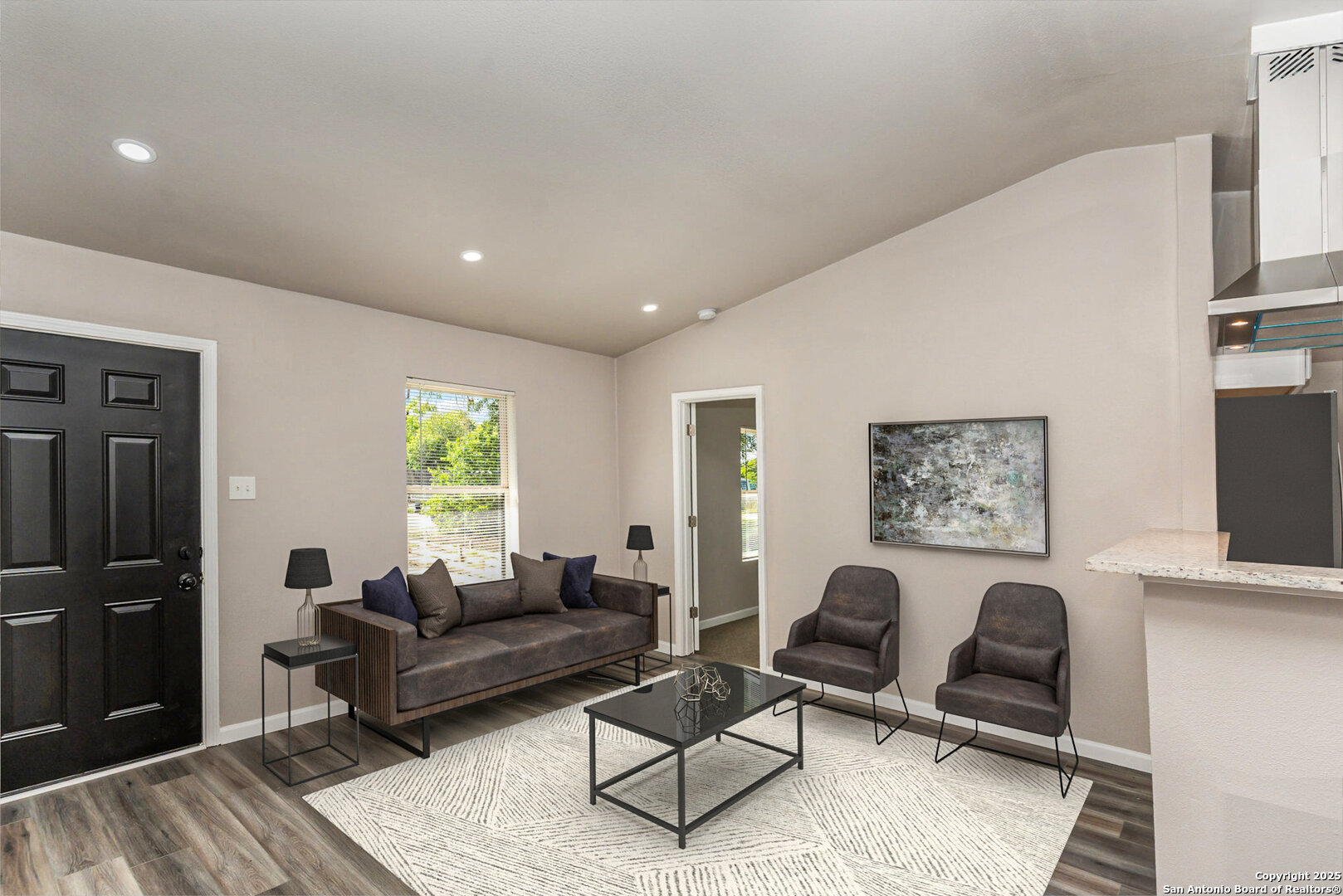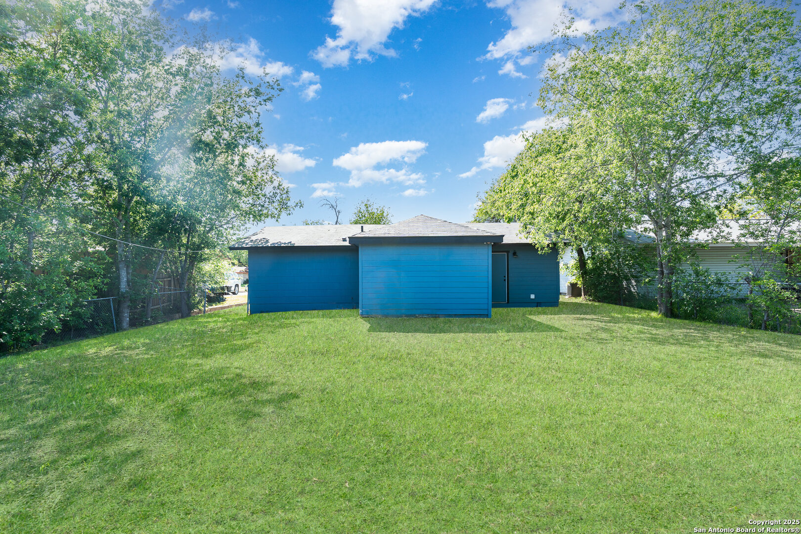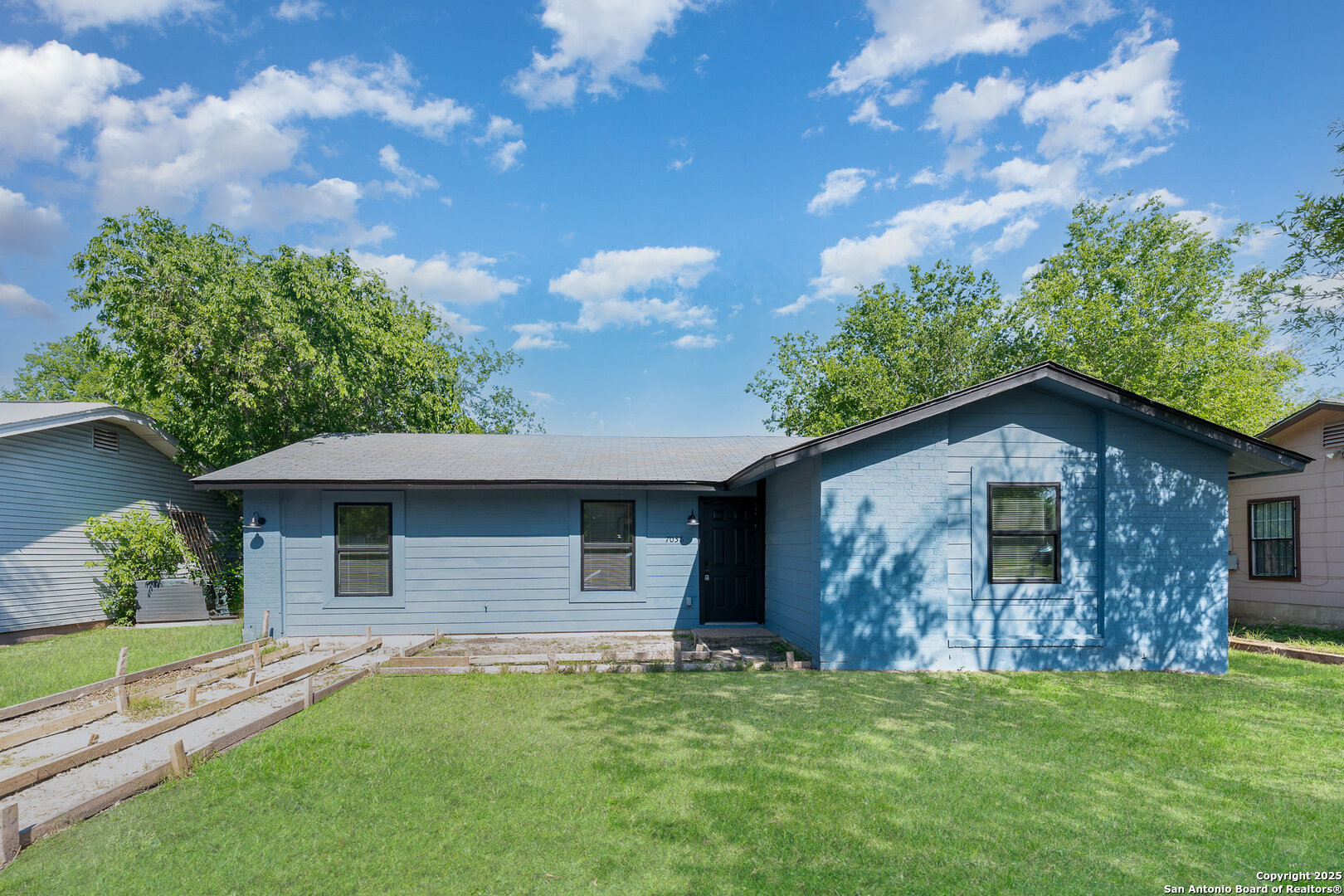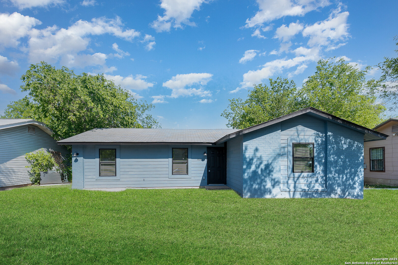 Recently renovated, this charming 4-bedroom, 1-bath home offers 1,173 sqft of comfortable living on a spacious 0.165-acre lot in the established Lackland neighborhood. Featuring an open floor plan with modern finishes and recessed lighting, the updated kitchen includes a breakfast bar ideal for casual meals and entertaining. The bathroom has been stylishly updated, and a dedicated laundry room adds extra convenience. Enjoy ceiling fans and cozy carpets in every bedroom, and durable vinyl flooring throughout the living spaces. The spacious backyard provides plenty of room for outdoor activities and future possibilities. Zoned for South San Antonio ISD schools and located in a no-HOA community. Nearby parks like Pearsall Park and Elmendorf Lake Park offer great opportunities for outdoor activities. Grocery needs are easily met with H-E-B and Walmart Neighborhood Market. Dining and retail options are readily available at South Park Mall and surrounding centers, while University Hospital and Methodist Healthcare provide quality medical care within reach. Convenient to Lackland Air Force Base. Commuting is effortless with quick access to Loop 410, I-35, and US-90, connecting you to downtown San Antonio and beyond. Perfect for military personnel, first-time buyers, investors, downsizers, or anyone seeking a turnkey opportunity in a thriving community.