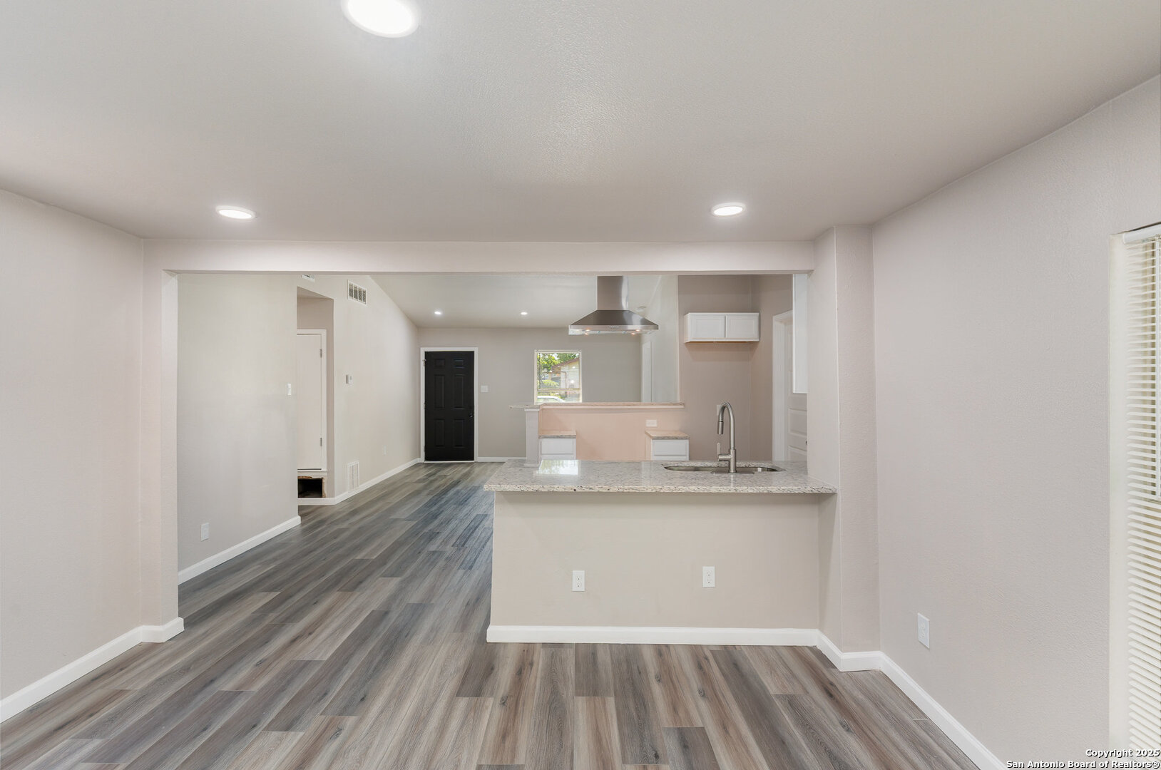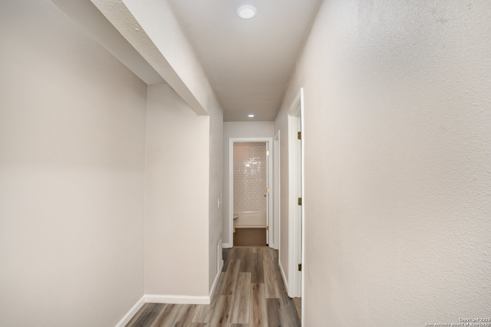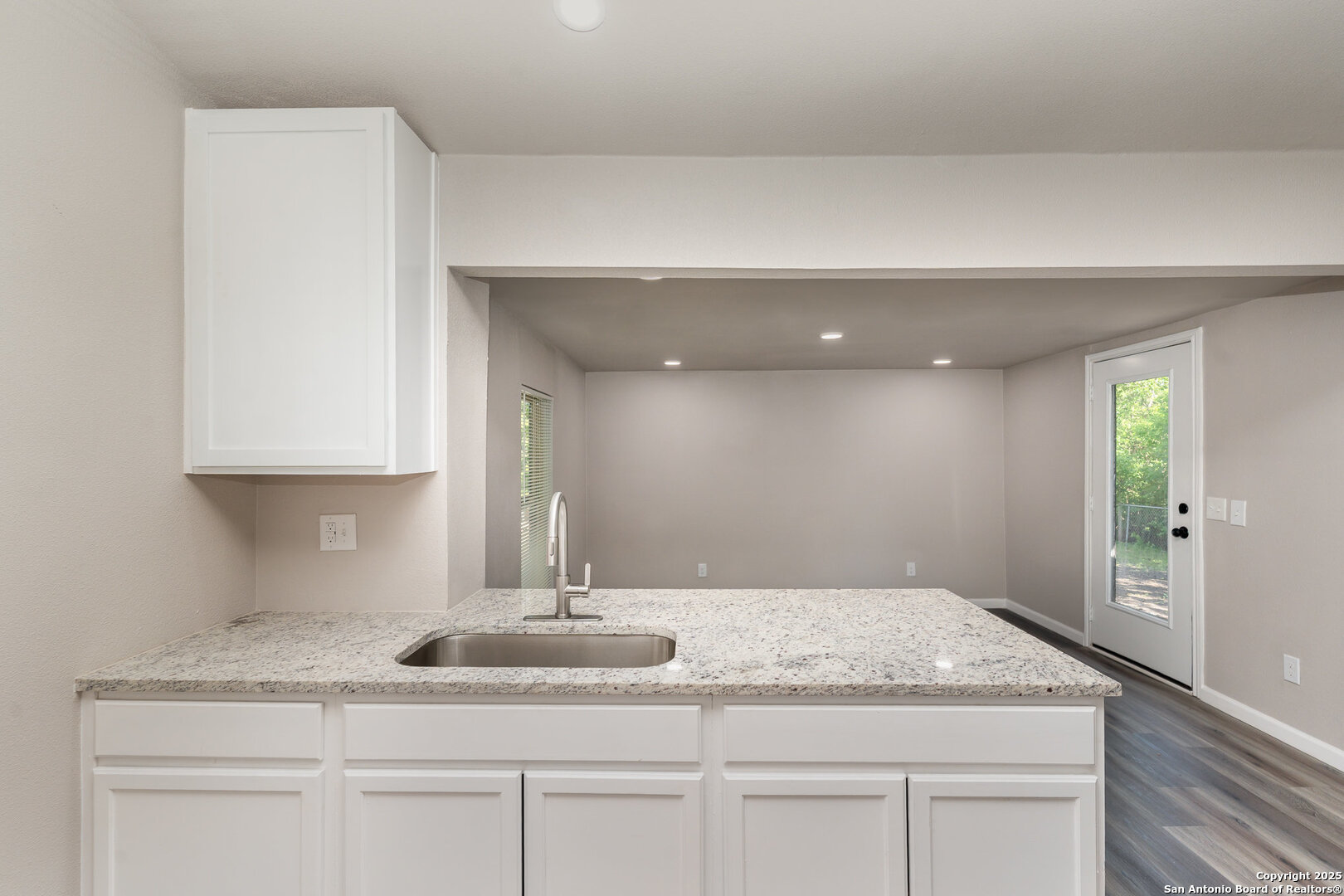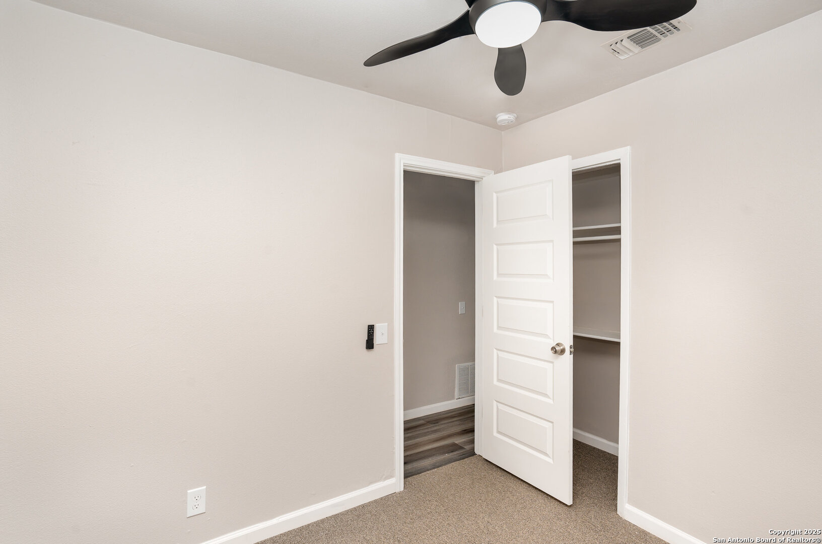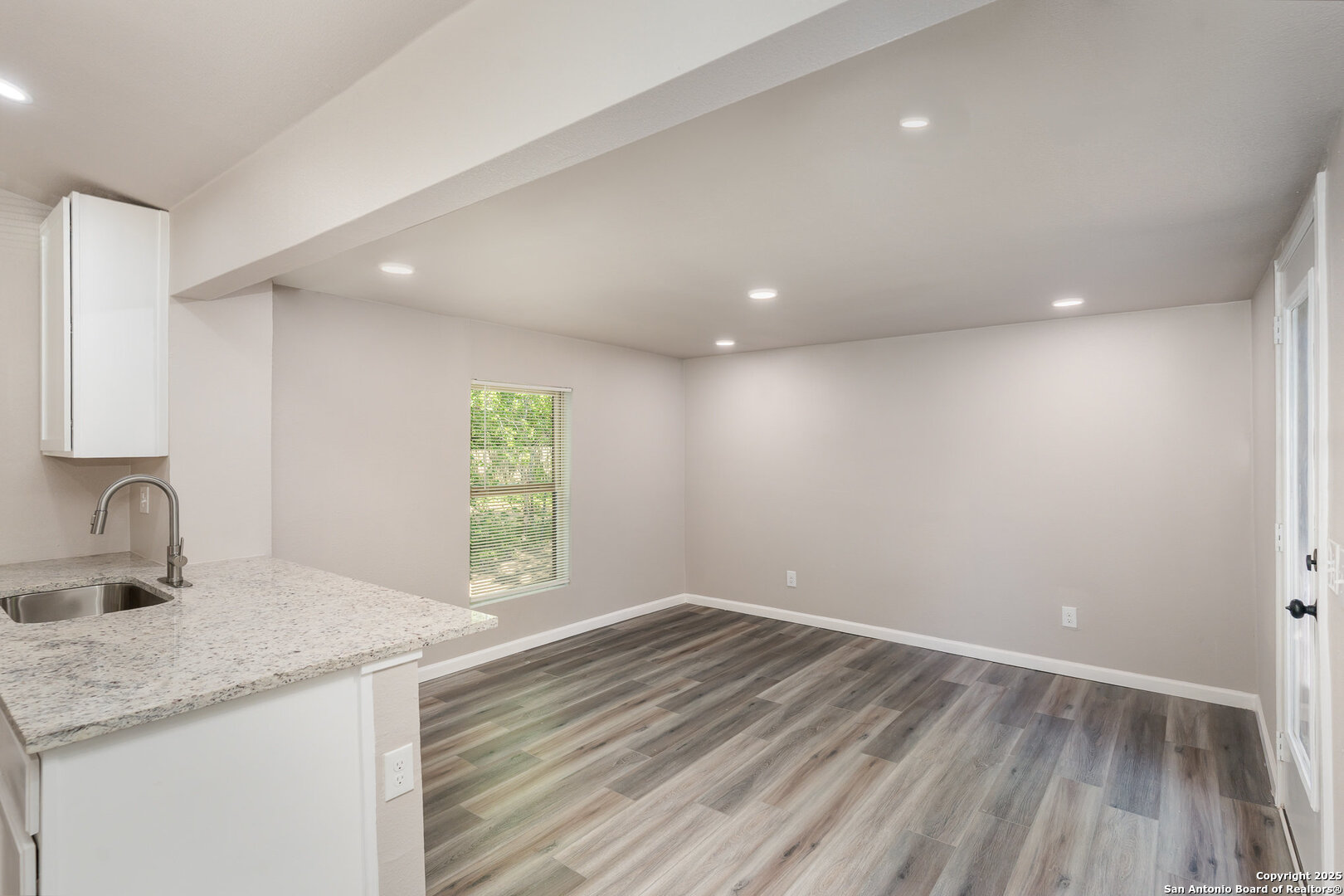 Recently renovated, this charming 4-bedroom, 1-bath home offers 1,173 sqft of comfortable living on a spacious 0.165-acre lot in the established Lackland neighborhood. Featuring an open floor plan with modern finishes and recessed lighting, the updated kitchen includes a breakfast bar ideal for casual meals and entertaining. The bathroom has been stylishly updated, and a dedicated laundry room adds extra convenience. Enjoy ceiling fans and cozy carpets in every bedroom, and durable vinyl flooring throughout the living spaces. The spacious backyard provides plenty of room for outdoor activities and future possibilities. Zoned for South San Antonio ISD schools and located in a no-HOA community. Nearby parks like Pearsall Park and Elmendorf Lake Park offer great opportunities for outdoor activities. Grocery needs are easily met with H-E-B and Walmart Neighborhood Market. Dining and retail options are readily available at South Park Mall and surrounding centers, while University Hospital and Methodist Healthcare provide quality medical care within reach. Convenient to Lackland Air Force Base. Commuting is effortless with quick access to Loop 410, I-35, and US-90, connecting you to downtown San Antonio and beyond. Perfect for military personnel, first-time buyers, investors, downsizers, or anyone seeking a turnkey opportunity in a thriving community.