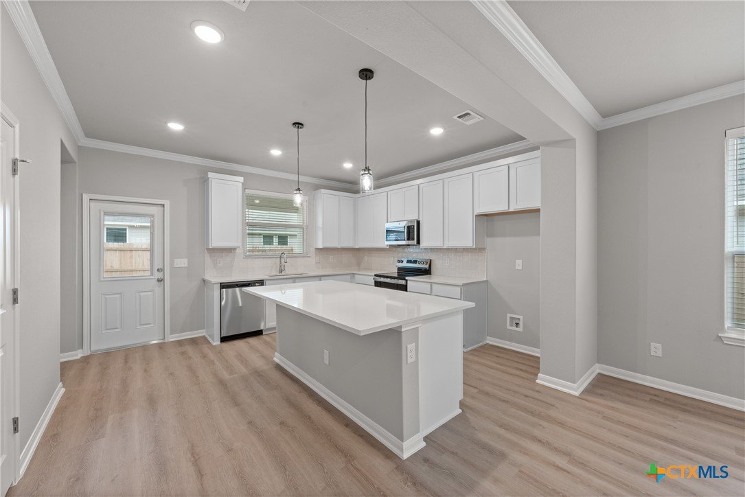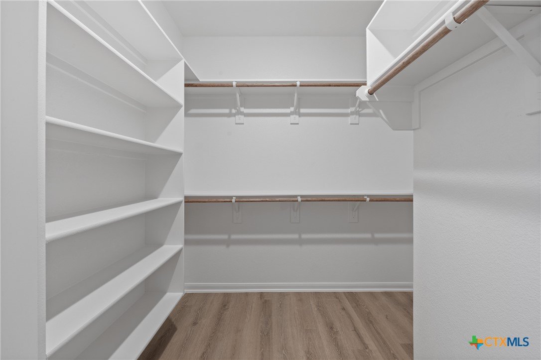 The Bellaire floor plan offers a suitable living space with three bedrooms and two bathrooms across 1,563 square feet. It provides a spacious open-concept layout across the family room, dining, and kitchen, making it ideal for living and entertaining. The kitchen includes stainless steel appliances and a large pantry with ample storage space, while the primary suite has dual vanity sinks, a private water closet, and a spacious walk-in primary closet. Relax in the spacious primary suite, then enjoy beautiful Texas sunsets on the covered patio!