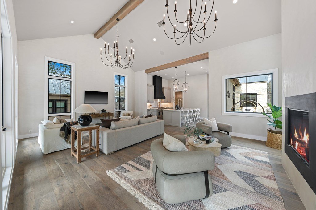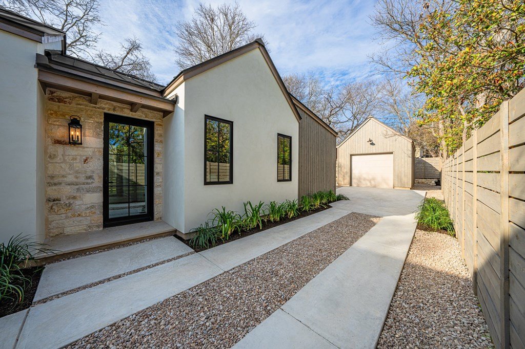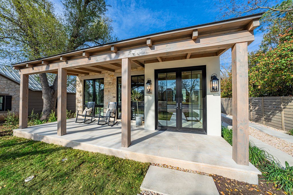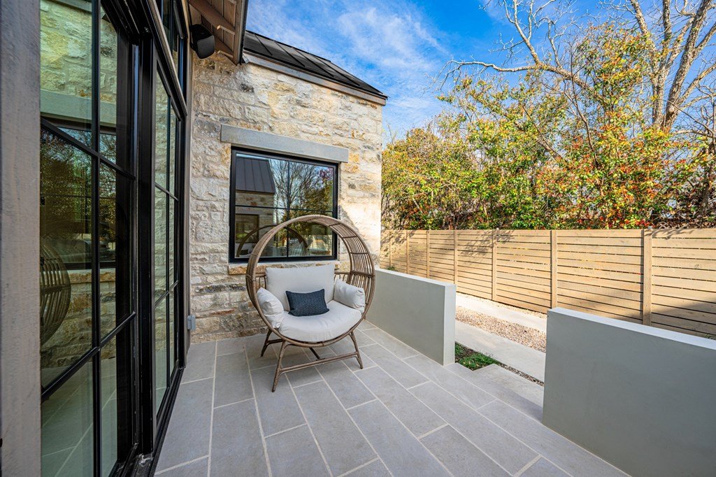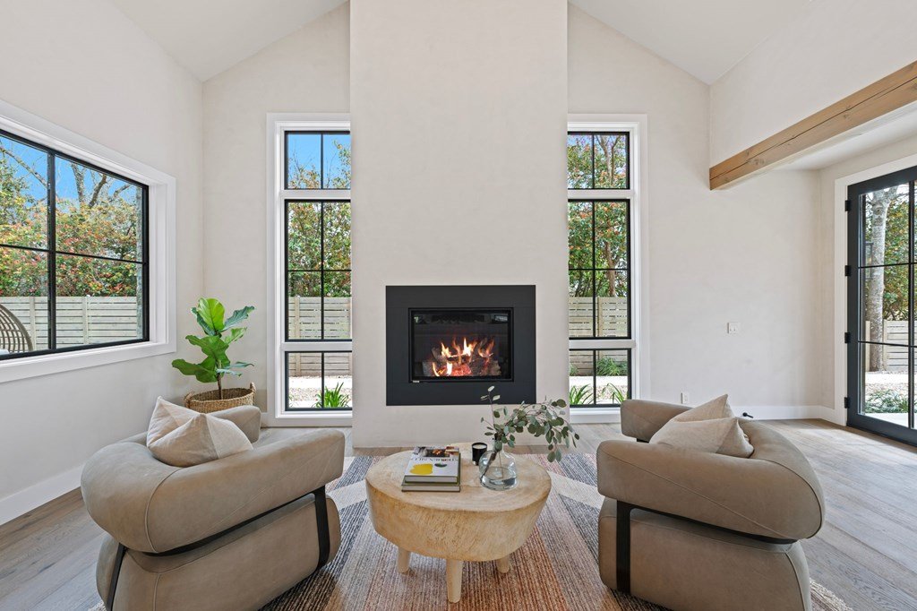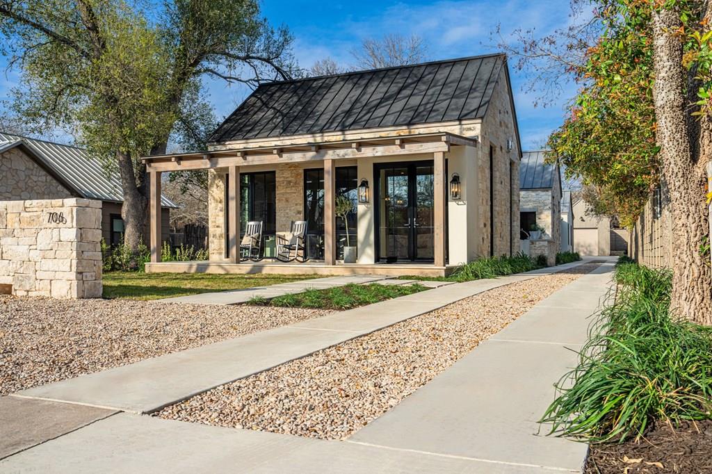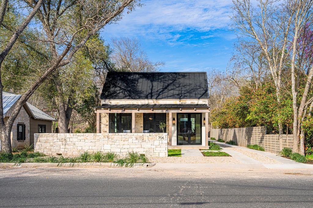 Nestled in the Historic District of Fredericksburg, this immaculate newly constructed home is move in ready and better than new, having served primarily as a guest house with minimal use by the current owners. It pristinely showcases high-end finishes and meticulous craftsmanship throughout its 3 bedroom 3 1/2-bath layout. Step through the beautifully landscaped entrance into a bright open-concept living area adorned with tall windows, designer lighting, white oak flooring, and a cozy gas fireplace. The gourmet kitchen is a chef's delight, featuring a suite of KitchenAid stainless appliances, bespoke cabinetry, and striking Taj Mahal quartzite countertops, extending to a hidden scullery perfect for storage and prep. The dining area boasts architectural finesse with floor-to-ceiling windows and access to a picturesque patio. A luxurious master suite awaits, offering lofty ceilings and a spa-like bath with a soaking tub, large shower, dual vanities, and walk-in closet. Privacy is paramount in the guest wing, including 2 bedrooms each with en-suite baths, additional exterior access, and a convenient coffee bar with a mini-fridge. Prewired for audio/visual equipment for modern comfort.