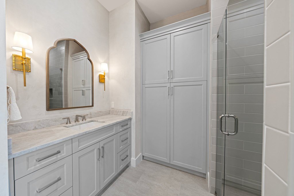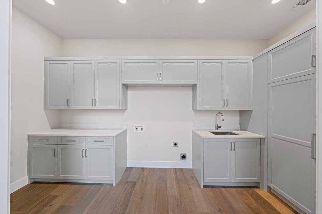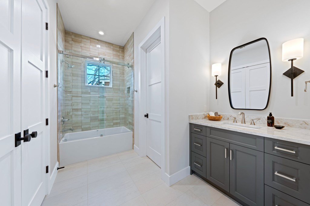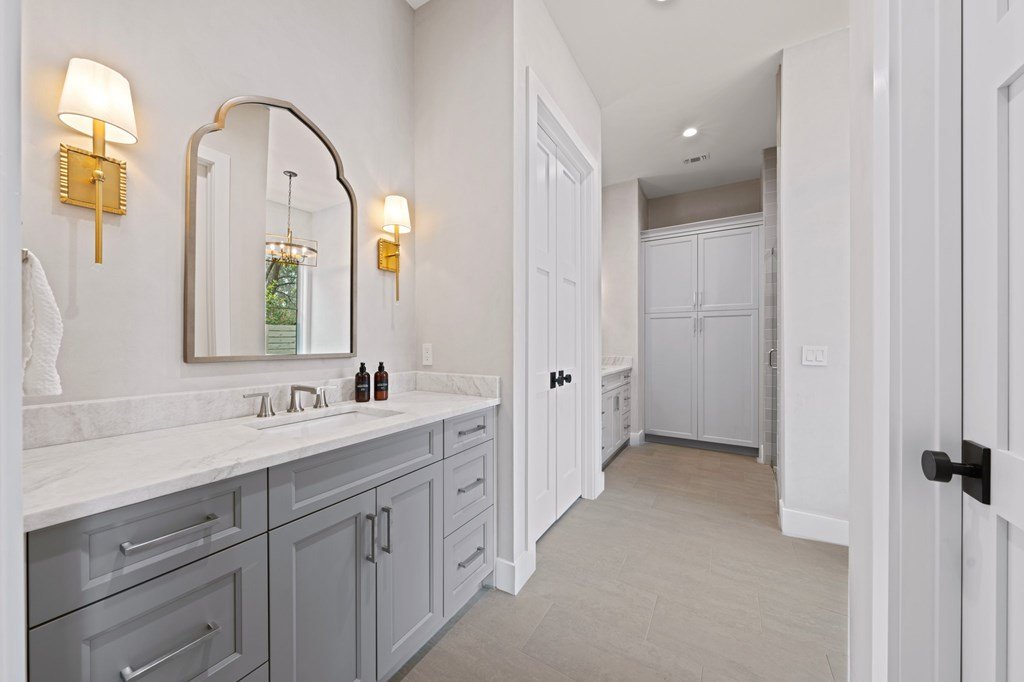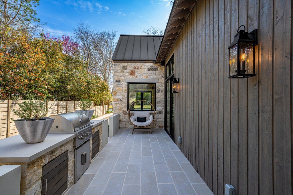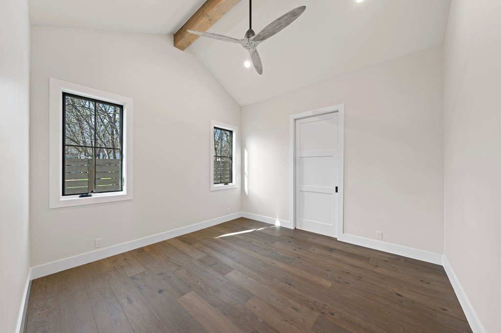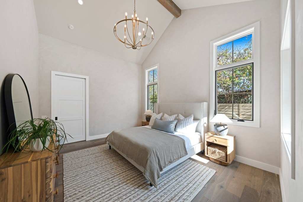 Nestled in the Historic District of Fredericksburg, this immaculate newly constructed home is move in ready and better than new, having served primarily as a guest house with minimal use by the current owners. It pristinely showcases high-end finishes and meticulous craftsmanship throughout its 3 bedroom 3 1/2-bath layout. Step through the beautifully landscaped entrance into a bright open-concept living area adorned with tall windows, designer lighting, white oak flooring, and a cozy gas fireplace. The gourmet kitchen is a chef's delight, featuring a suite of KitchenAid stainless appliances, bespoke cabinetry, and striking Taj Mahal quartzite countertops, extending to a hidden scullery perfect for storage and prep. The dining area boasts architectural finesse with floor-to-ceiling windows and access to a picturesque patio. A luxurious master suite awaits, offering lofty ceilings and a spa-like bath with a soaking tub, large shower, dual vanities, and walk-in closet. Privacy is paramount in the guest wing, including 2 bedrooms each with en-suite baths, additional exterior access, and a convenient coffee bar with a mini-fridge. Prewired for audio/visual equipment for modern comfort.