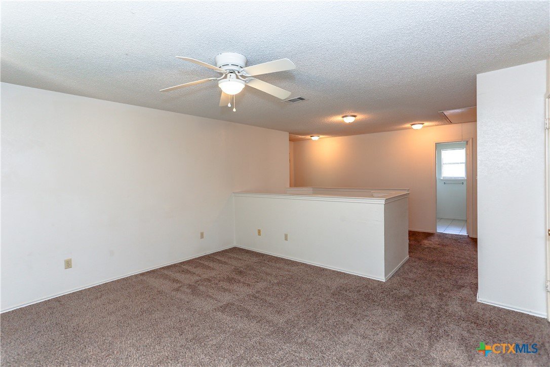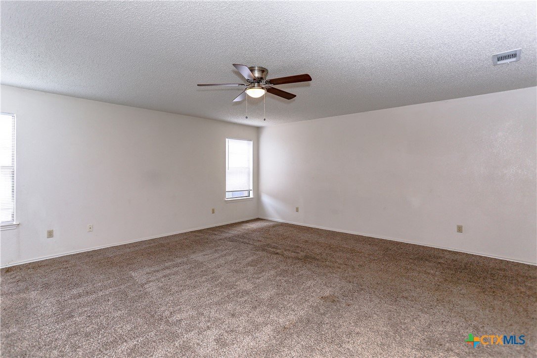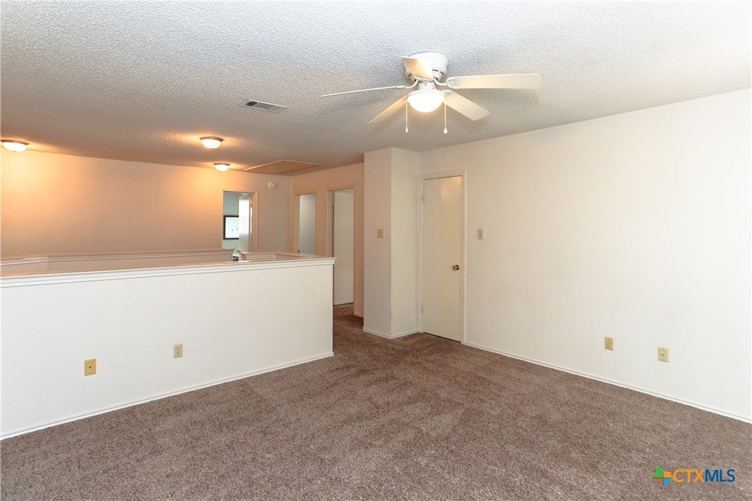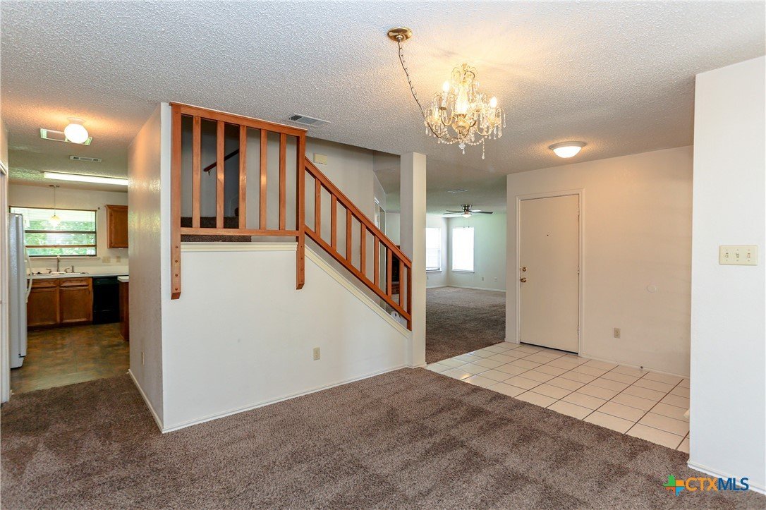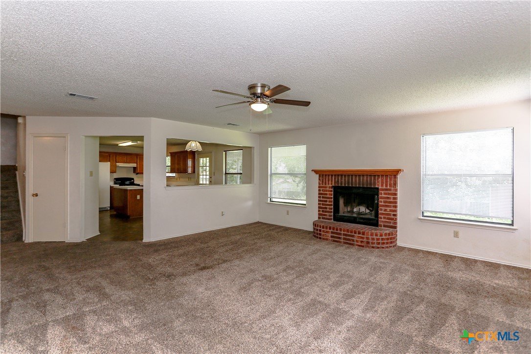 Located in an established neighborhood, this 4-bedroom, 2.5 bath home possesses inviting curb appeal and multiple living areas. Step onto the front porch and proceed in to find a tiled entry with a coat closet. The formal dining/flex area with a beautiful chandelier is located to the left. Proceed to the spacious family room with a brick fireplace flanked by windows offering lots of natural light. The large galley opening provides an open concept view of the large, eat-in kitchen with a center island and a pantry. The lower-level bedroom and half bath can serve as a mother-in-law option or a private office. The upper-level offers a loft/game room area with a large walk-in closet; the large owner's retreat with an en-suite bath boasting an expanded dual-sink vanity with center make-up station, separate shower, jetted tub, walk-in closet and a linen closet; two secondary bedrooms with walk-in closets and ceiling fans. There is a linen closet in the hallway and in the tiled hall bathroom. Outdoor entertaining is a breeze on the expanded covered patio and in the large, fenced backyard. The expanded side drive in front of and beyond the fence is perfect for boat or small RV parking. Conveniently located within minutes of Fort Hood, schools and shopping, this home is a great value.