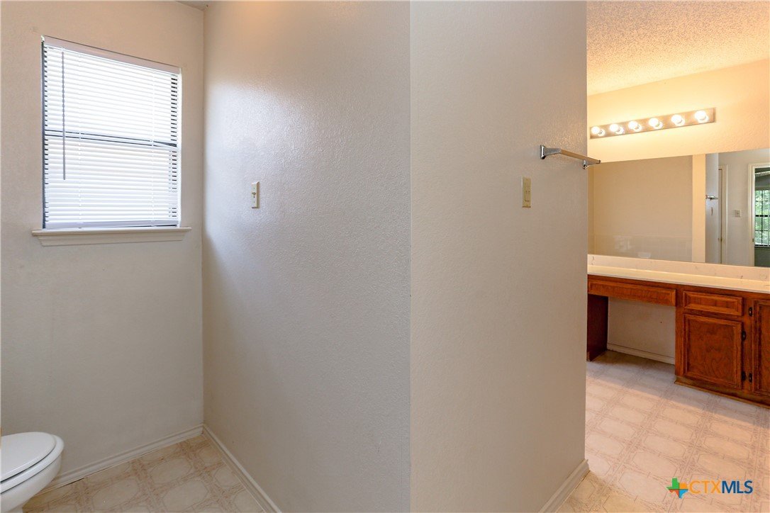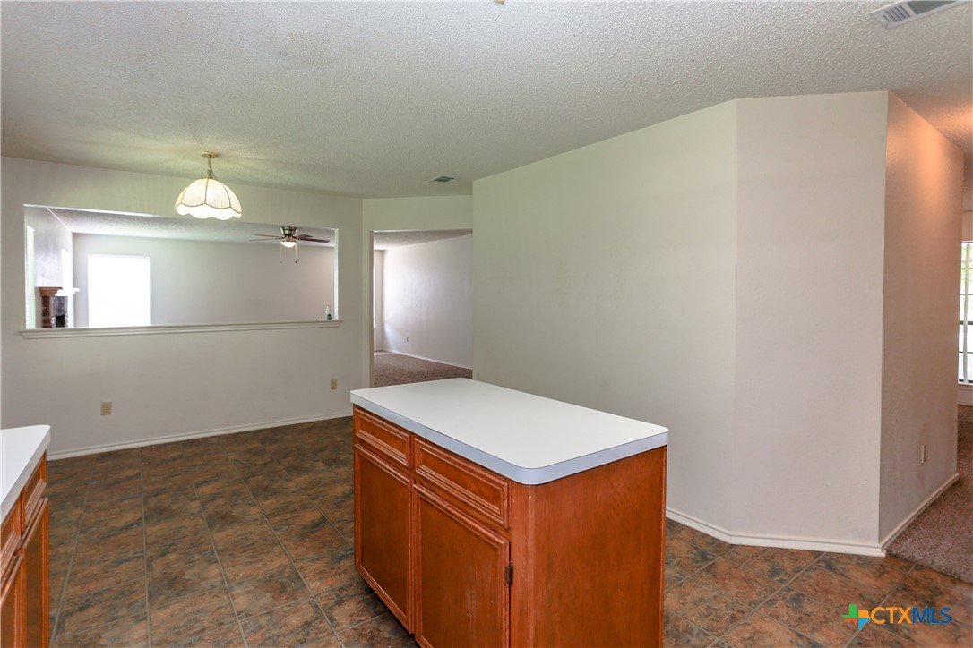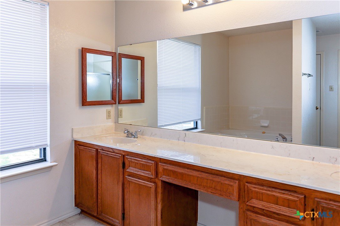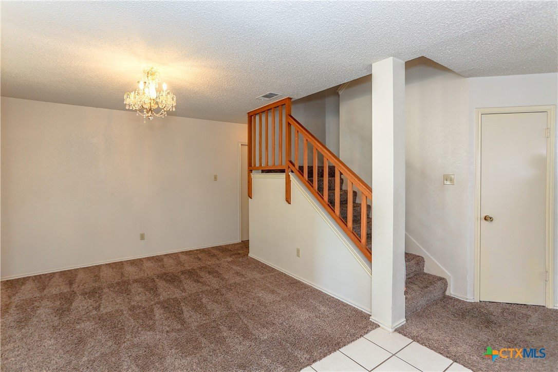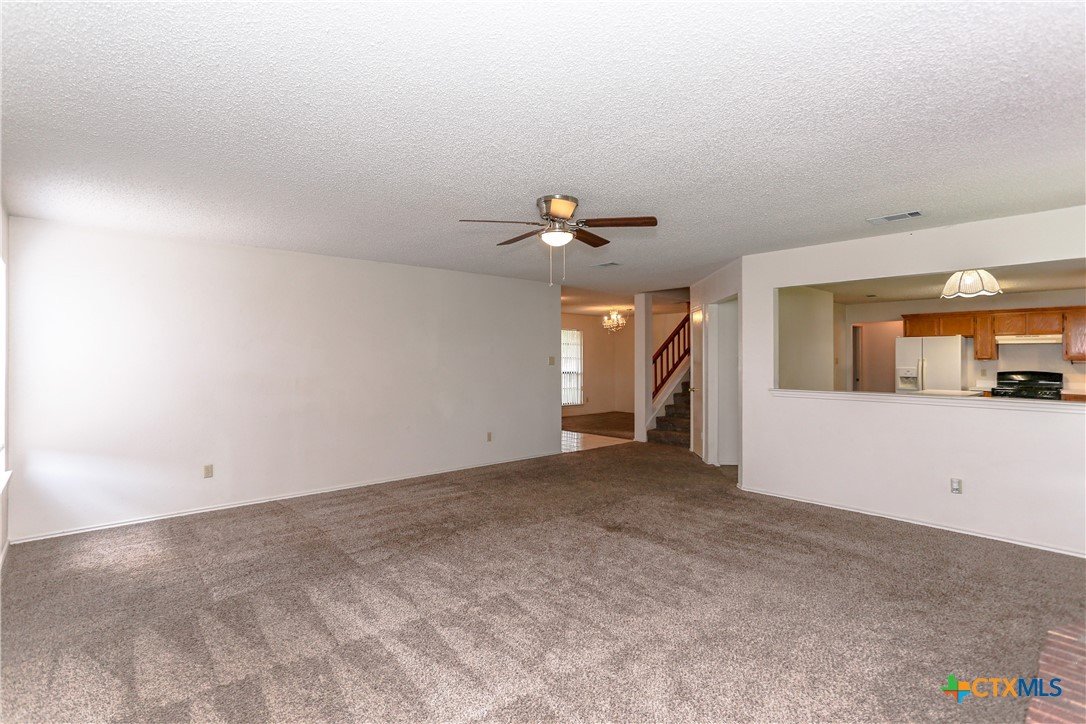 Located in an established neighborhood, this 4-bedroom, 2.5 bath home possesses inviting curb appeal and multiple living areas. Step onto the front porch and proceed in to find a tiled entry with a coat closet. The formal dining/flex area with a beautiful chandelier is located to the left. Proceed to the spacious family room with a brick fireplace flanked by windows offering lots of natural light. The large galley opening provides an open concept view of the large, eat-in kitchen with a center island and a pantry. The lower-level bedroom and half bath can serve as a mother-in-law option or a private office. The upper-level offers a loft/game room area with a large walk-in closet; the large owner's retreat with an en-suite bath boasting an expanded dual-sink vanity with center make-up station, separate shower, jetted tub, walk-in closet and a linen closet; two secondary bedrooms with walk-in closets and ceiling fans. There is a linen closet in the hallway and in the tiled hall bathroom. Outdoor entertaining is a breeze on the expanded covered patio and in the large, fenced backyard. The expanded side drive in front of and beyond the fence is perfect for boat or small RV parking. Conveniently located within minutes of Fort Hood, schools and shopping, this home is a great value.