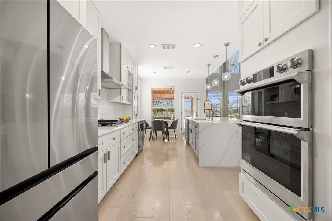 This beautifully upgraded two-story home offers 4 bedrooms, 2.5 baths, a spacious loft, plus two additional flex spaces, one upstairs and one downstairs. This home is thoughtfully designed for both everyday living and entertaining. While the downstairs flex area is staged as an office, it can easily be set up to serve as a formal dining area. With over $100,000 in recent improvements, this home truly stands apart. The primary suite is conveniently located on the main level and features a tray ceiling and a spa-inspired bath with a double granite vanity, soaking tub, and walk-in shower. The heart of the home is the showstopping kitchen, completely rebuilt from the ground up with no expense spared, boasting high-end finishes, gas cooking, and a layout that flows seamlessly into the open living space. Soaring ceilings, a corner fireplace, and abundant natural light create a warm yet impressive atmosphere throughout the home. Recent upgrades include white oak hardwood floors on the main level, luxury laminate flooring upstairs, a brand-new $85,000 kitchen rebuild, enhanced caulking and structural improvements, and $5,000 in new grass along the side and backyard, bringing the total investment to approximately $115,000 in just one year. Located in a peaceful, quiet neighborhood, residents also enjoy access to a fantastic community pool and amenities. This open, light-filled home combines luxury, comfort, and quality in a setting that feels both refined and welcoming.