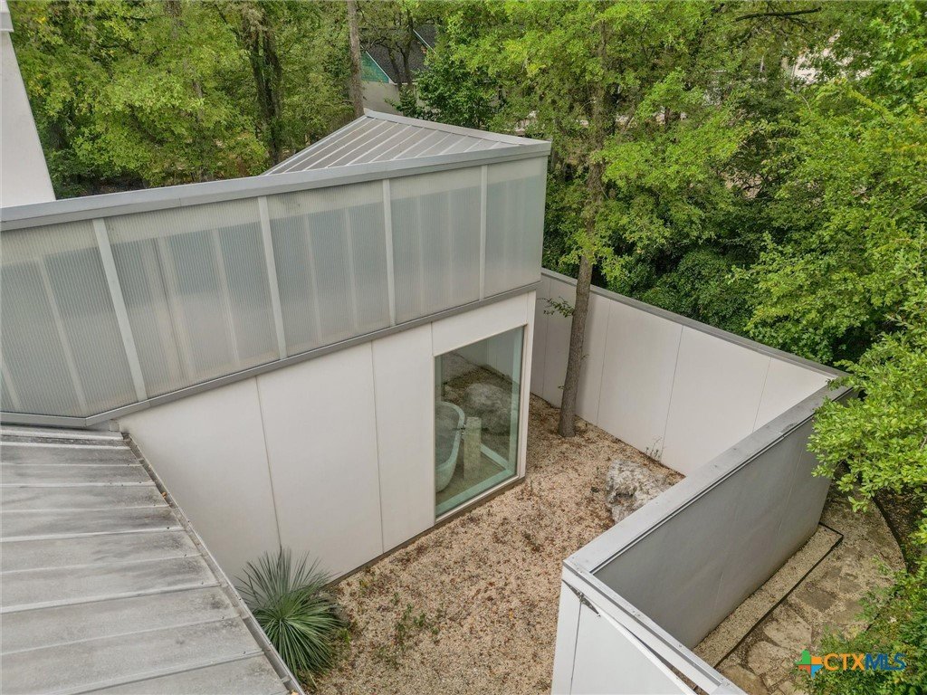 This one-of-a-kind residence is a stunning example of architectural creativity and design. Remodeled and thoughtfully expanded in 2015 by A. Gruppo Architects, the home includes a gallery, painting studio, a library, and a luxurious primary suite. Celebrated for its visionary design, the property has been featured in multiple publications, including Texas Monthly and Texas Architect Magazine. Set on 1.0 beautifully utilized acre, the outdoor living spaces are just as remarkable as the interiors. A sculpture garden and bocce court extend from the gallery, creating an ideal backdrop for entertaining, or relaxing with family and friends. A greenhouse and workshop add versatility and function. The primary suite offers a peaceful retreat, with the bedroom and spa-like bathroom opening directly into a private Zen garden. This is more than a home—it’s an experience, a sanctuary, and a piece of Texas architectural history!
