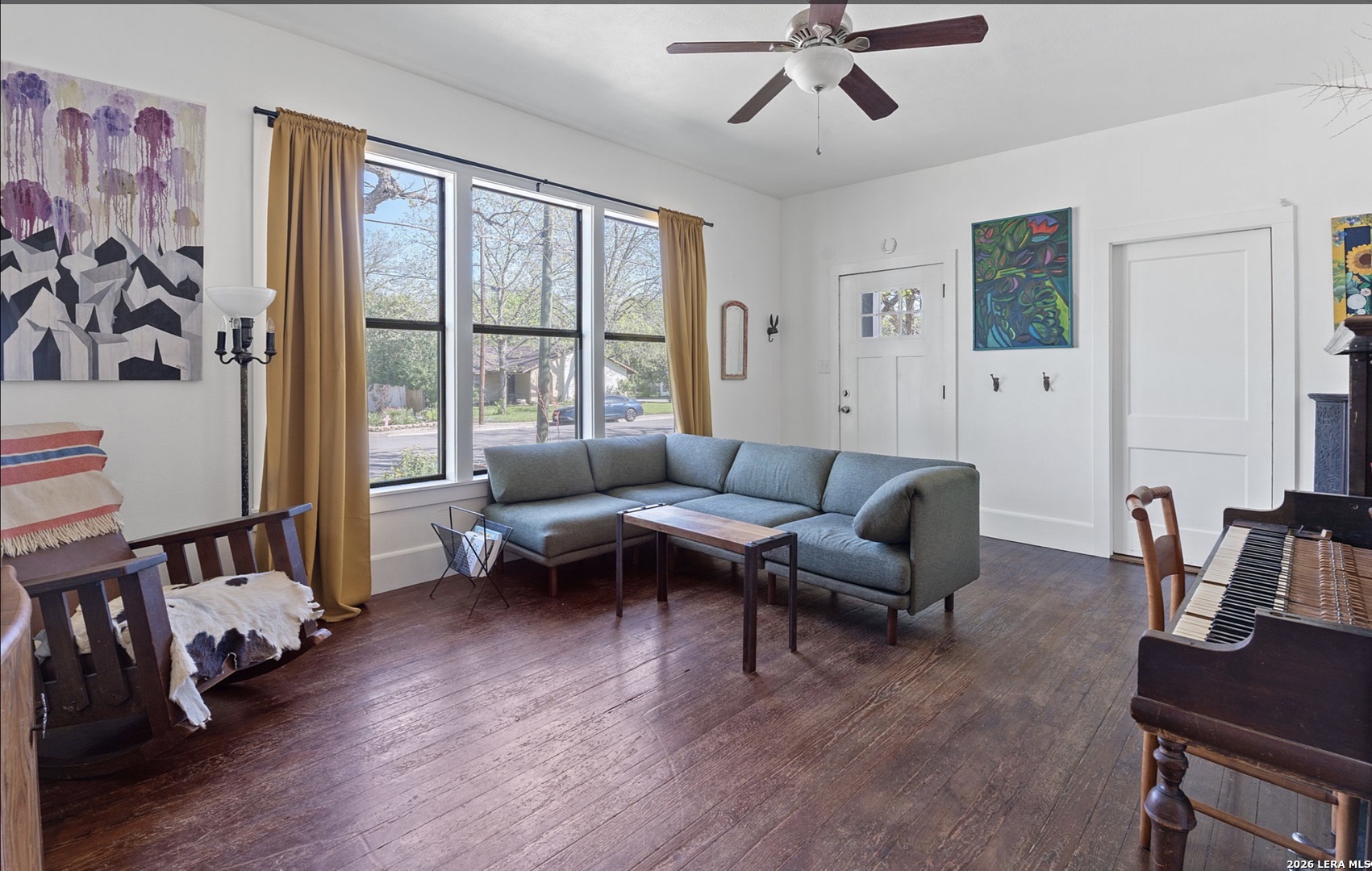 Timeless charm meets modern updates in this 1935 4 BR/2BA located scant blocks away from Historic Downtown Lockhart. This beauty features hardwood & penny-tile floors, tall ceilings, large windows for natural light, built-in cabinets, steel architectural details, and a spacious open kitchen/dining area ideal for entertaining. The largest bedroom offer flexible use as an office or studio, built-in closet storage & a screened porch. Improvements include windows, fresh paint, tastefully remodeled baths. Expansive attic with updated window presents opportunity to convert to a second story. Exterior highlight's: 0.29 acre lot with pollinator gardens, native & low maintenance landscaping, mature large trees, a 20x30 metal workshop with electricity (potential ADU conversion). Prime location just 0.5 mile to Historic Square, shops, restaurants, BBQ spots, galleries & events. 35 minutes to Austin. 2 minutes from 130 Toll.