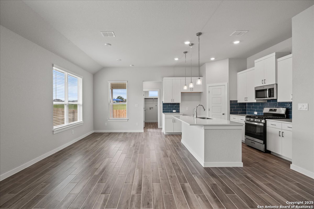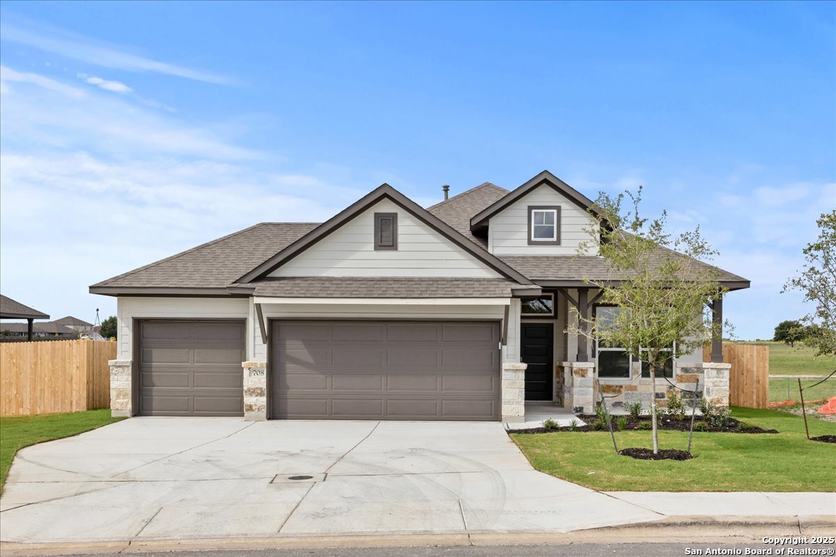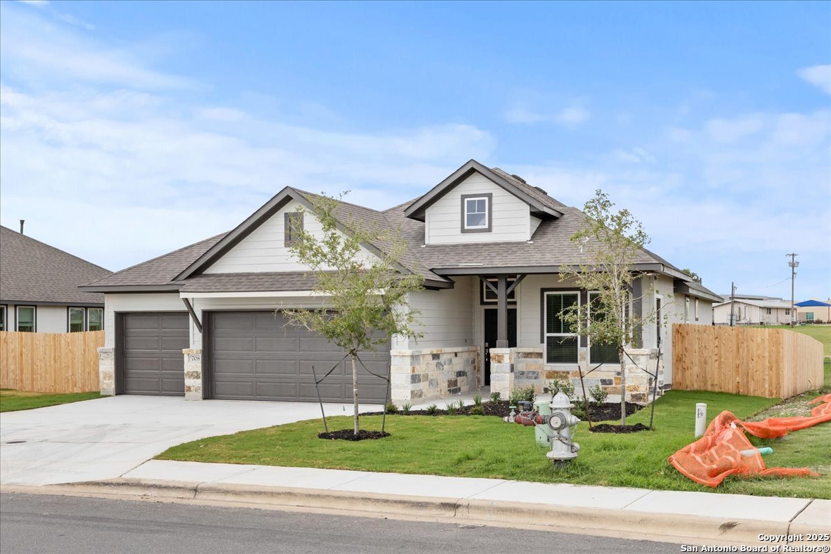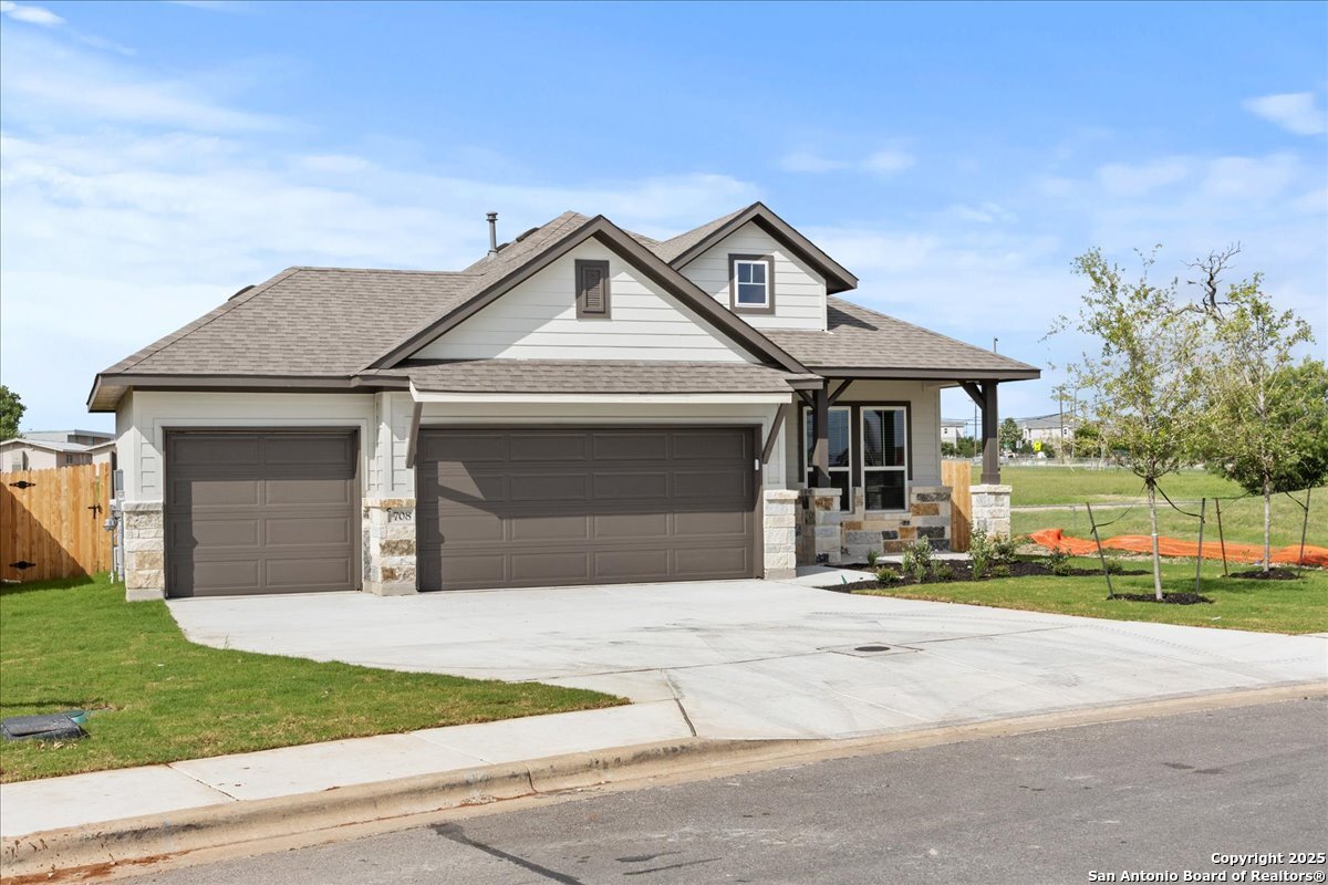 MOVE IN READY!! The AVRIL is an adorable single story home design that features 3 bedrooms & 2 bathrooms. 3 CAR GARAGE! The open foyer leads you into the heart of the home where you can entertain family & friends. Large windows line the living & dining space to flood the home with natural light! The spacious kitchen island allows you to prep some delicious meals or have the kids sit & do homework. If you're a first-time homebuyer or looking to downsize... this just may be the floorplan for you! Full sod, sprinkler, & covered rear patio. **Photos are of the actual home**