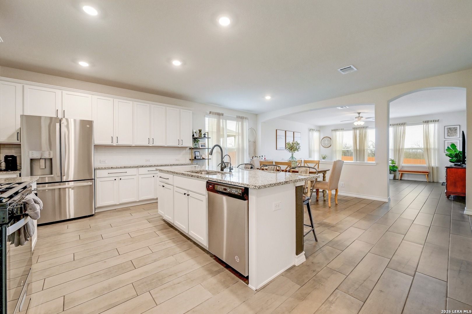No rear neighbors - large bedrooms - tons of community amenities, this impeccably maintained and move-in ready, Cibolo home offers a bright, welcoming feel with abundant natural light and generous space between neighbors for added openness. Inside, a thoughtfully designed layout features a distinctive arched opening between the dining and living areas, creating both character and flow. The floor plan includes generously sized bedrooms, plus an upstairs loft perfect for a second living area, playroom, or entertainment space. A private en-suite bedroom provides an ideal setup for guests or multi-generational living. Enjoy a private backyard with no rear neighbors and a covered porch perfect for relaxing or entertaining. The home also includes a builder's 10-year structural warranty for added peace of mind. Community amenities include a pool, splash pad, fitness center, playground, basketball court, clubhouse, and events led by a Lifestyle Director. Conveniently located near Randolph JBSA, Fort Sam, shopping, dining, and with easy access to I-10, I-35, San Antonio, New Braunfels, and Austin.