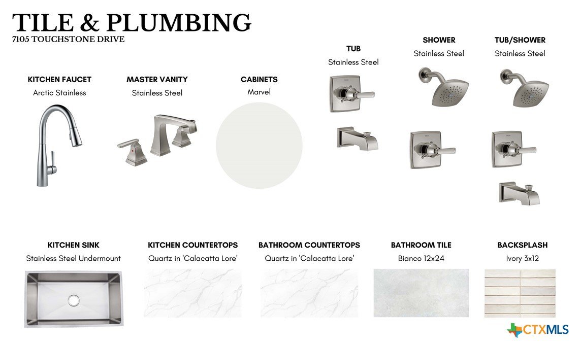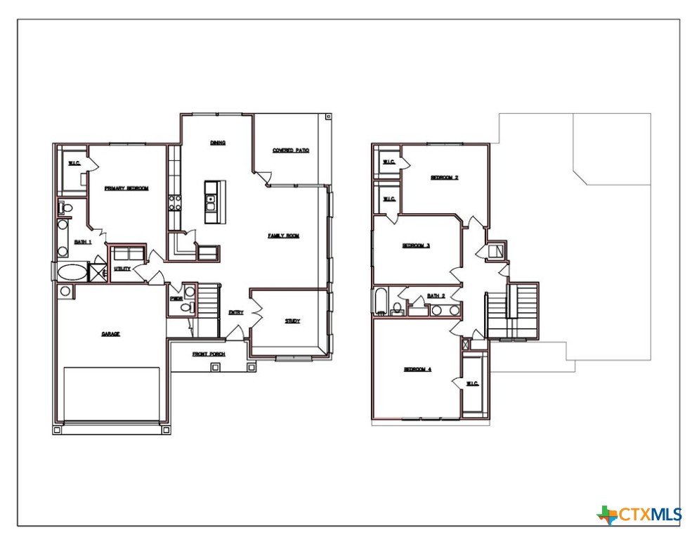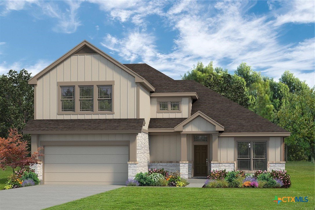 Check out the Sabine plan if you're looking for a two-story home. All secondary bedrooms in this plan are on the second story. The Sabine features a four-bedroom, two-and-a-half-bathroom layout across 2,312 square feet. This plan features an open-concept family room, kitchen, and dining area. The kitchen includes stainless steel appliances with a large island and walk-in pantry, while the primary suite has a private water closet, dual vanity sinks, and a spacious closet. All bedrooms on the second story have expansive walk-in closets, perfect for large families. This plan also has a two-car garage. Plan variations include the choice of a dining room or study off the entryway, a walk-in shower or separate tub and shower in the primary bath, and an outdoor fireplace.