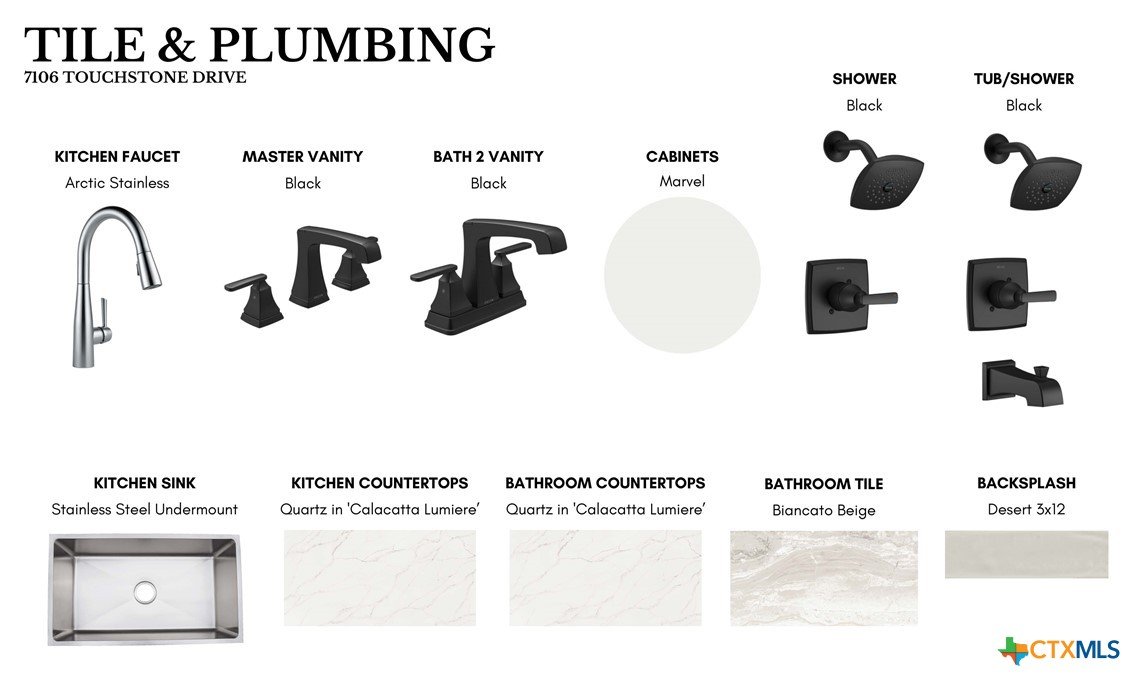 A popular choice among young families, the 1,875-square-foot Houston floor plan offers a suitable living space with four bedrooms and two bathrooms. The kitchen includes stainless steel appliances and a large walk-in pantry, while the primary suite has dual vanity sinks, a private water closet, and a walk-in closet. Plan variations include a walk-in shower or a separate tub and shower in the primary bath and an outdoor fireplace.