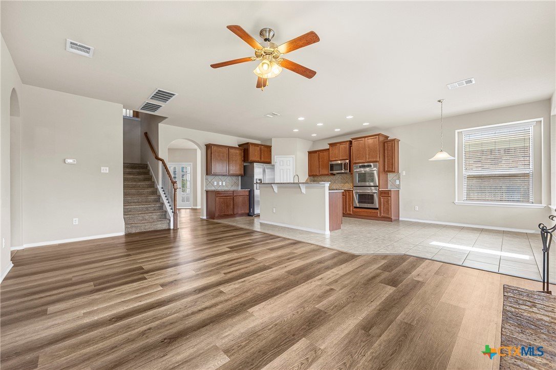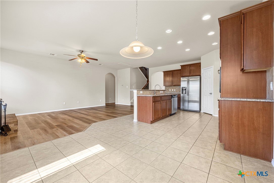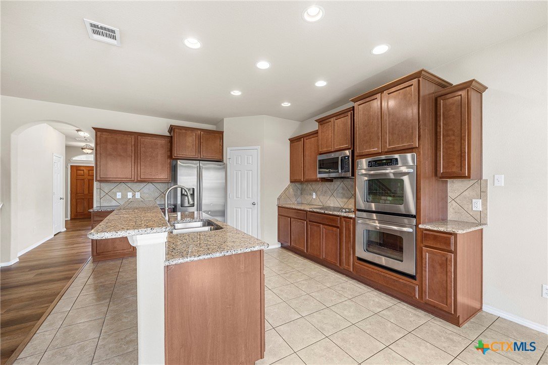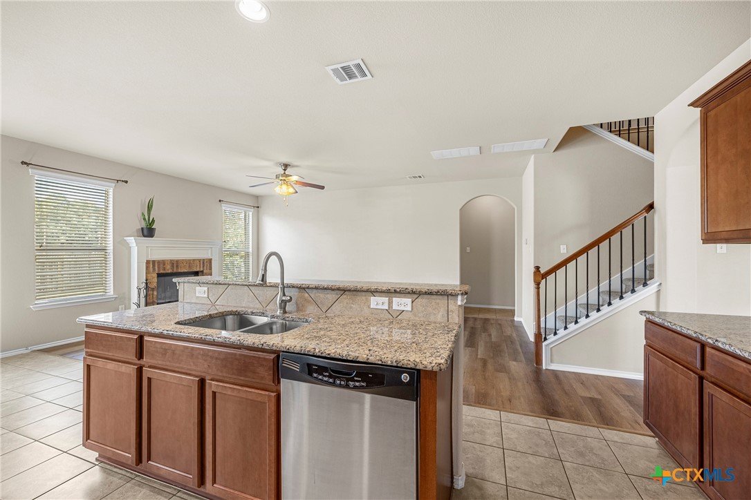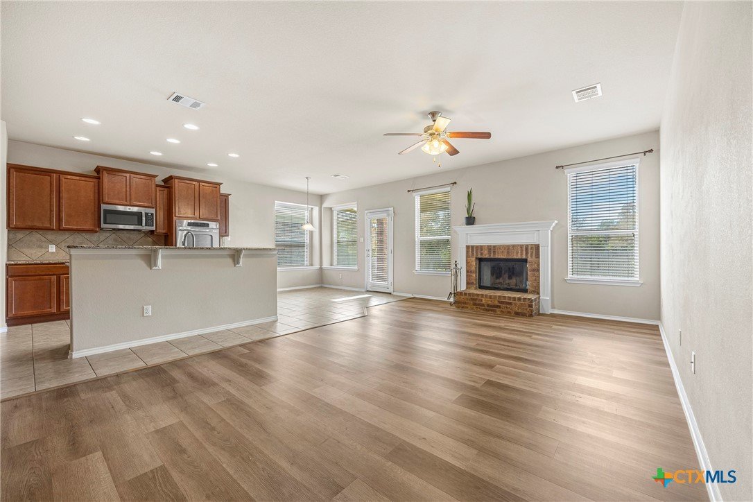 This beautiful 5-bedroom home offers space, comfort, and versatility, featuring a separate study, formal dining area, and an open kitchen with double ovens, stainless steel appliances, granite countertops, and a cozy eat-in space, all centered around a warm wood-burning fireplace. A private in-suite room downstairs is perfect for guests or in-laws, while the 3-car garage provides plenty of storage. Upstairs includes a huge loft or second living area with its own storage closet, a convenient study nook, and a spacious primary suite with French doors, double sinks, a garden tub, separate shower, and a large walk-in closet. The large backyard with an extended patio is ideal for relaxing or entertaining, and the peaceful cul-de-sac location adds extra appeal—truly a home you’ll fall in love with.