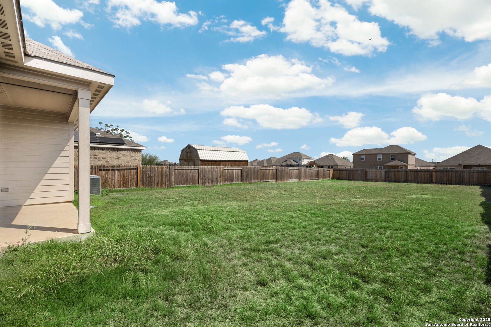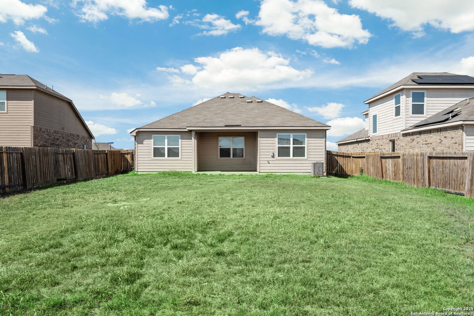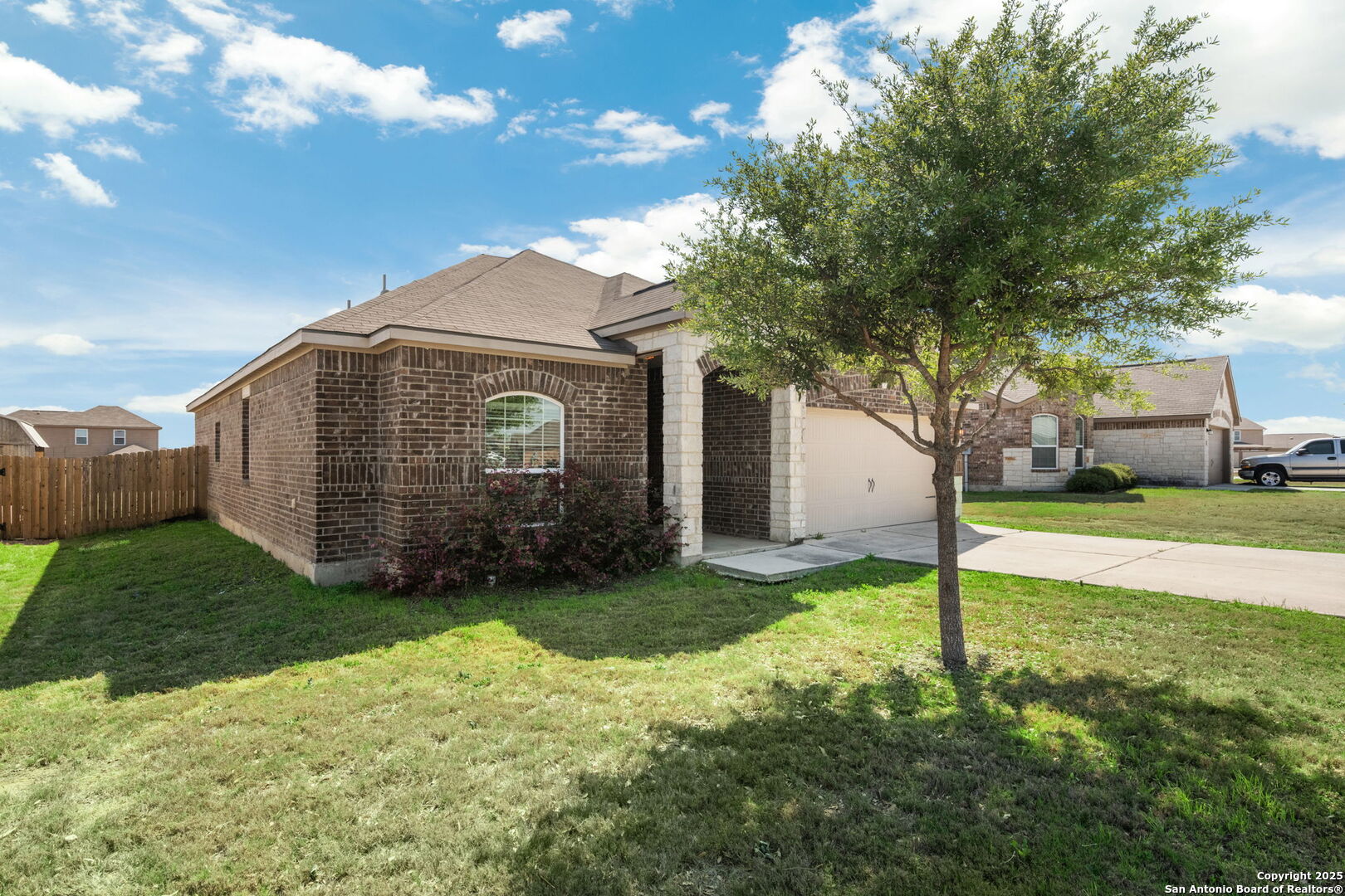 Discover this charming one-story home in the Luckey Ranch neighborhood! Offering 3 beds, 2 baths, and +/- 1,508 sqft of living space, this home features an inviting open layout. The kitchen boasts wood cabinets, stainless steel appliances, and granite countertops. The primary bedroom includes a spacious walk-in closet and a full bath with a garden tub, separate shower, and single vanity. Enjoy the rare and huge, private backyard with a privacy fence. Perfect for gatherings and relaxation. Medina Valley ISD. Welcome home!