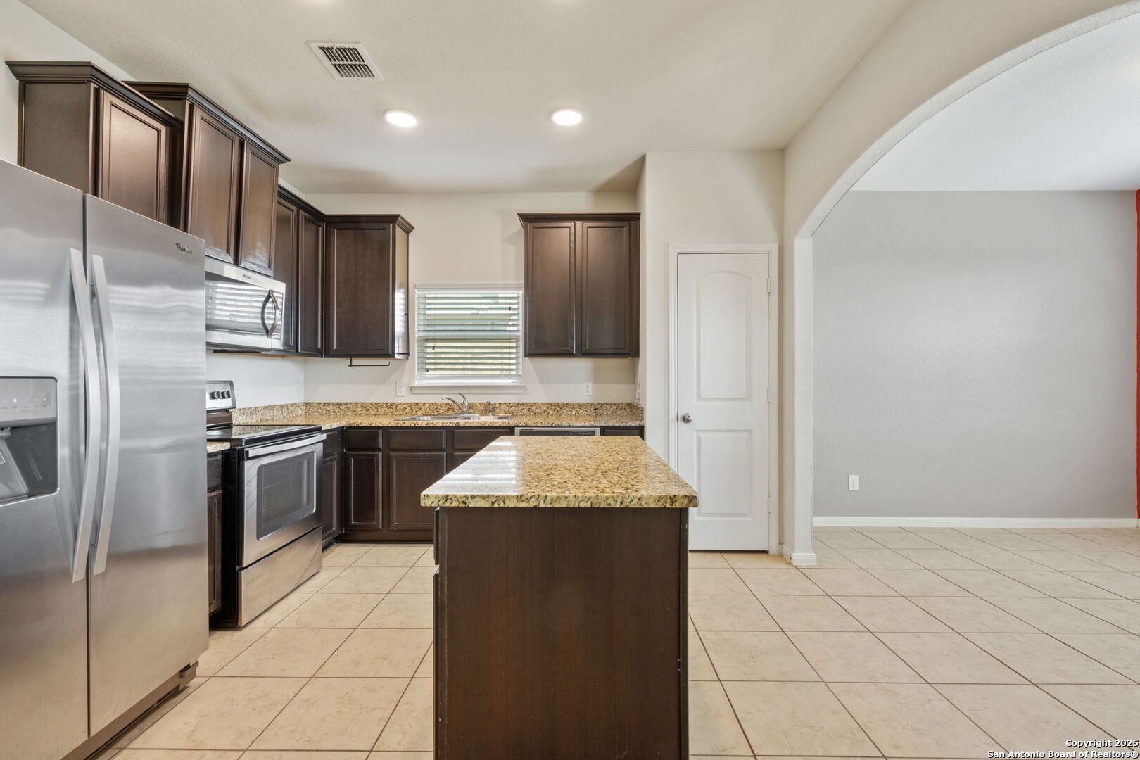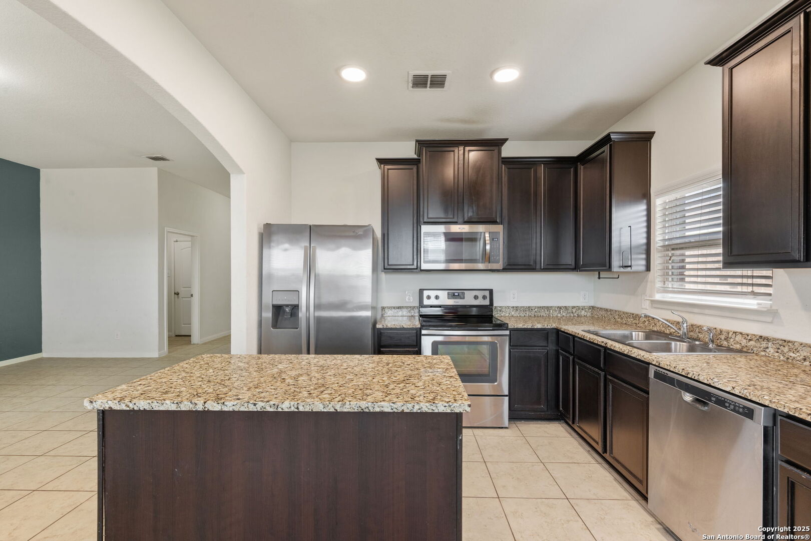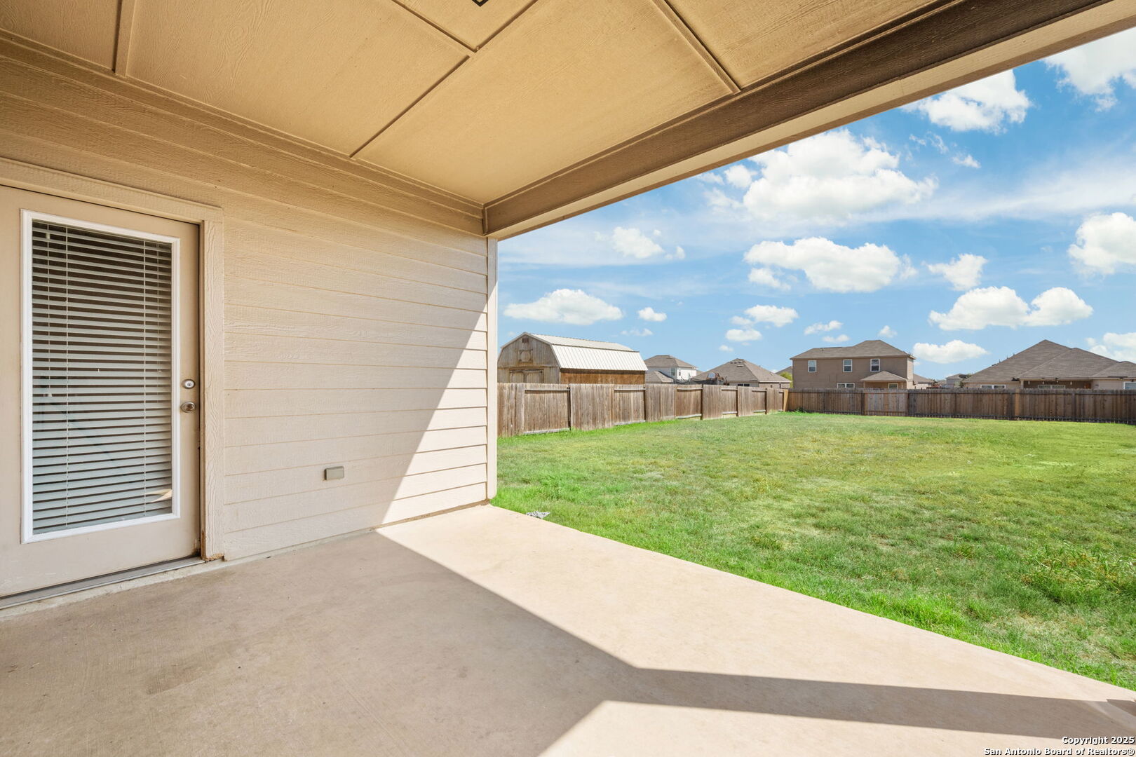 Discover this charming one-story home in the Luckey Ranch neighborhood! Offering 3 beds, 2 baths, and +/- 1,508 sqft of living space, this home features an inviting open layout. The kitchen boasts wood cabinets, stainless steel appliances, and granite countertops. The primary bedroom includes a spacious walk-in closet and a full bath with a garden tub, separate shower, and single vanity. Enjoy the rare and huge, private backyard with a privacy fence. Perfect for gatherings and relaxation. Medina Valley ISD. Welcome home!