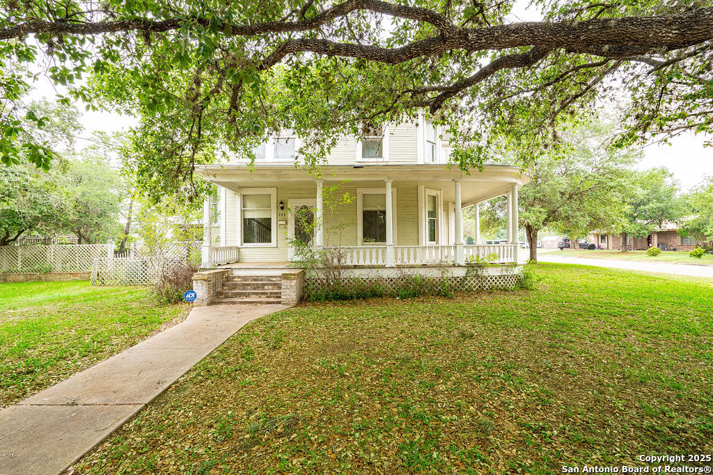 Charming Victorian home on almost 1/2 acre in Beeville. The wrap around porch puts you in the mood to slow down and enjoy the beautiful oak shaded yard. The Foyer sets the stage for the rest of this home with sleek wood floors, lots of beautiful windows with wavy glass and high ceilings. The kitchen has been updated and is open to a den area which overlooks the lush back yard. A brick path is laid to a precious wrought iron gate. Then the possibility of an enchanted garden unfolds. You will be able to tell how much this garden was loved and taken care of. It needs someone that will enjoy the bougainvillea and Esperanza blooms, the garden benches or wants to create a fruitful garden. A 2 car carport flanks a large workshop while another work area/ spare room/ storage and full bath is near. Several storage sheds are handy for lawn tools, garden implements and hobby storage. Enjoy the small town atmosphere in this home that reminds you how great your childhood was! Maggie, the cat will welcome you at the back door! Appraisal completed on 9/12/2025 shows value of $288,000 as of 12/31/2024