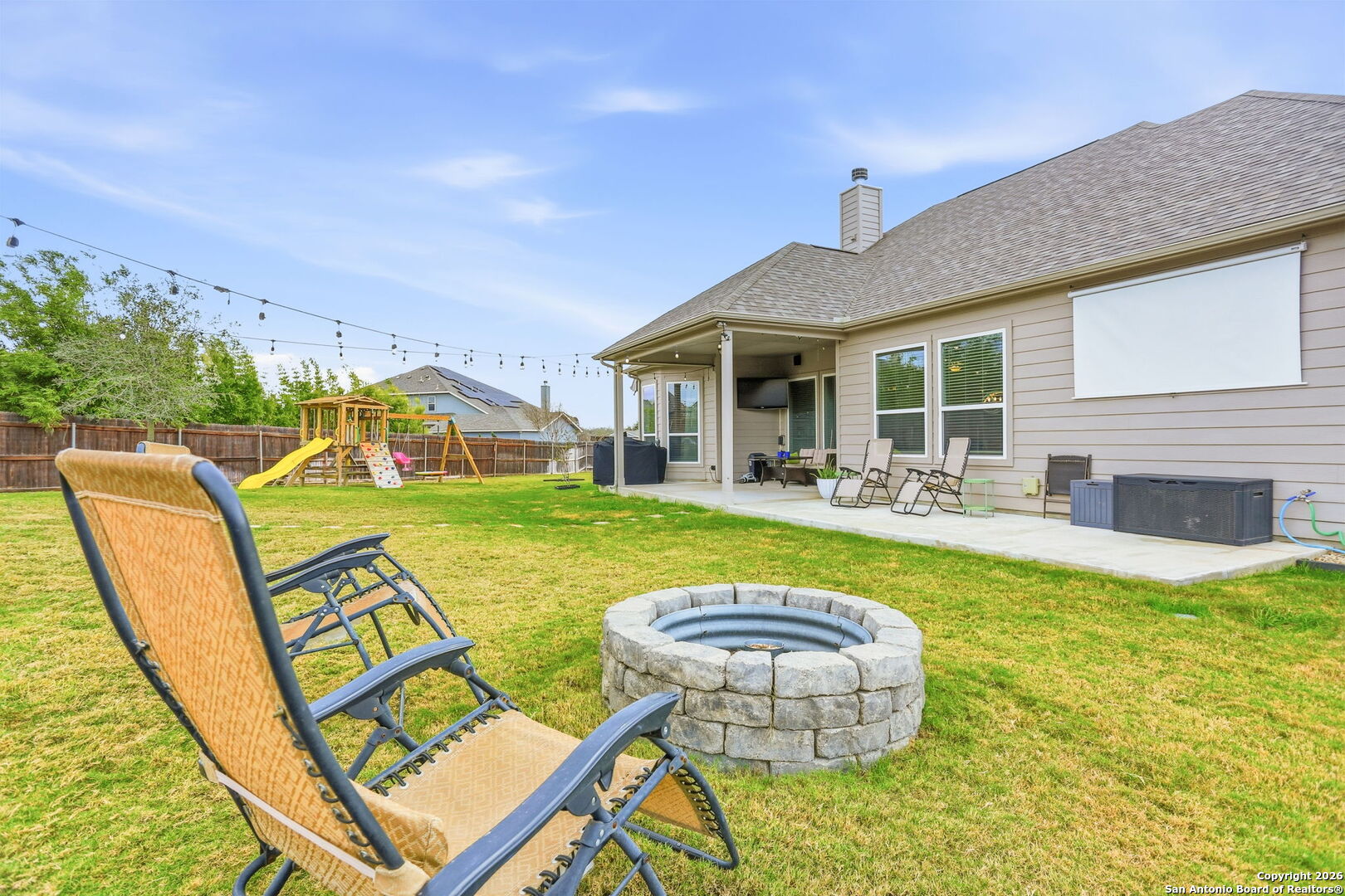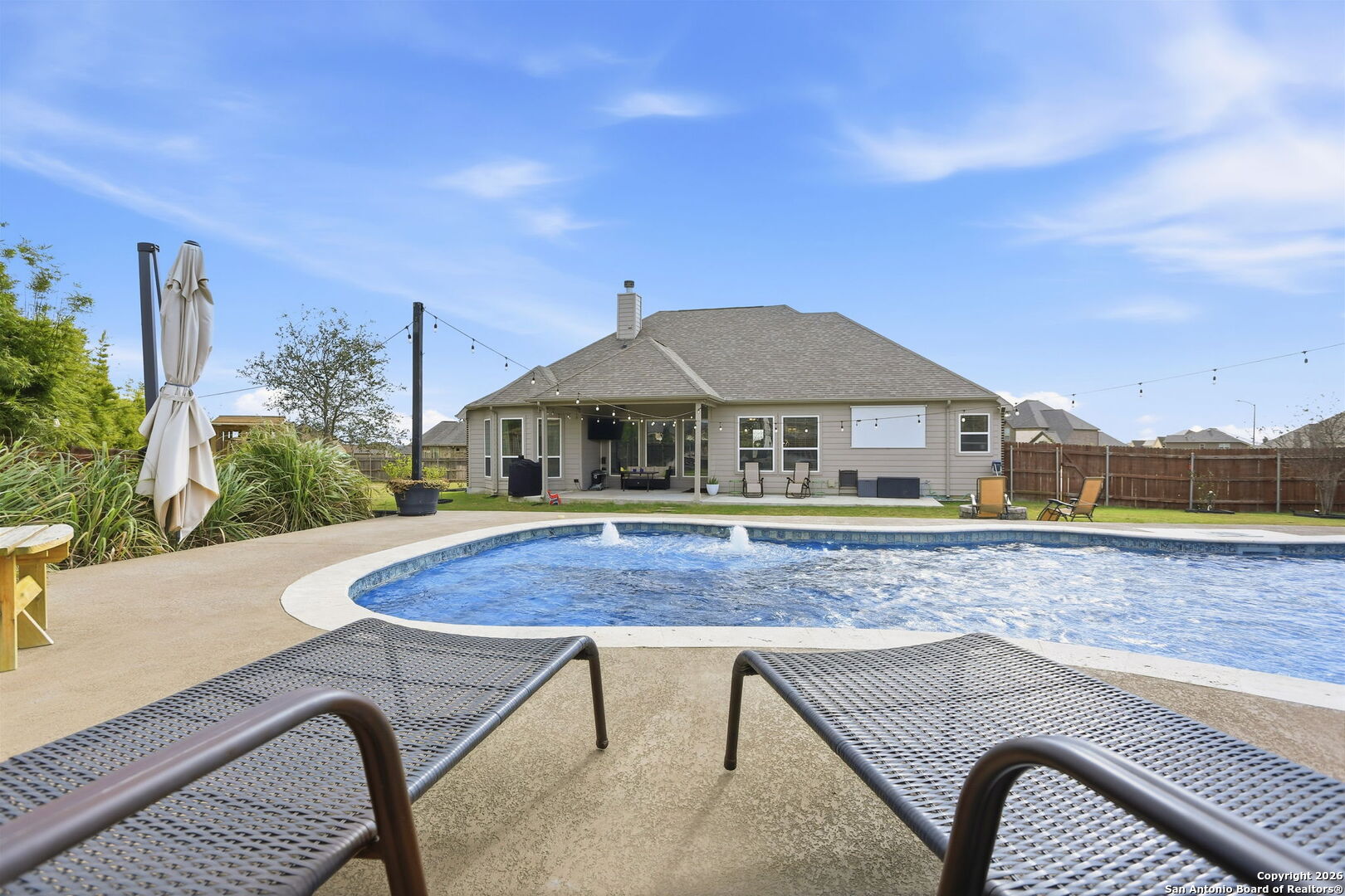 Welcome to The Reserve at Schertz, a premier community located just outside of San Antonio where you can enjoy a slower pace away from city life but still have easy access to shopping, dining and entertainment areas. Randolph AFB is about 10 minutes away, Ft. Sam Houston less than 20 minutes and Lackland an easy 35 minute. This community is also a stone's throw away from I-10 making even the drive to Houston a delight if/when you're seeking those big city vibes. Inside, this immaculately maintained 2020 built, 2,431 square foot home, more than holds its own with an open floor plan that appeals to all of the senses. As you enter into the home, your eyes are immediately drawn to the custom tray ceiling overlooking a spacious foyer which leads to the family room adorned with an abundance of natural light. The very generously apportioned kitchen is equipped with stainless steel appliances including a double oven for those large family gatherings. The primary suite feels like its own personal retreat, with its separate shower and tub along with a large walk-in closet. The secondary bedrooms are oversized, ideal for guests, kids, or more permanent family members. But wait there's more. Not to be outdone is the backyard, complete with an inground pool, playscape, separate fire pit area and still more room to expand. Finally, there is another "unmentioned" room (but you will have to see it for yourself) which speaks to the builder's attention to detail using all available space to make this home seem even larger than it is. Don't miss the opportunity to make this dream property your own! Schedule your showing today!