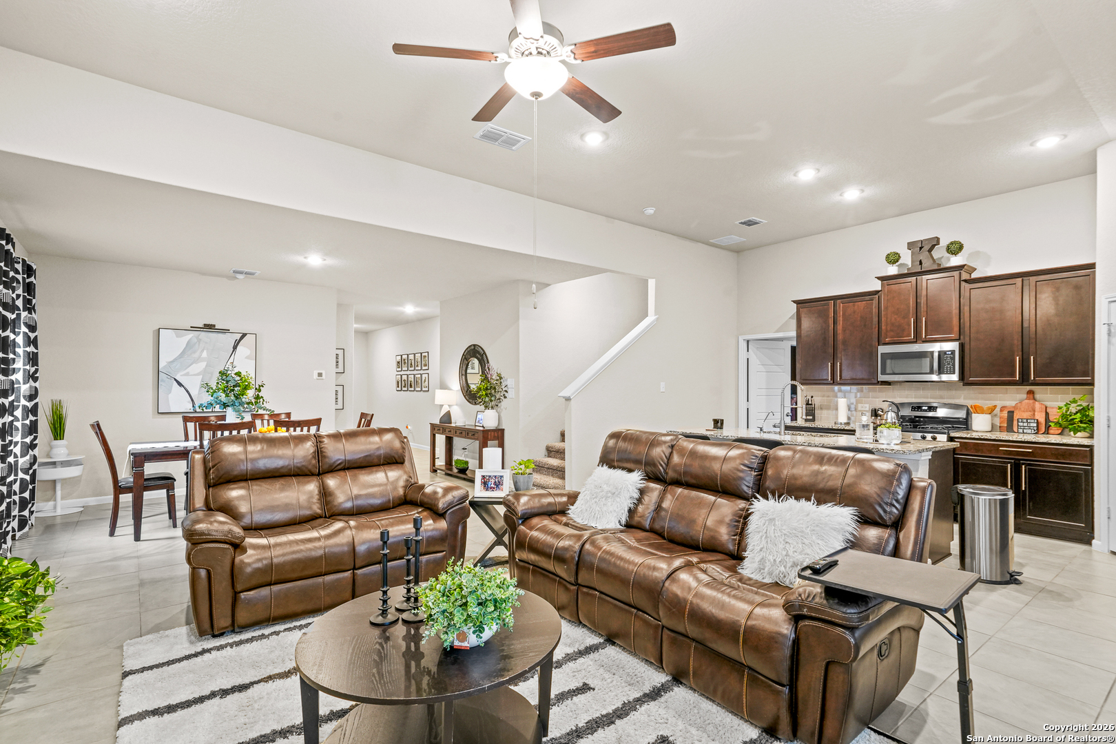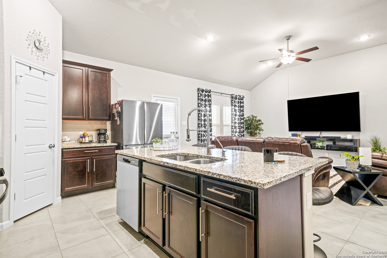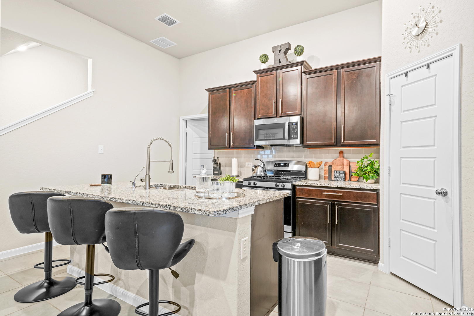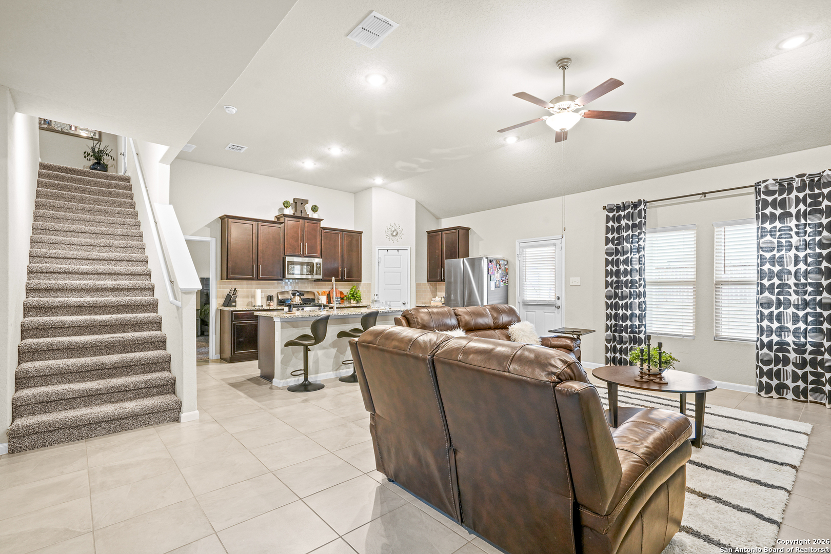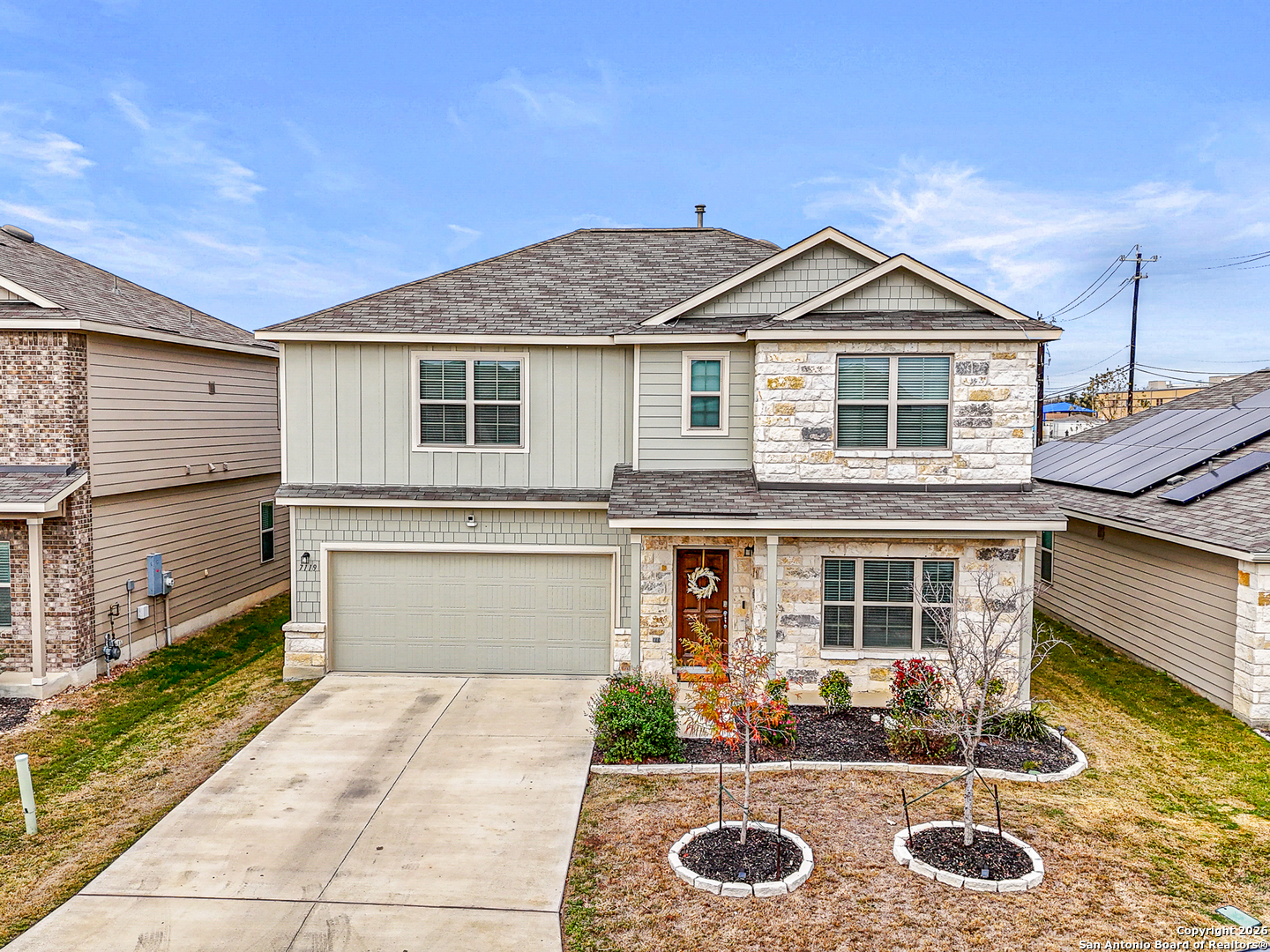 Welcome to 7119 Pioneer Rock, San Antonio, TX 78253 - Spacious, Upgraded, and Exceptionally Maintained! This beautifully cared-for 5-bedroom, 3-bathroom home offers over 2,800 square feet of thoughtfully designed living space, and has been gently lived in by only two adult occupants - a true standout in today's market. Perfect for multigenerational living, the first floor includes a full bedroom and full bathroom, ideal as a private guest suite or mother-in-law suite. The spotless kitchen features granite countertops, updated cabinet hardware, and a new kitchen faucet, all blending style and function. Major value adds include: Owned solar panels, water softener, and reverse osmosis system - fully paid off, with no added balance to the list price. VA assumable loan available for qualified buyers. Permanent Govee exterior lights (app-controlled), Front and back yard landscaping, Blinds on every window, Curtain rods on most windows (convey), Heavy duty ceiling-mounted garage storage rack (conveys), TV mount (conveys), Epoxy-coated garage floor. This home has been lightly lived in and meticulously maintained, offering a new construction feel with the benefit of tasteful and significant money saving upgrades already completed. Don't miss this opportunity to own a move-in ready home near top-rated schools, parks, and everyday conveniences. Schedule your private showing today and experience the care and value in every corner of 7119 Pioneer Rock!