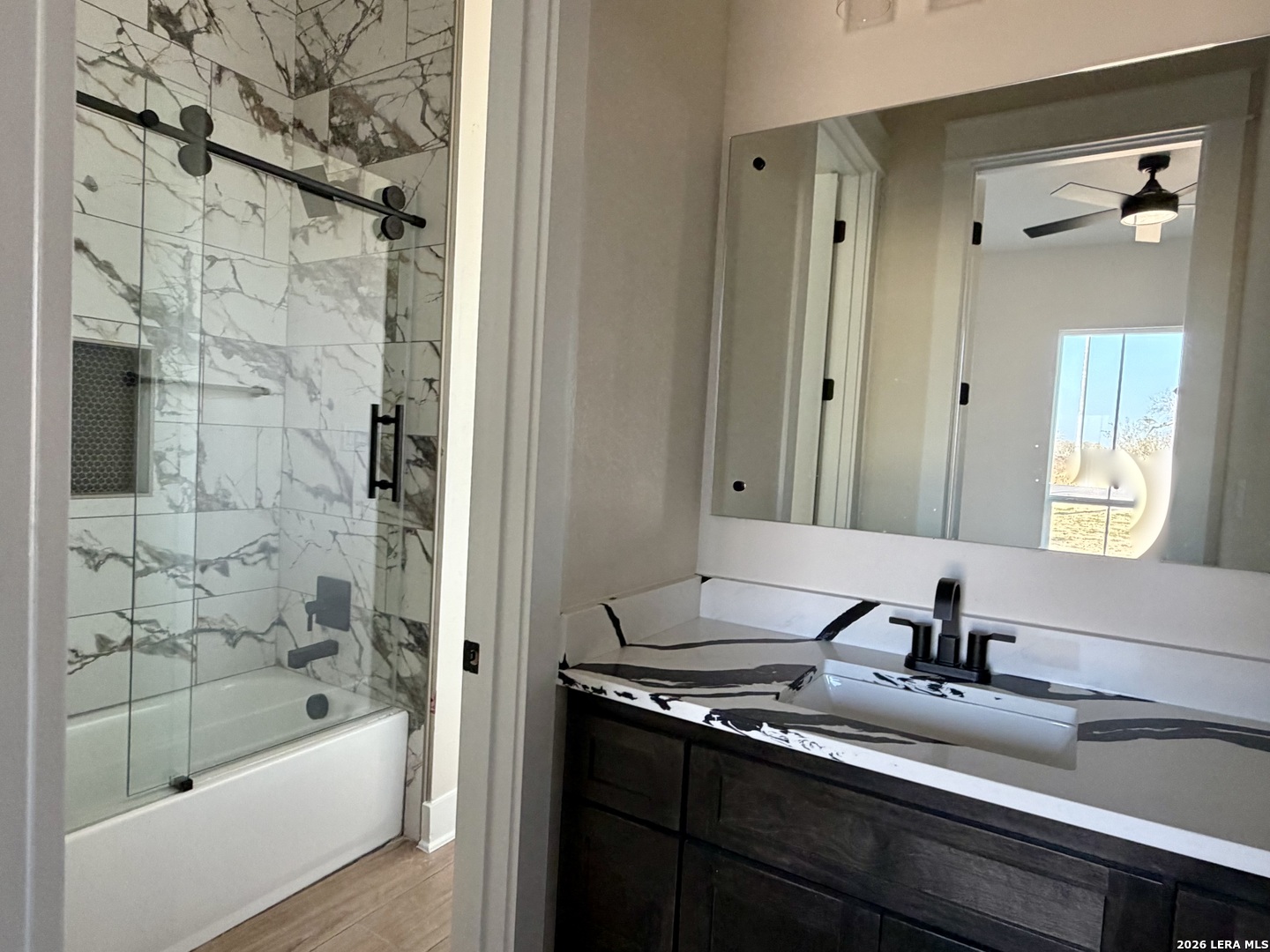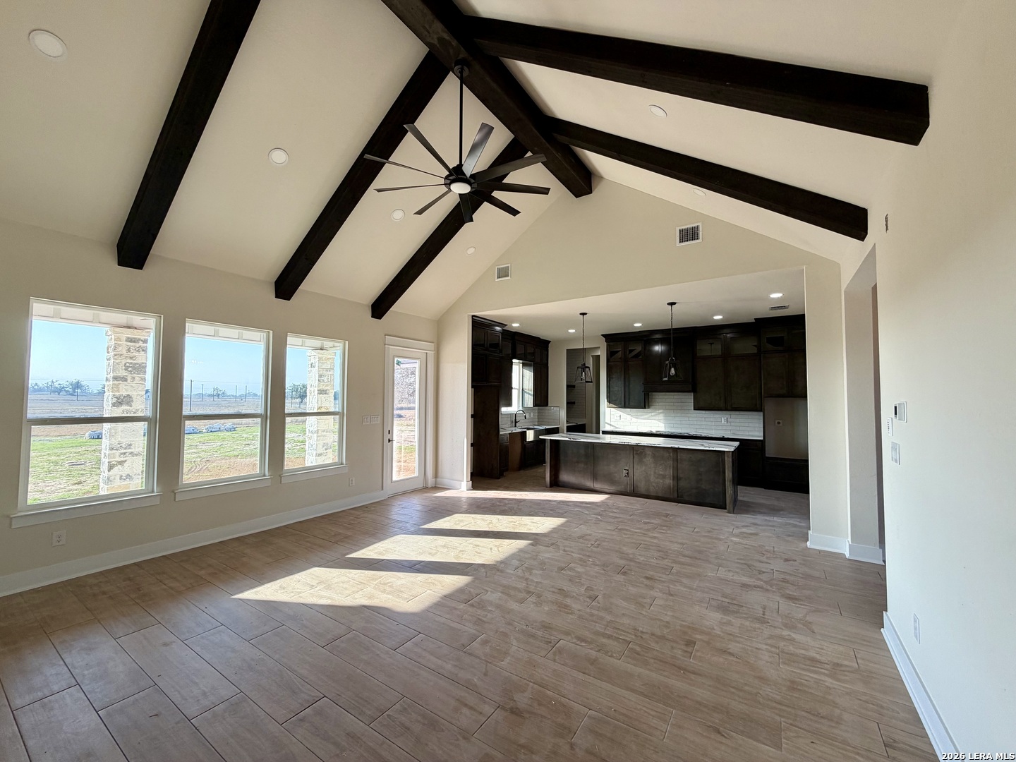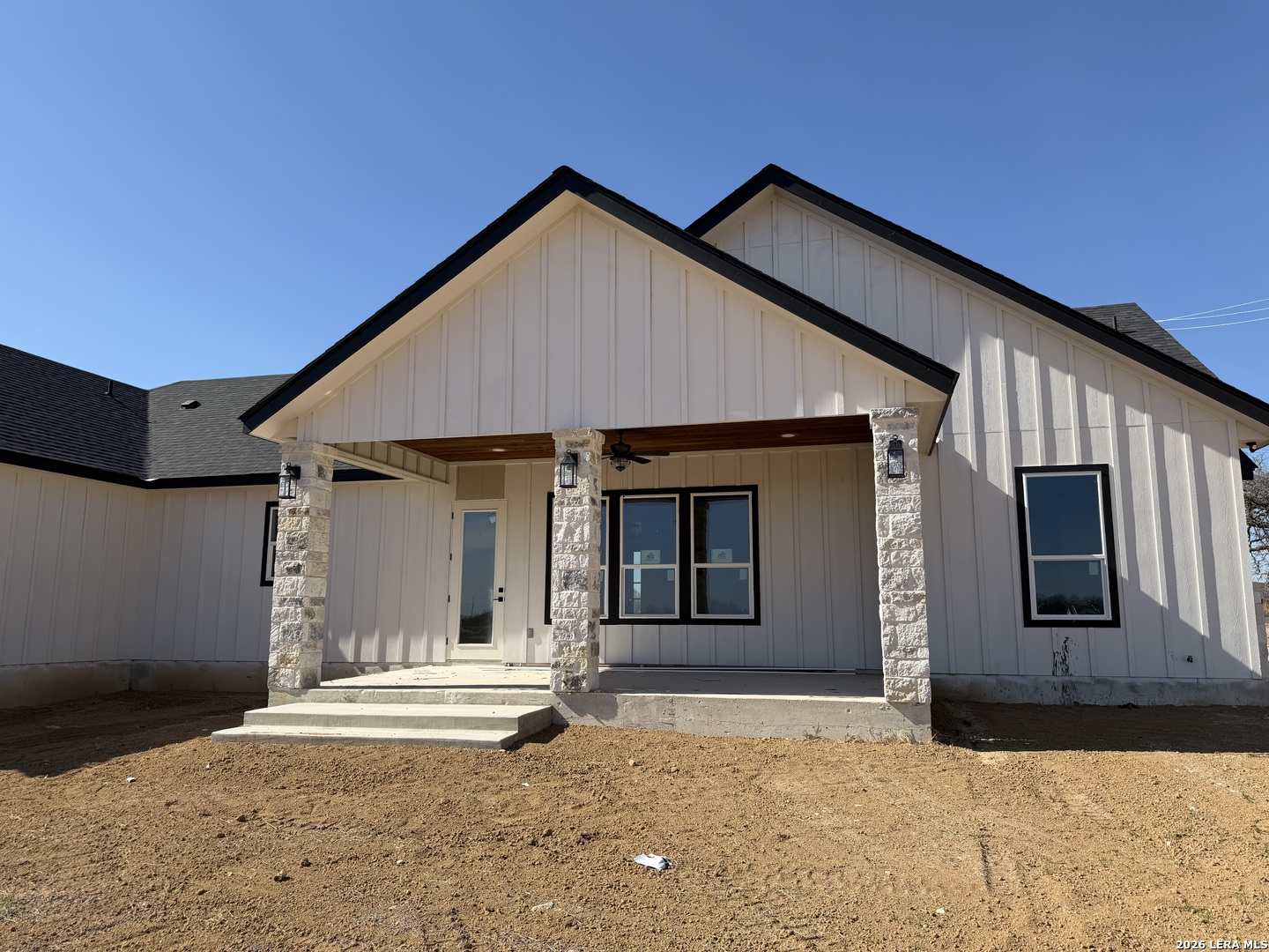 This beautiful modern farmhouse influence 4-bedroom, 3-full baths home with high-end custome home austhetic, 1-acre corner lot in the Villas Las Flores Subdivision, Floresville Texas. The spacious open floor plan living room with high ceilings opens to the the covered patio that create a perfect space for entertaining and country like feeling. The Texas size primary suite also with custom high ceiling with wood beamsand modern oversizes ceiling fan features a full bath with dual vanities, a generously sized double shower, and walk-in-closet. Custom wood cabinetry, granite countertops, large island, and ceramic flooring add style to the kitchen. Three additional bedrooms with unique baths and vanaties offer spacios comfort. Country like living, conveniently close to the City.