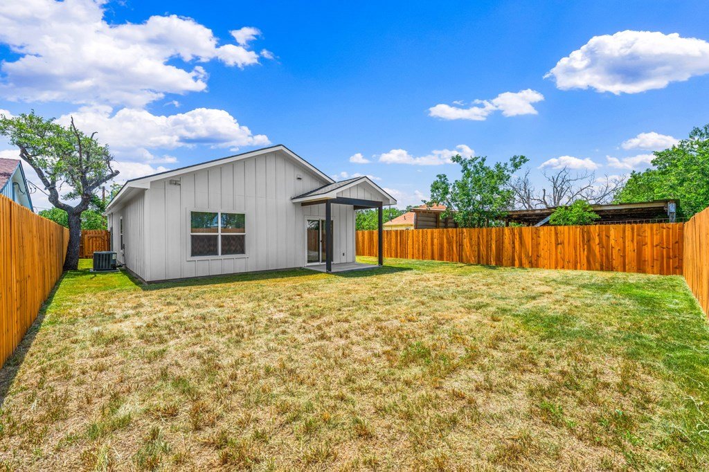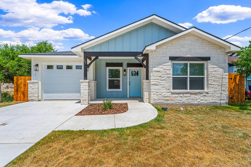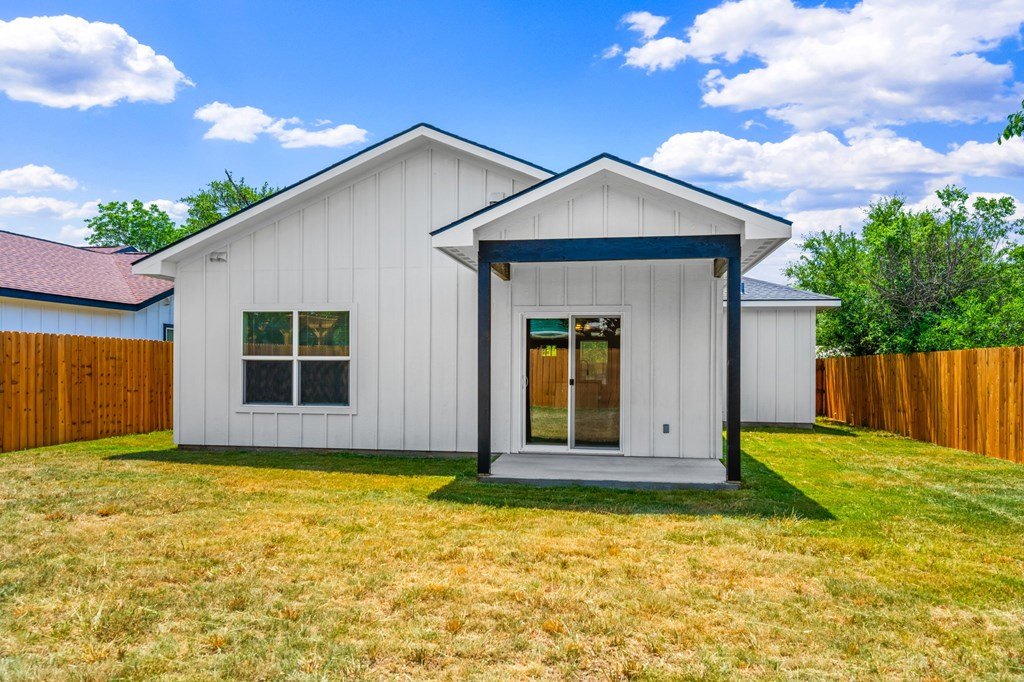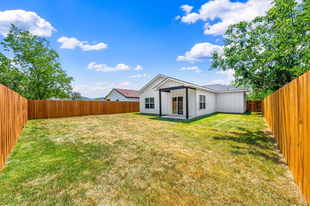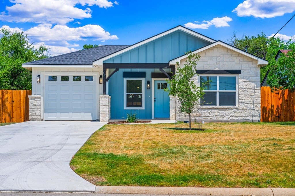 Newly constructed 3-bedroom, 2-bathroom home situated on a 0.24-acre lot in Kerrville. This single-story residence offers 1,228 square feet of living space with a functional open-concept floor plan. The kitchen features granite countertops, Whirlpool stainless steel appliances, and opens to the main living area, which includes decorative wood ceiling beams. The primary bedroom includes an en suite bathroom and dual closets. Two additional bedrooms provide flexibility for guest accommodations or home office use. Utility room located inside for added convenience. Exterior features include a fenced backyard, ideal for outdoor activities or pets. Located near schools and less than 2 miles from downtown Kerrville, with easy access to shopping, dining, and community amenities. Available exclusively to qualified first-time homebuyers and subject to an affordability deed restriction.